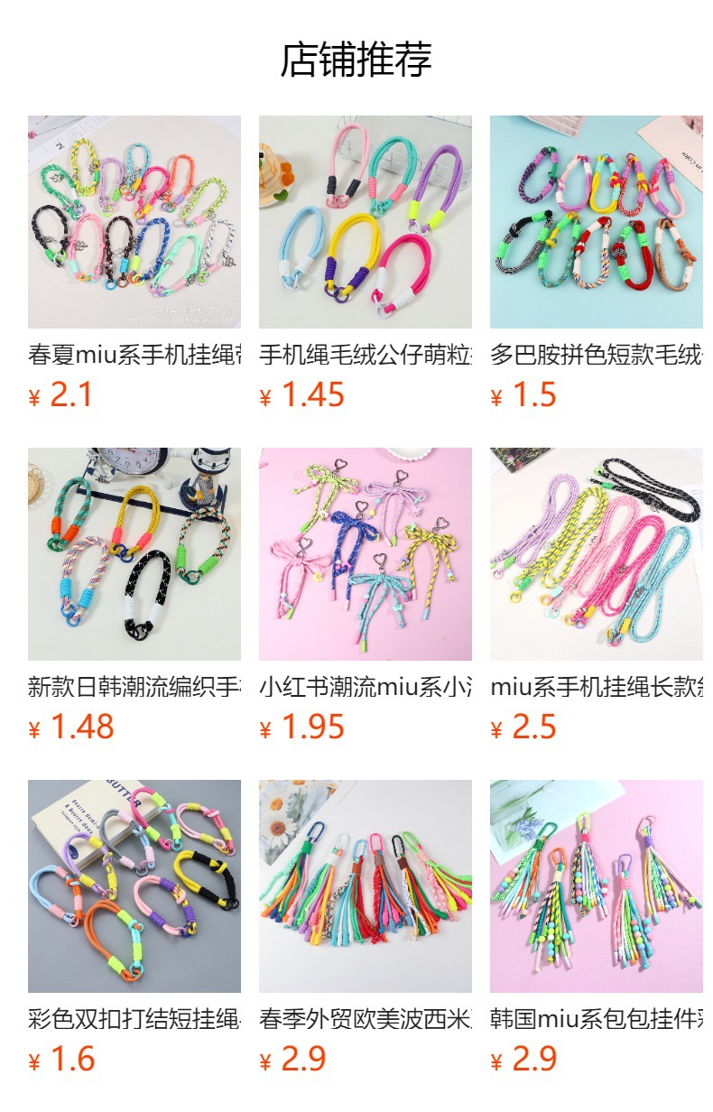 새로운 화장품 가방 끈 컬러 꼰 꼰 짧은 손 체인 가방 지퍼 장식 휴대 전화 펜던트스토어 가기