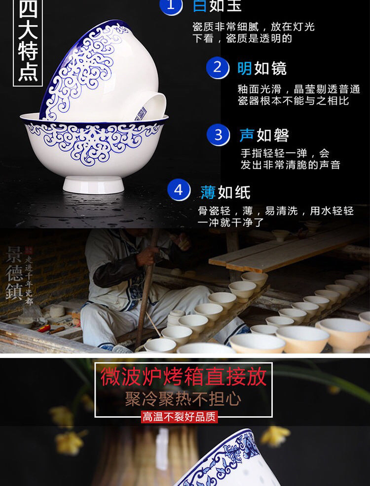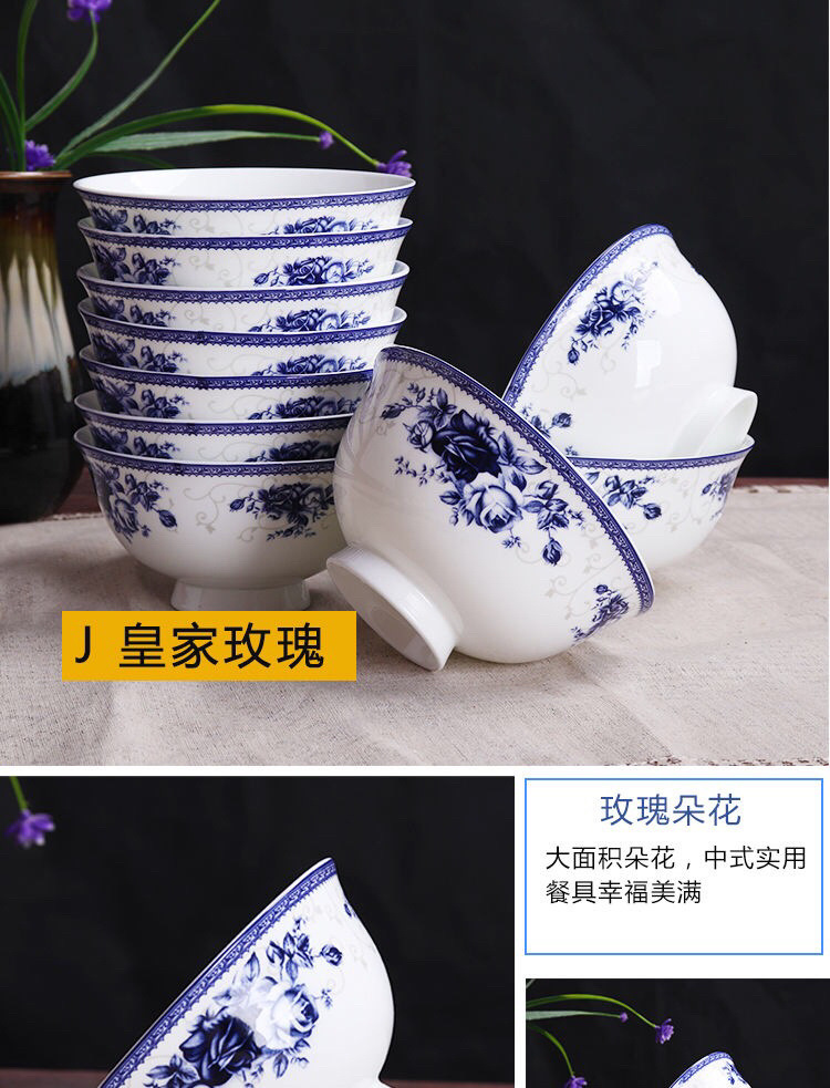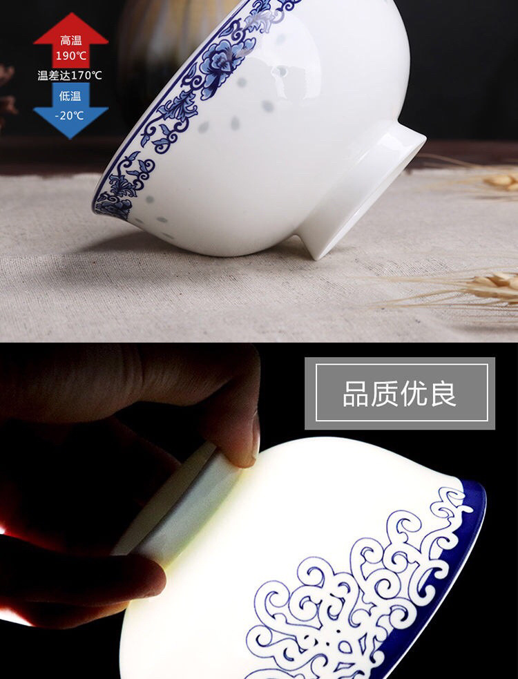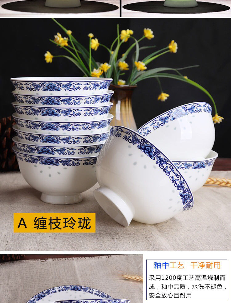 Jingyao 도자기 산업 고온 파란색과 흰색 도자기 매일 쌀 그릇 가족 실용적인 식사 그릇 가정용 공장 도매스토어 가기