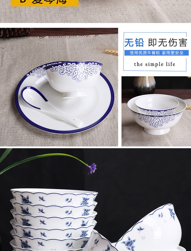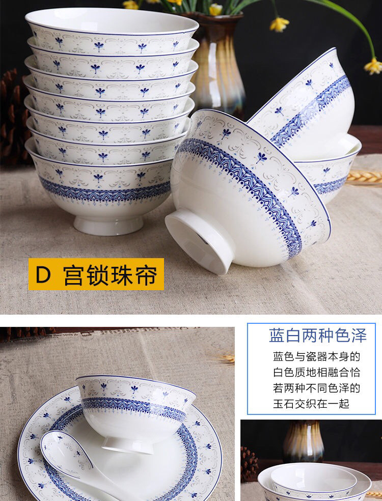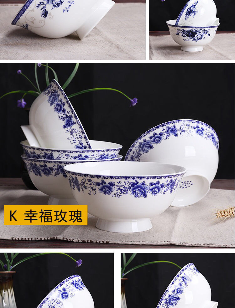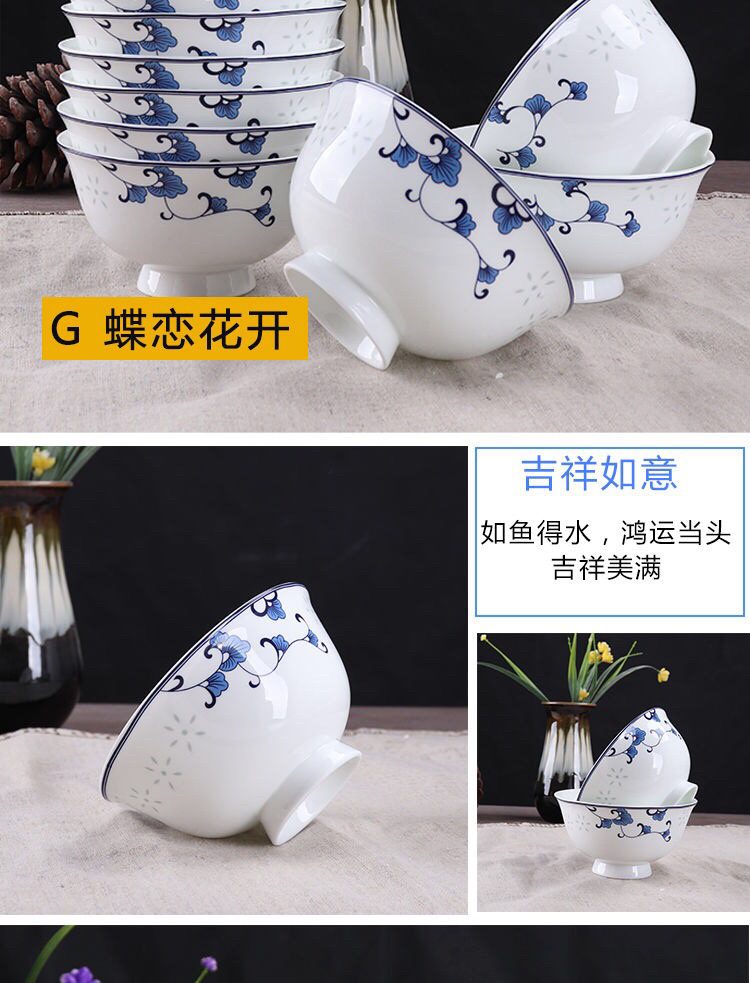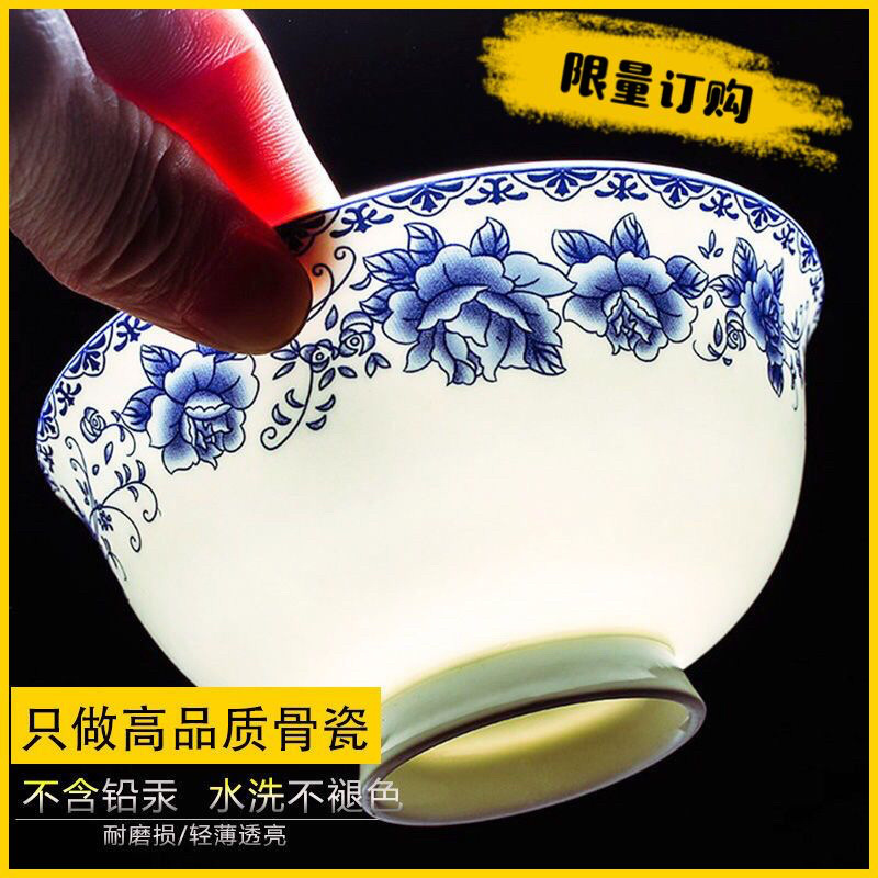 Jingyao 도자기 산업 고온 파란색과 흰색 도자기 매일 쌀 그릇 가족 실용적인 식사 그릇 가정용 공장 도매스토어 가기