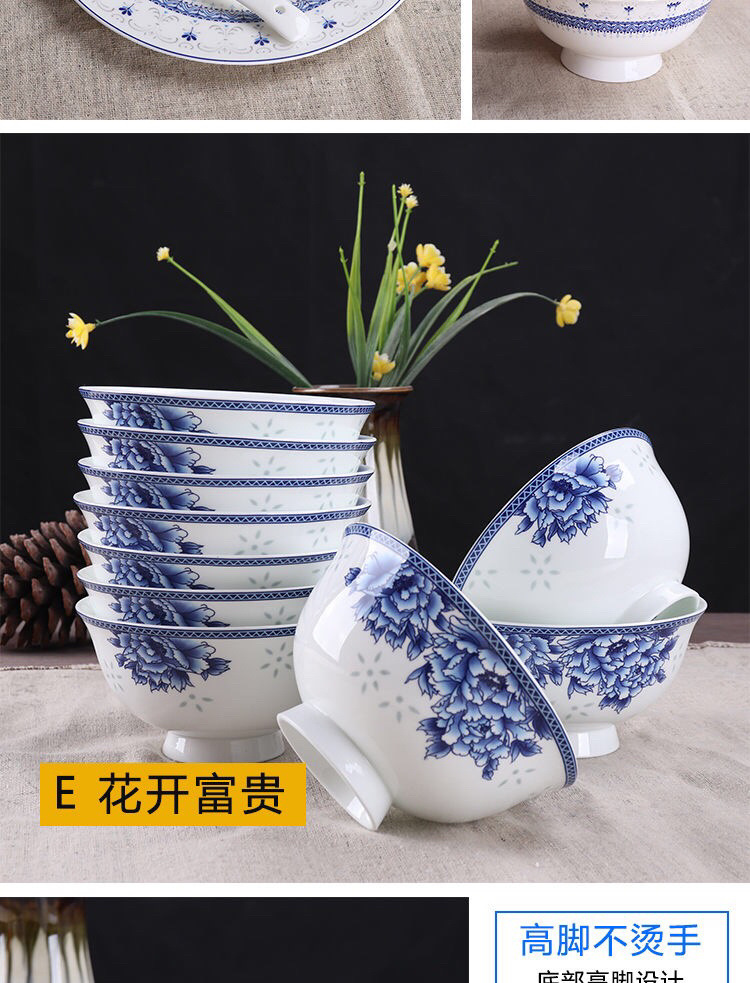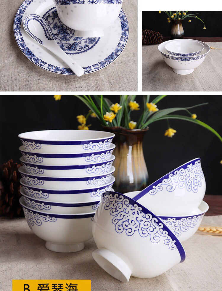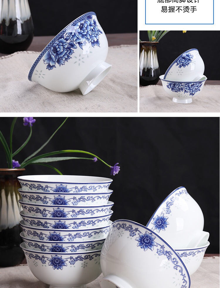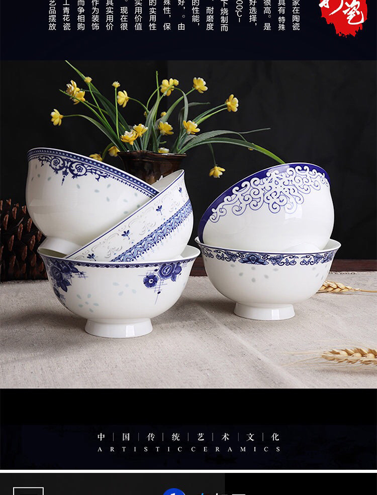 Jingyao 도자기 산업 고온 파란색과 흰색 도자기 매일 쌀 그릇 가족 실용적인 식사 그릇 가정용 공장 도매