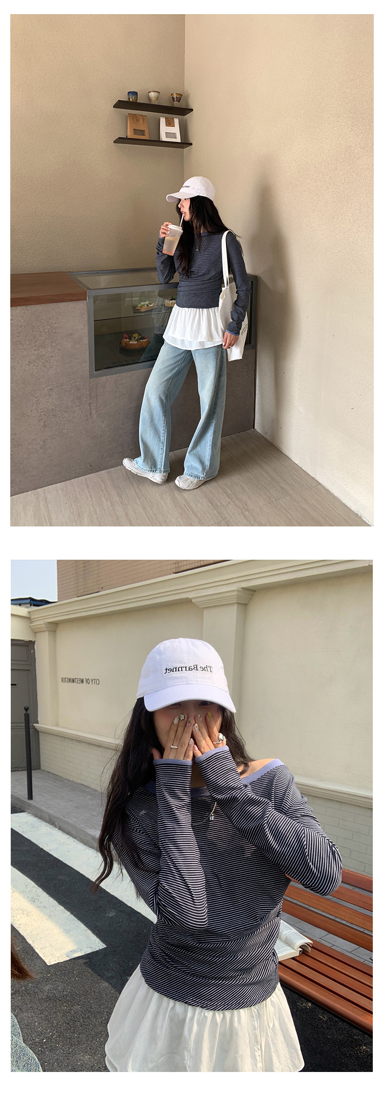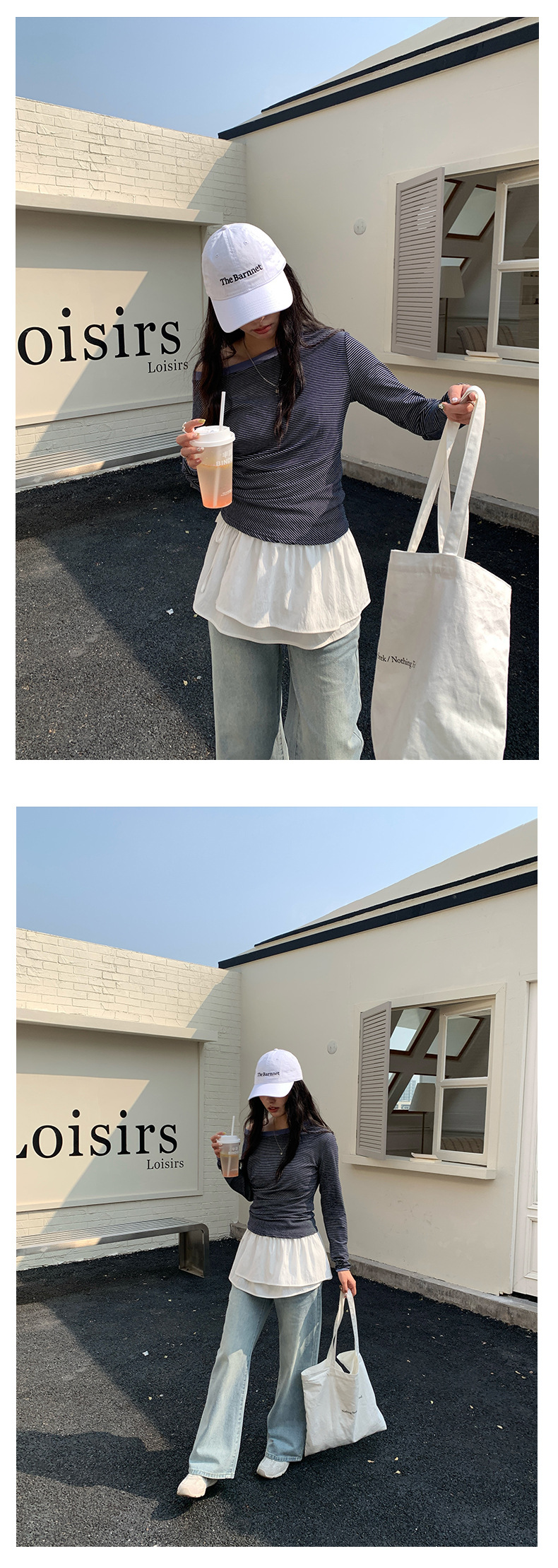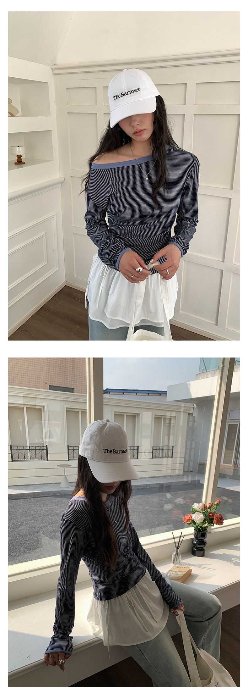 Huang Zheng 컬러 대비 칼라 칼라 사이드 플리트 디자인 긴 소매 티셔츠 여성용 2025 스프링 스트라이프 탑 H1DC510094스토어 가기
