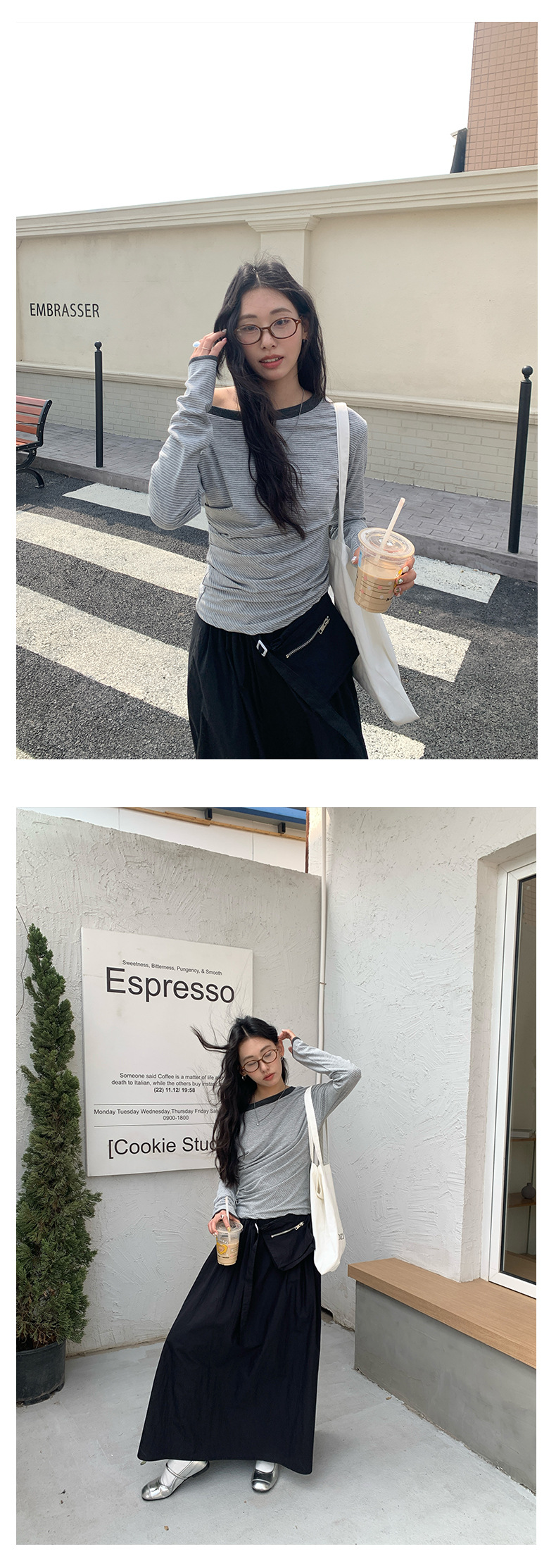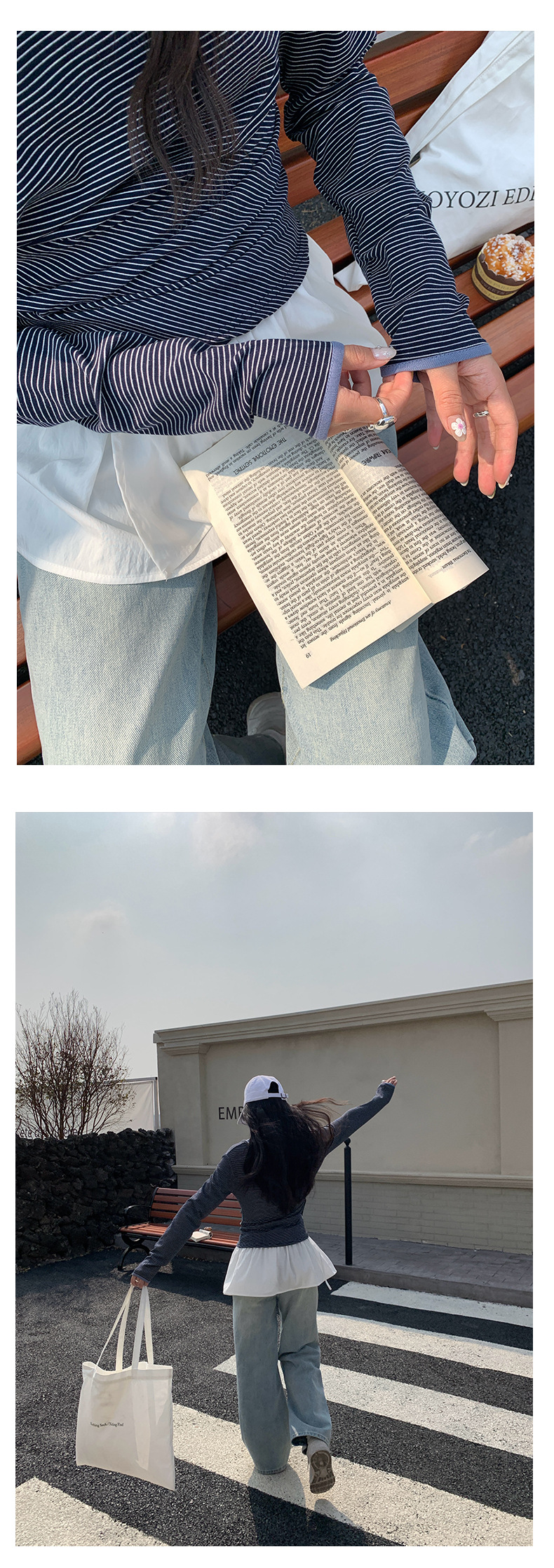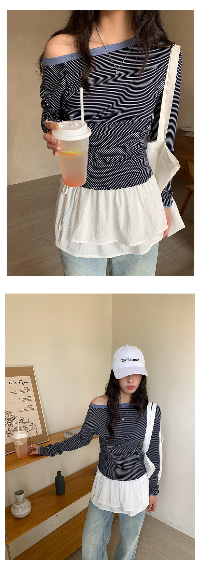 Huang Zheng 컬러 대비 칼라 칼라 사이드 플리트 디자인 긴 소매 티셔츠 여성용 2025 스프링 스트라이프 탑 H1DC510094스토어 가기