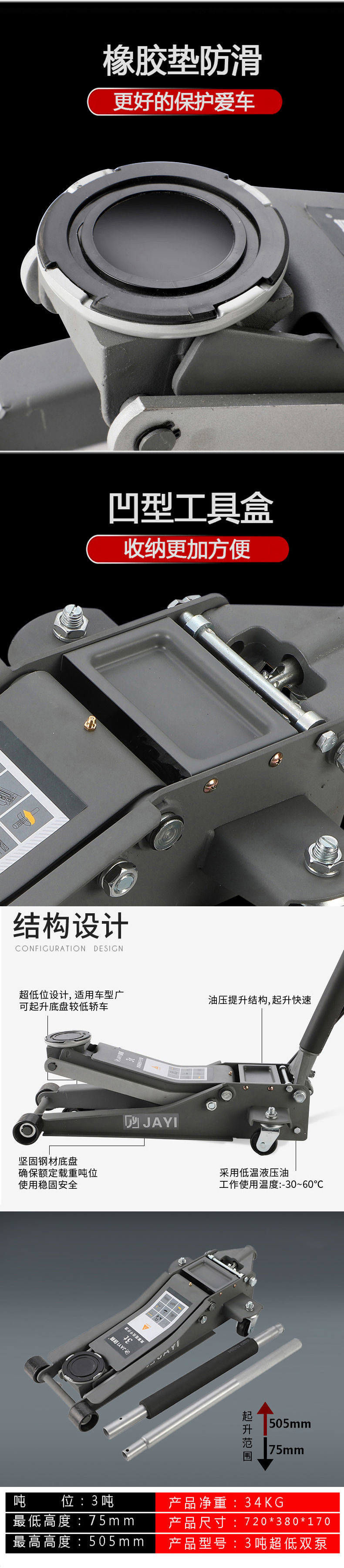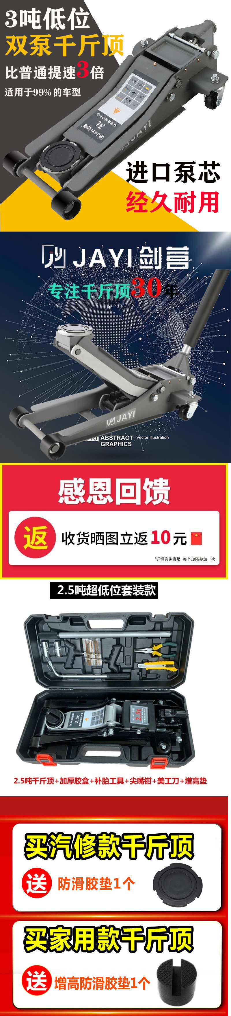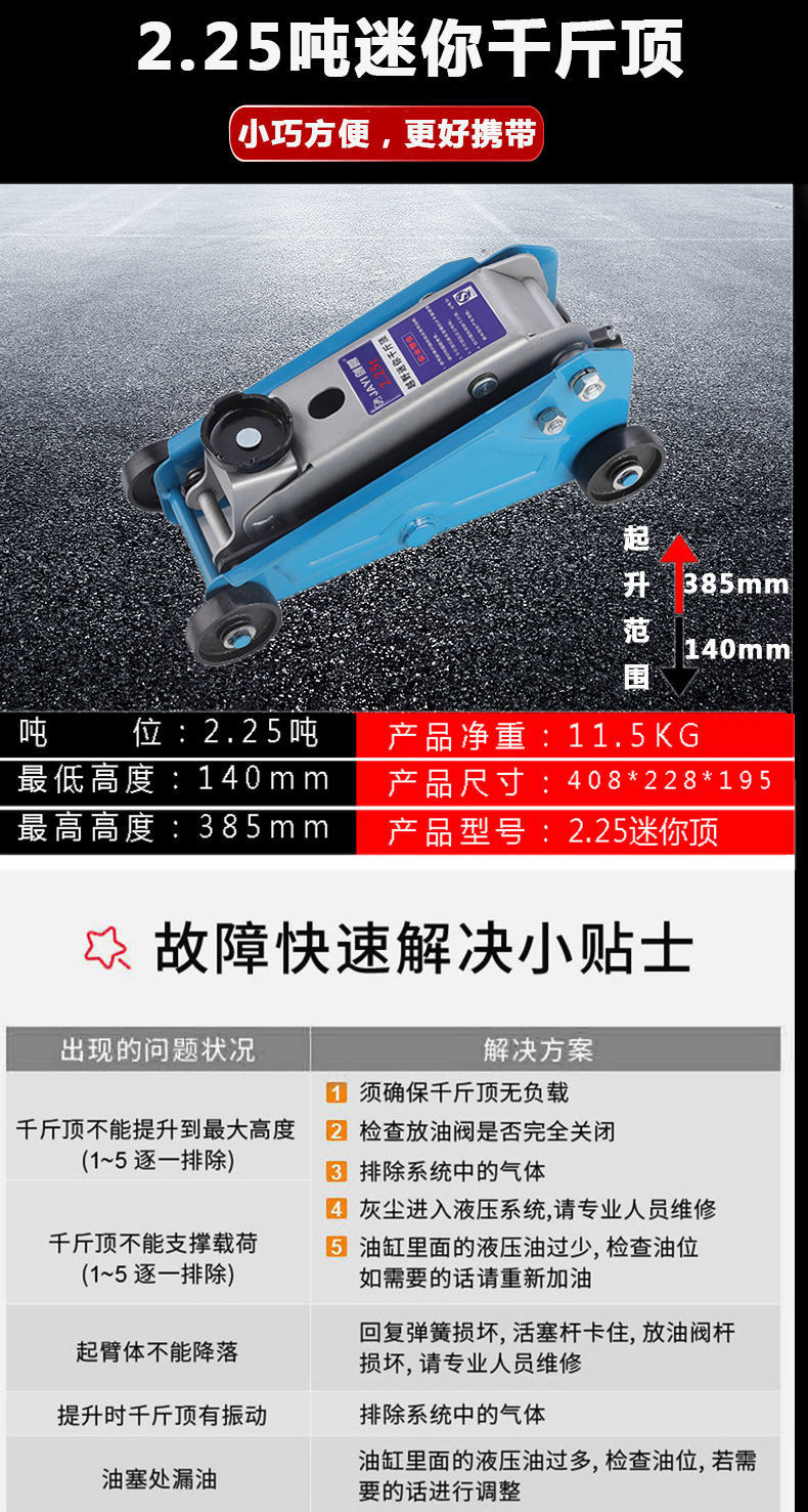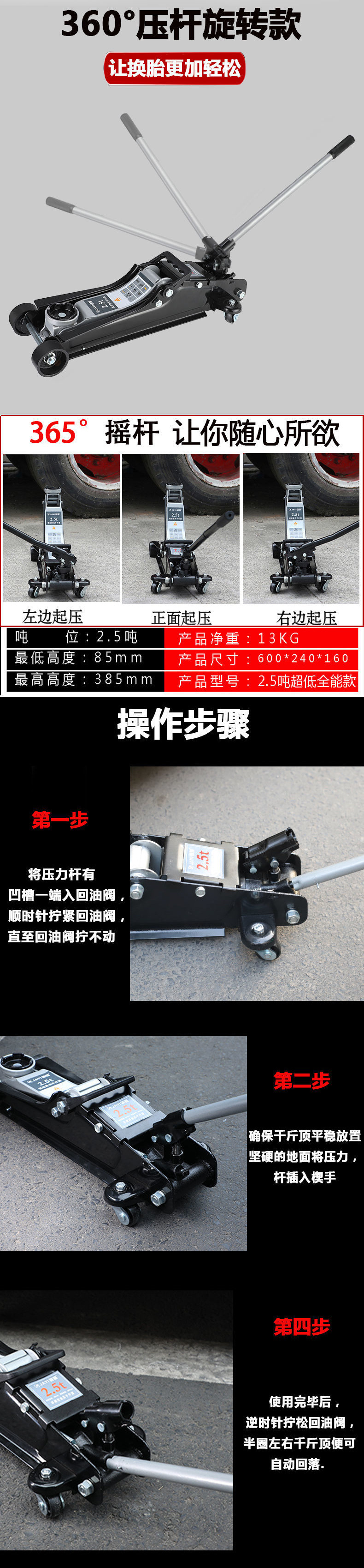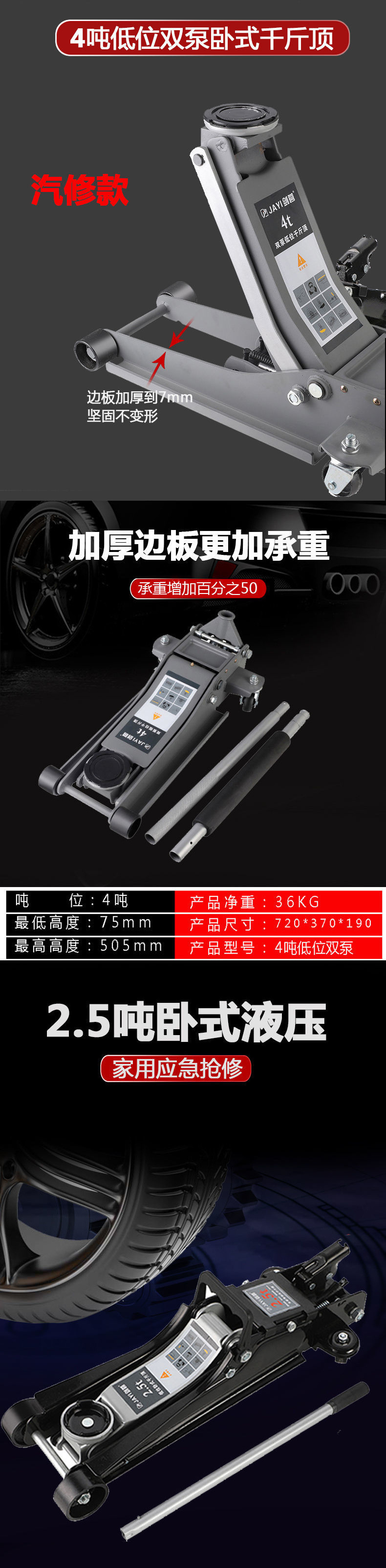 수평 잭 새로운 3t 수평 2.5 자동차 운반 타이어 변경 작은 상품 자동차 수리 오프로드 무거운 이중 펌프 오일 압력