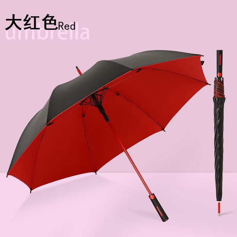 공장 재고 도매 27 인치 방수 케이스 검은 고무 선 스크린 골프 우산 큰 남성 두 배 비즈니스 긴 핸들 우산