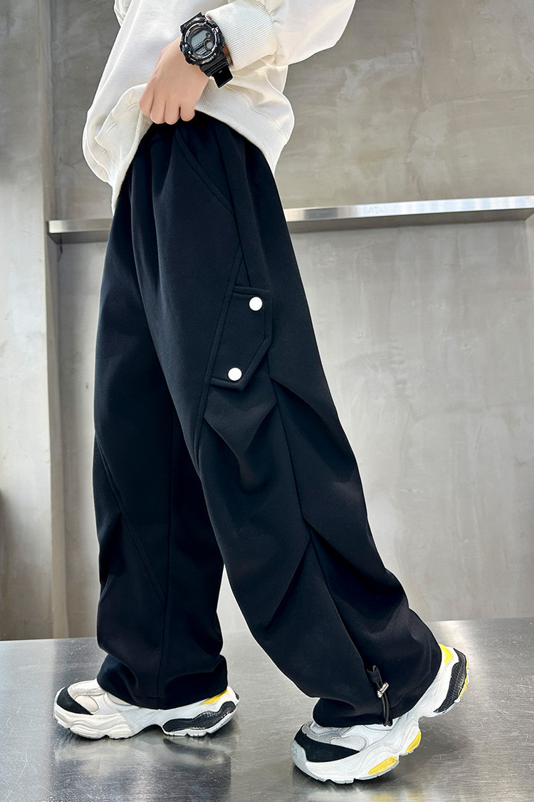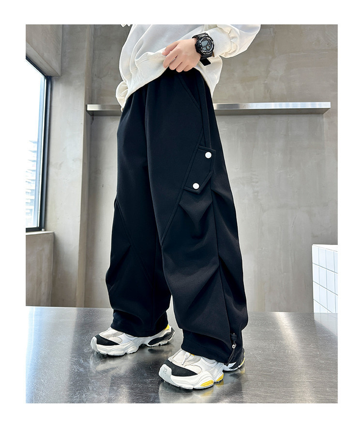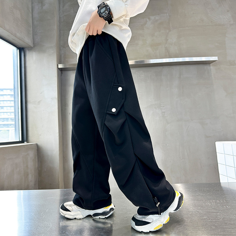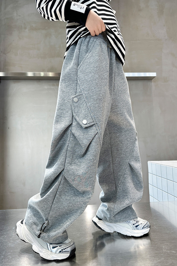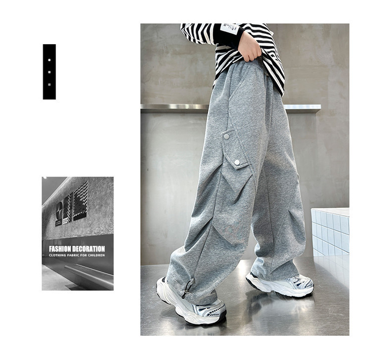 남학생 봄 스포츠 바지 2025 새로운 도착 대형 어린이 봄 니트 운동복 느슨한 올매치 소년 트렌디 바지
