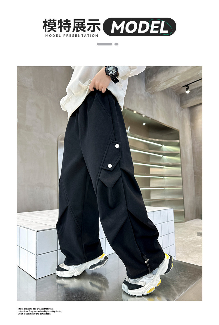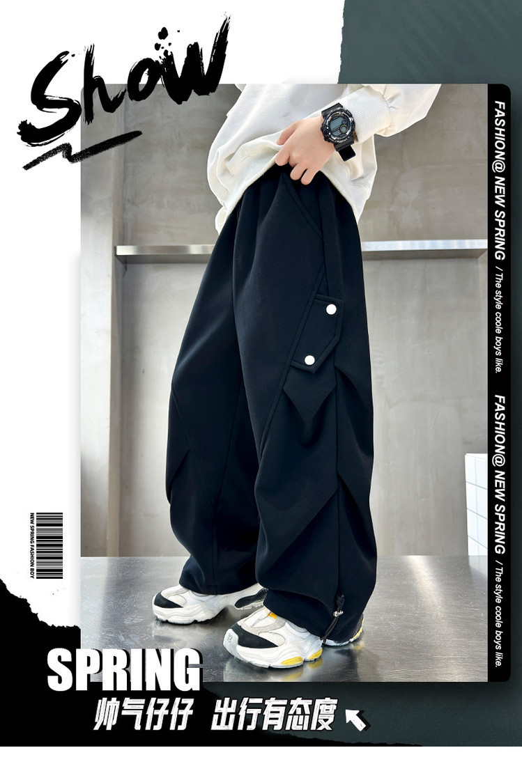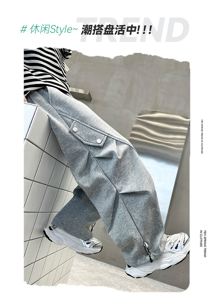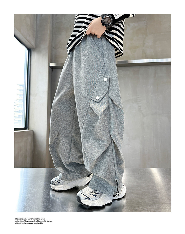 남학생 봄 스포츠 바지 2025 새로운 도착 대형 어린이 봄 니트 운동복 느슨한 올매치 소년 트렌디 바지스토어 가기