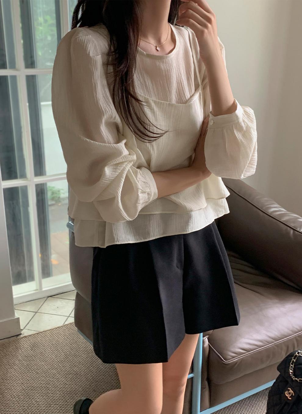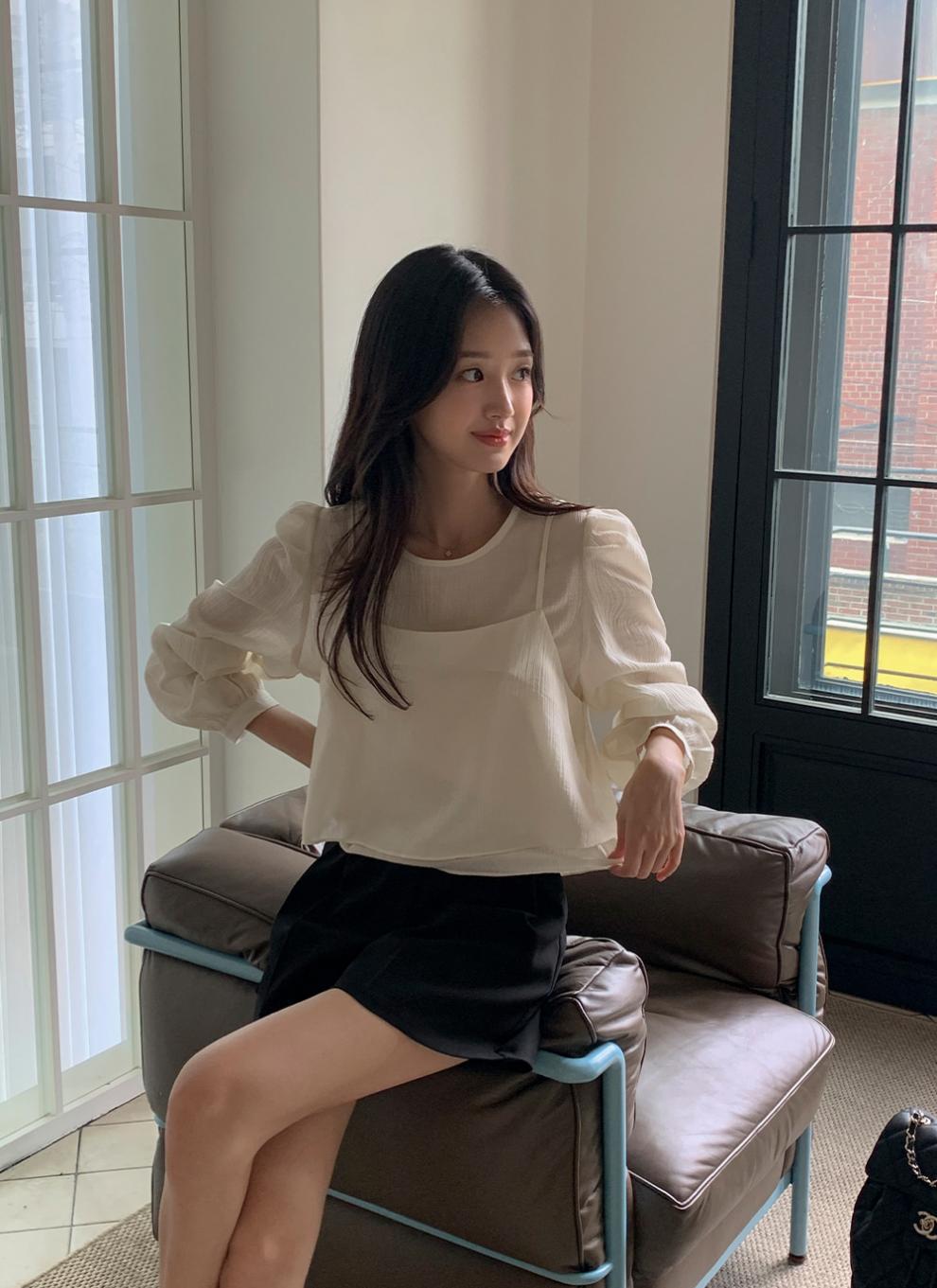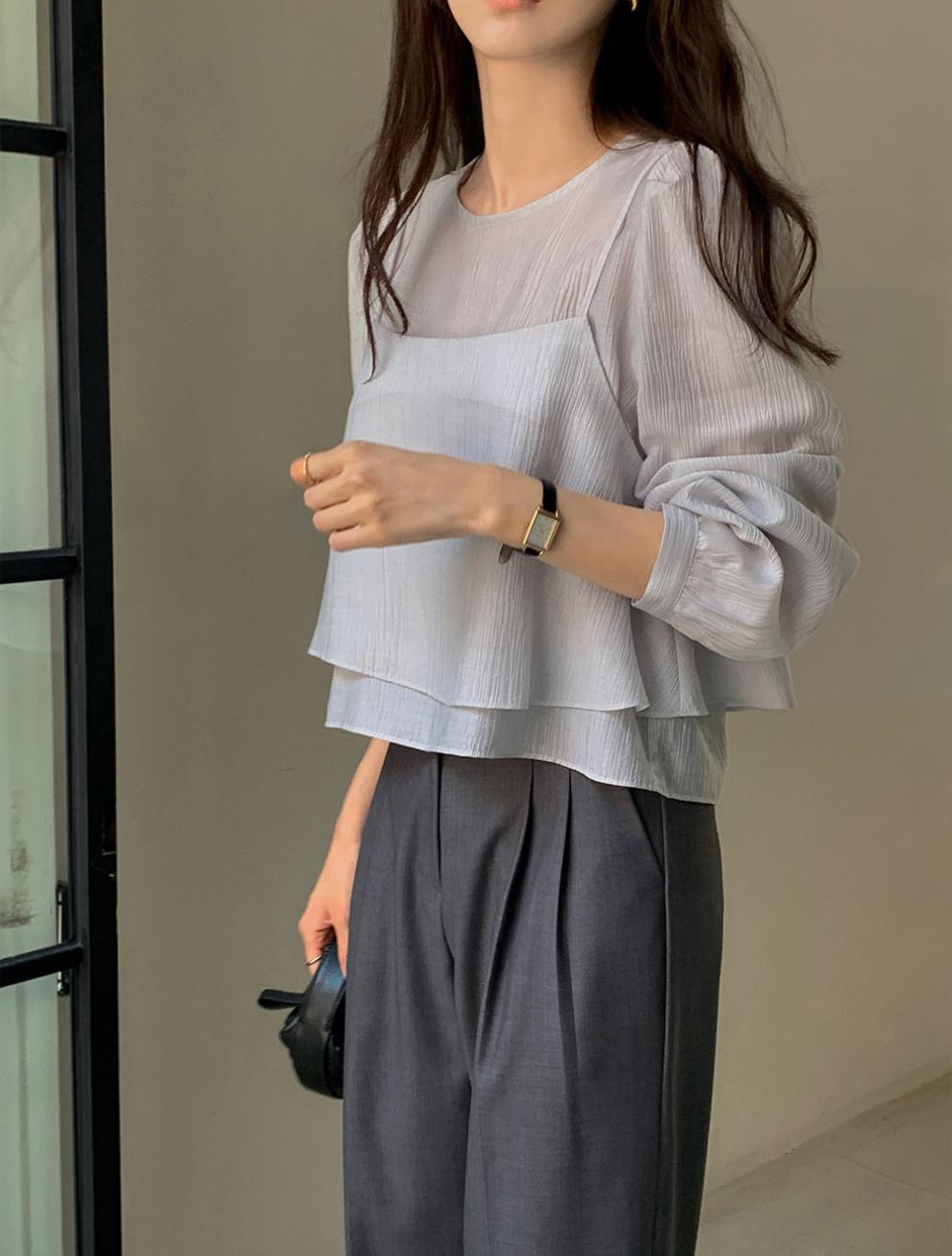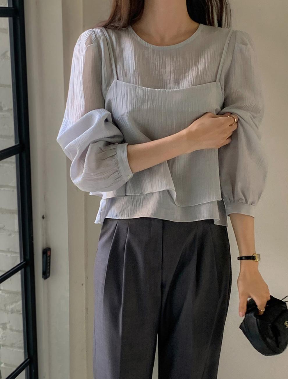 프랑스 시폰 셔츠 여성용 세련된 틈새 디자인 관점 작은 셔츠 스트랩 조끼 독특한 긴 소매 셔츠 투피스 세트스토어 가기