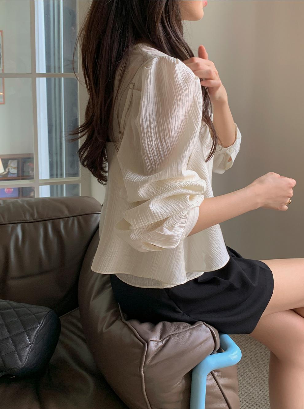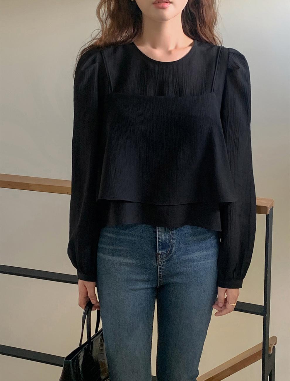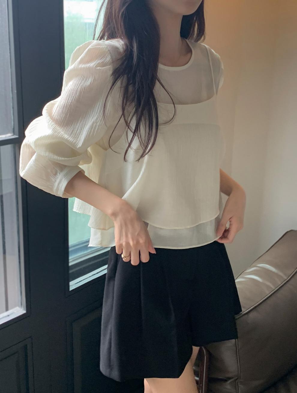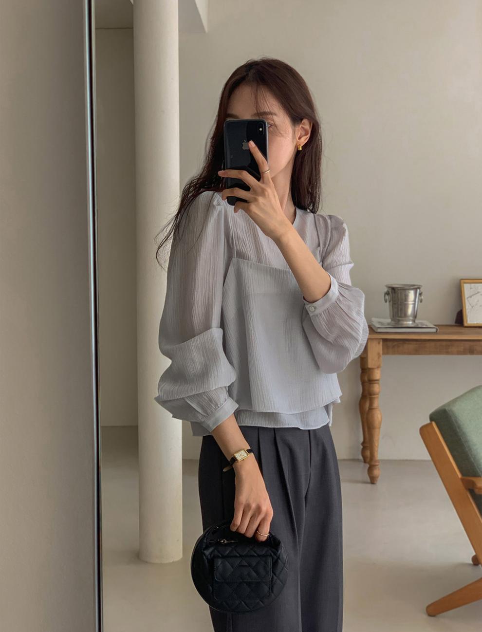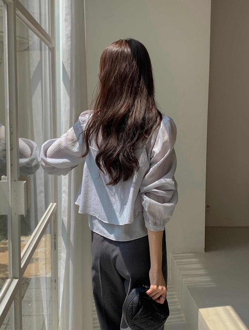 프랑스 시폰 셔츠 여성용 세련된 틈새 디자인 관점 작은 셔츠 스트랩 조끼 독특한 긴 소매 셔츠 투피스 세트스토어 가기