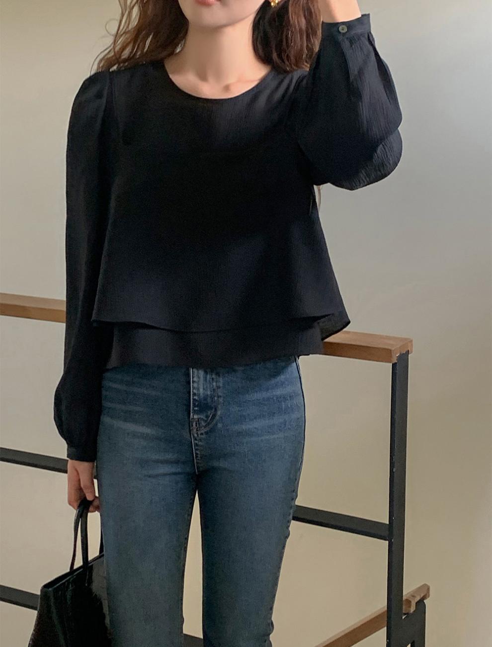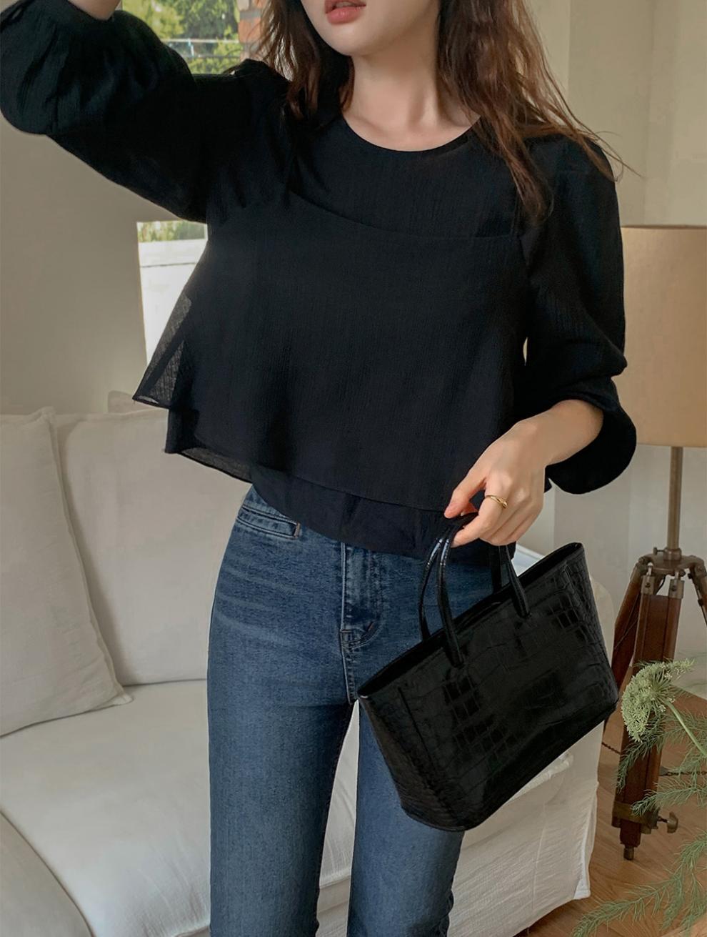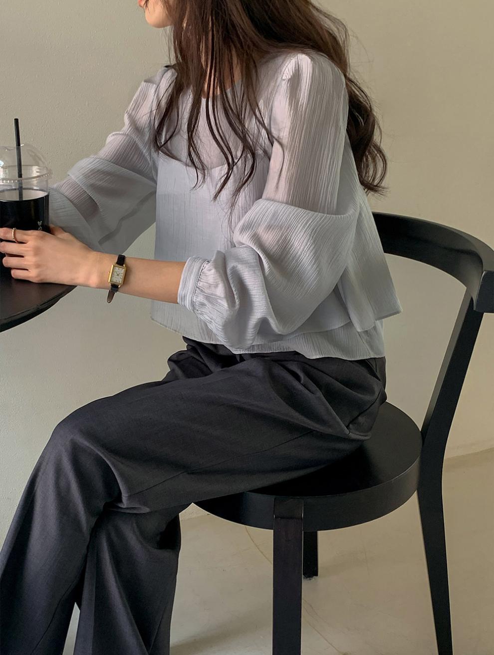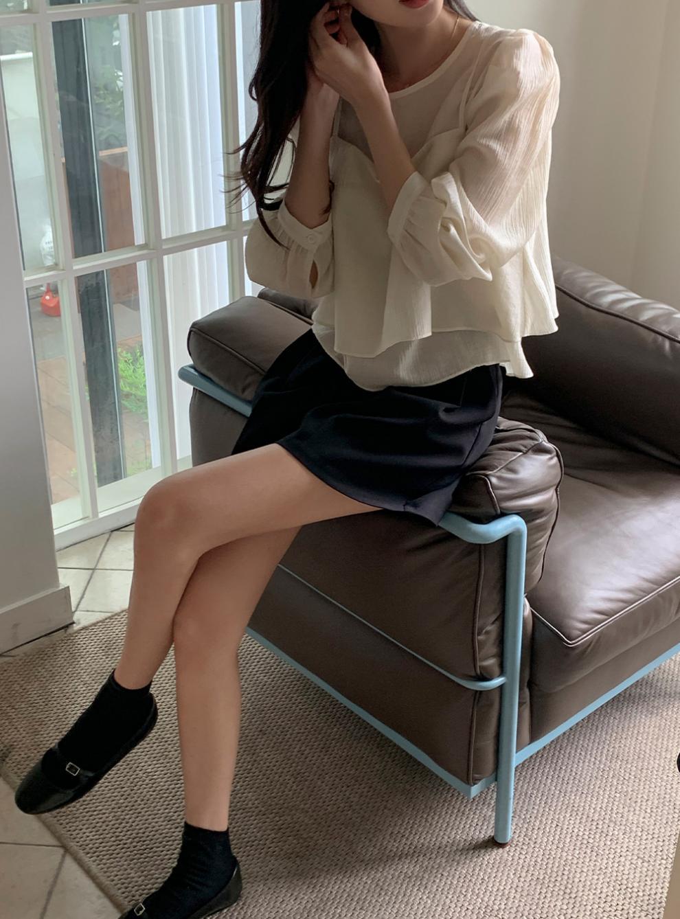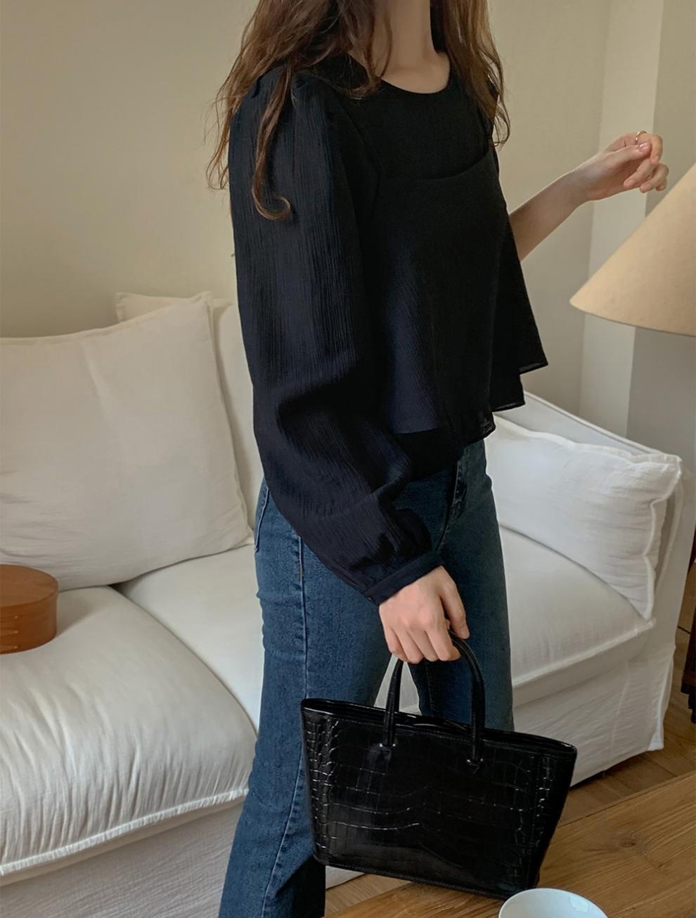 프랑스 시폰 셔츠 여성용 세련된 틈새 디자인 관점 작은 셔츠 스트랩 조끼 독특한 긴 소매 셔츠 투피스 세트스토어 가기