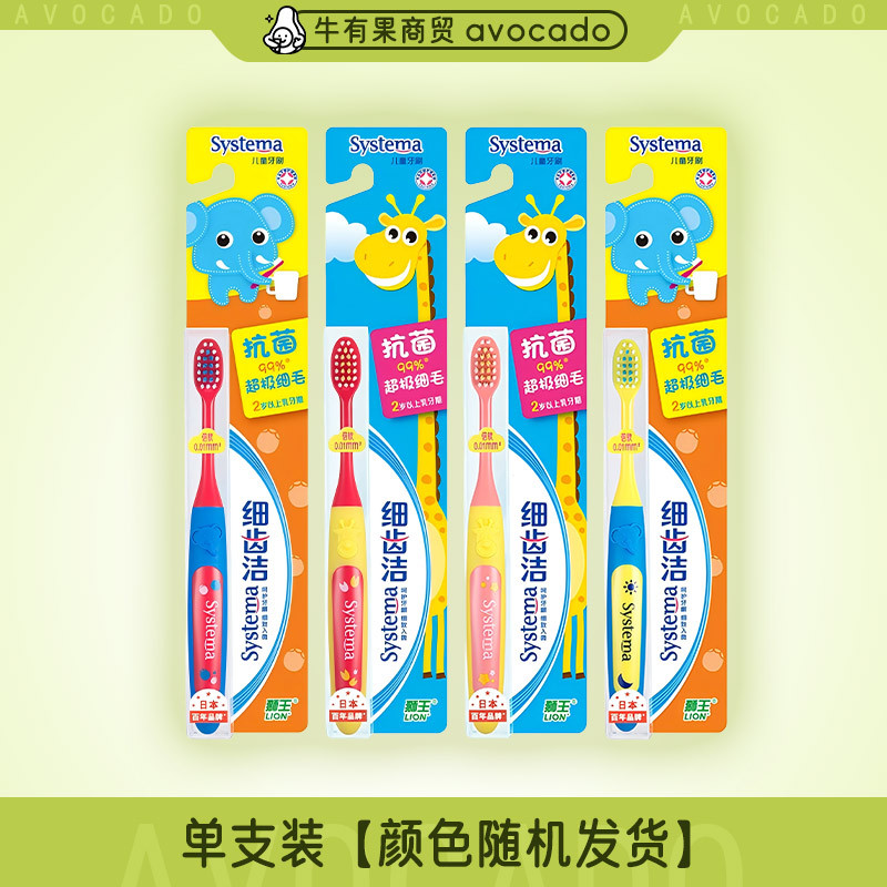 2 세 이상 어린이를위한 일본 사자 미세 치아 청소 항균 미세 헤어 칫솔 만화 부드러운 핸들 부드러운 헤어 칫솔스토어 가기