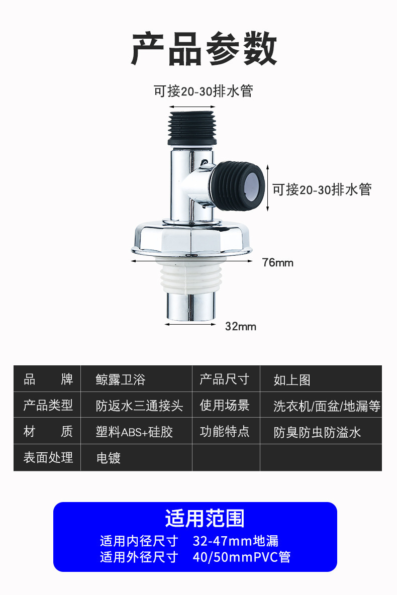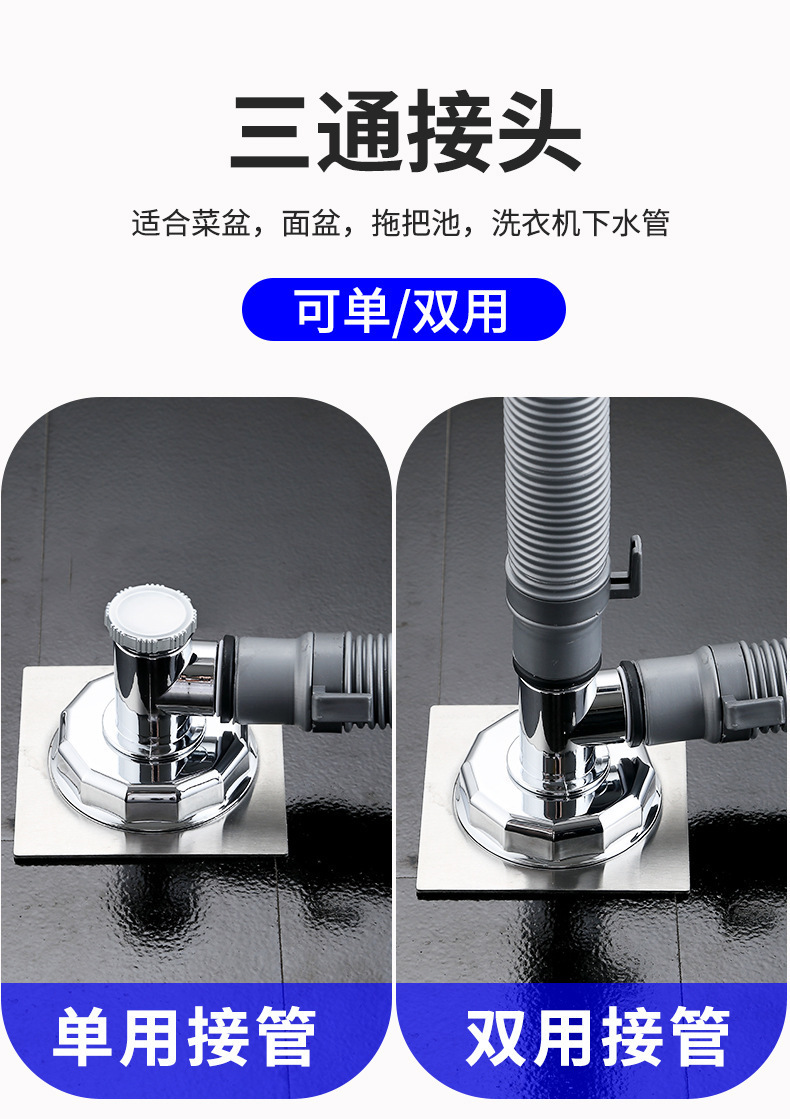 洗衣机排水管地漏接头三通两用防臭三头通连接下水管接口连接器