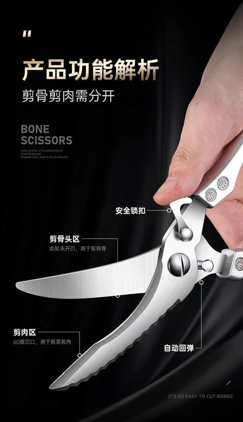주방 닭뼈 가위, 다기능 닭뼈 가위, 오리 및 생선 살해 가위, 잠금 장치가 있는 스테인레스 스틸 강력 뼈 가위스토어 가기
