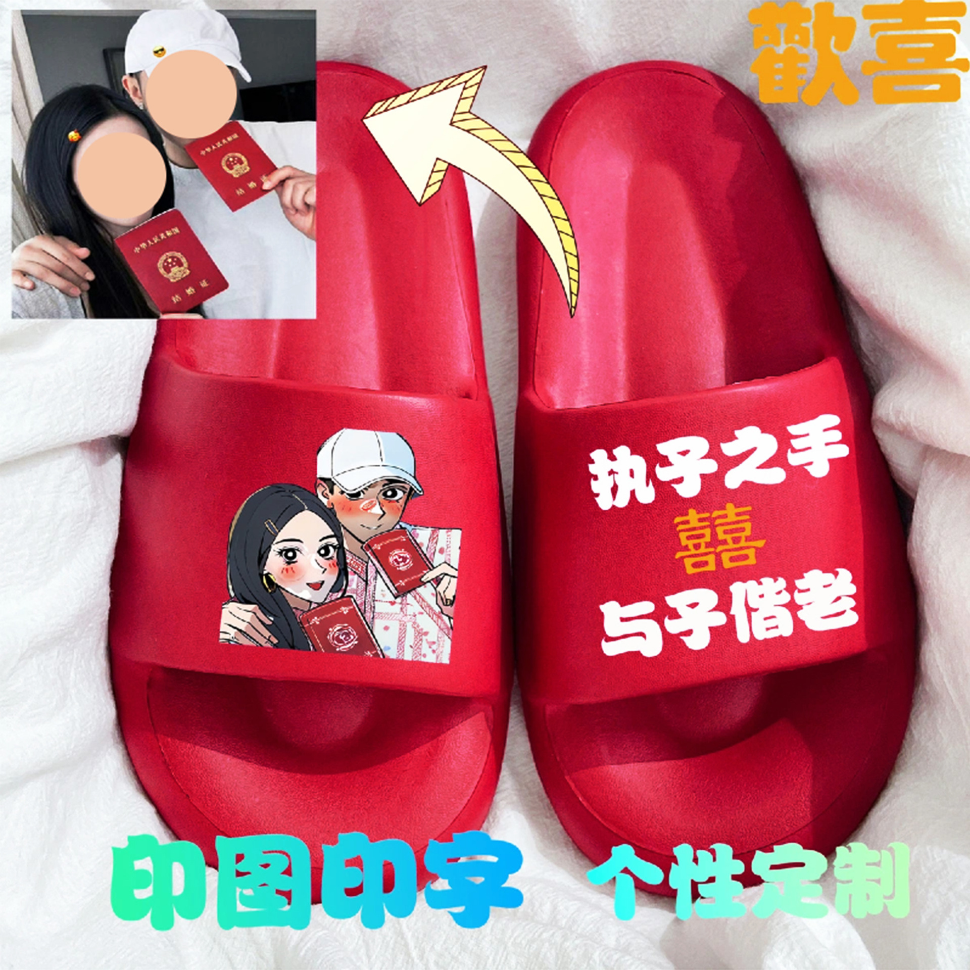 웨딩 슬리퍼 축제 레드 신혼 부부의 한 쌍 높은 두꺼운 하단 신부와 신랑 인터넷 축하 웨딩 슬리퍼스토어 가기