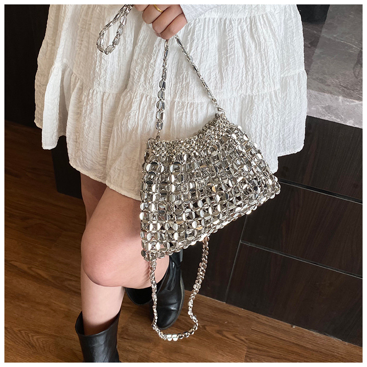 어린이 가방 새로운 유행 반짝이 수제 구슬 멜론 씨 가방 여성용 휴대용 겨드랑이 가방스토어 가기