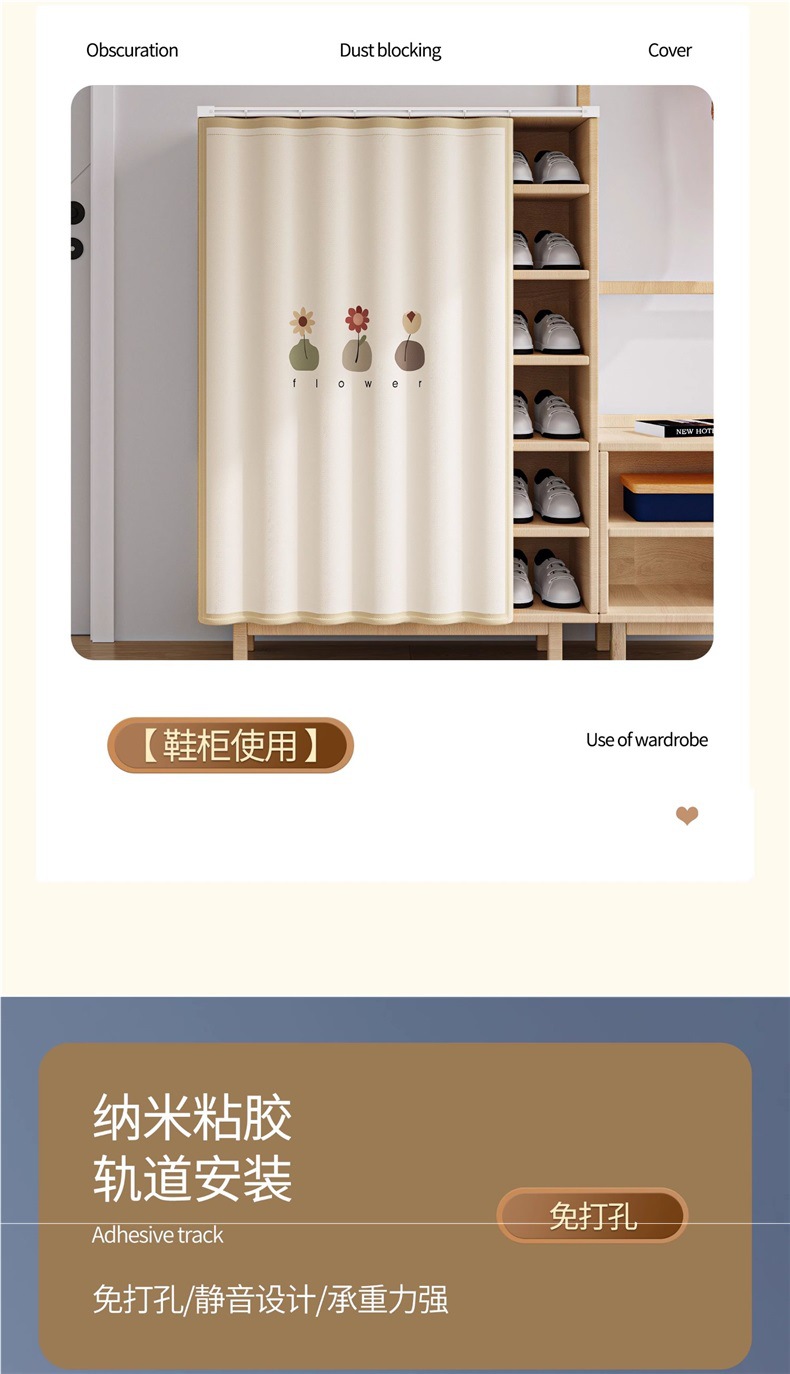 옷장 방 대피소 커튼 문답없는 먼지 방지 펀치 무료 폐쇄 실 도어 커튼 슬라이드 레일 잡화 캐비닛 옷장 커튼 커튼