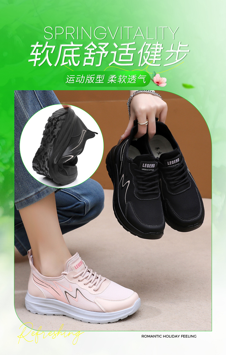 봄 2025 새로운 스타일의 통기성 메쉬 스포츠 캐주얼 신발 여성의 올드 베이징 천 신발 경량 소프트 단독 엄마의 워킹 신발스토어 가기
