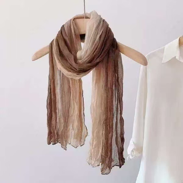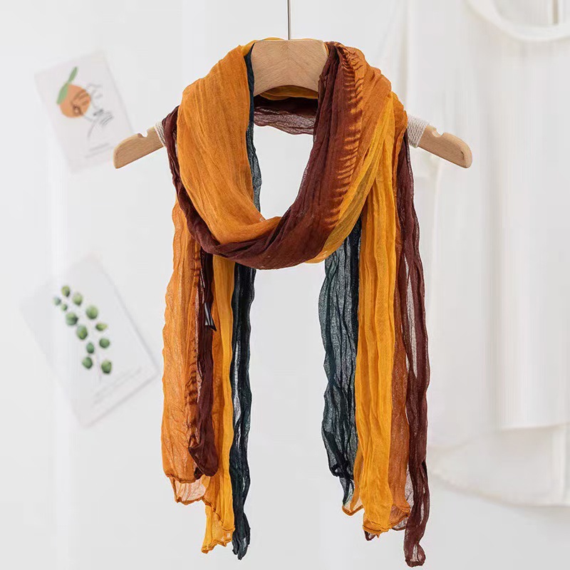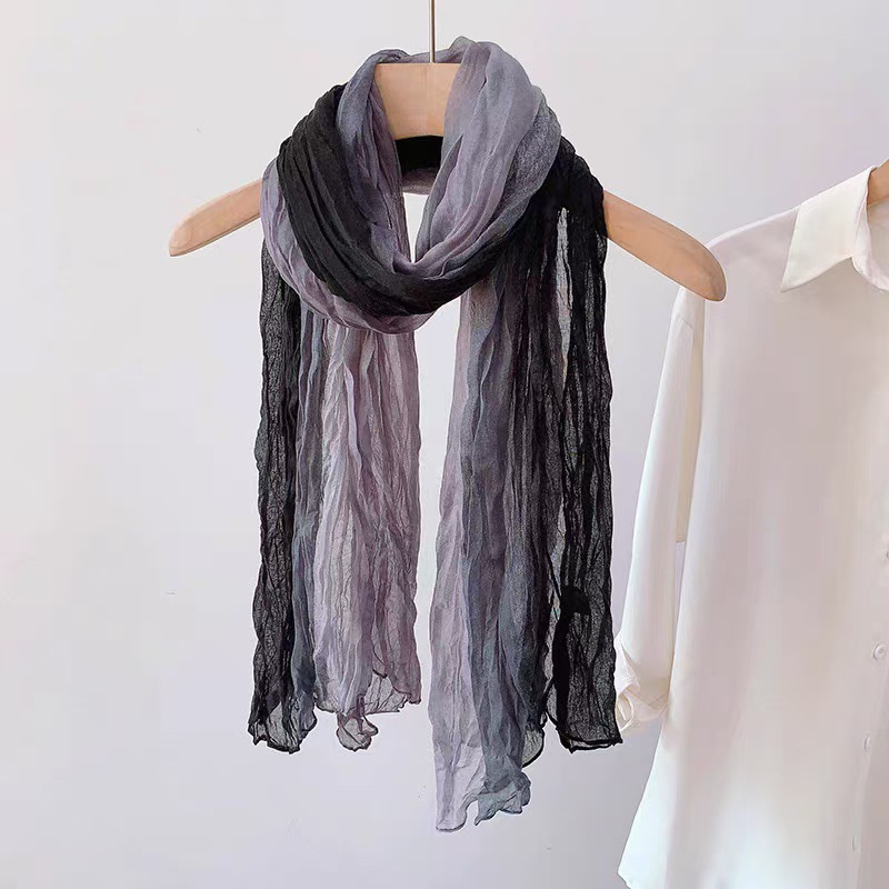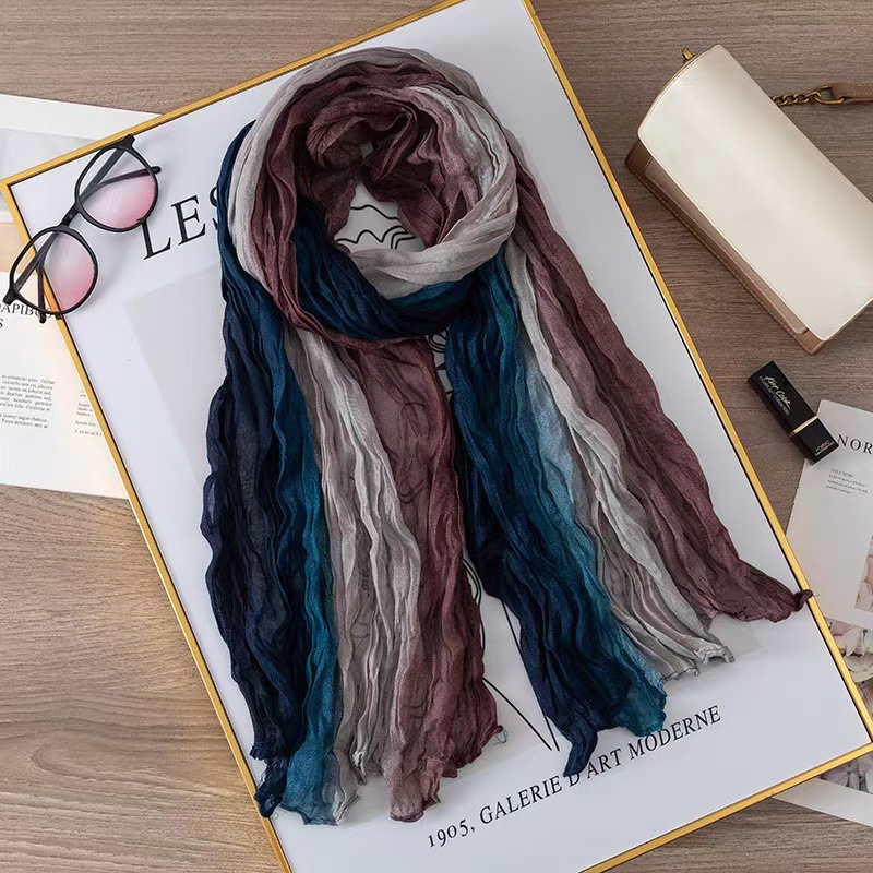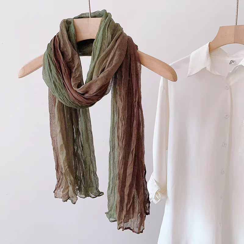 2025년 신상 면마 스카프 여성용 그라데이션 숲풍 타이다이 주름 얇은 전원풍 보온 목도리 스카프