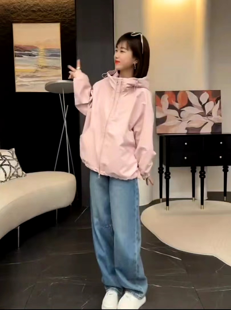 후드 재킷 여자 봄과 가을 새로운 2024 한국 스타일 느슨한 하이 엔드 감각 작은 올 매치 재킷 탑스토어 가기