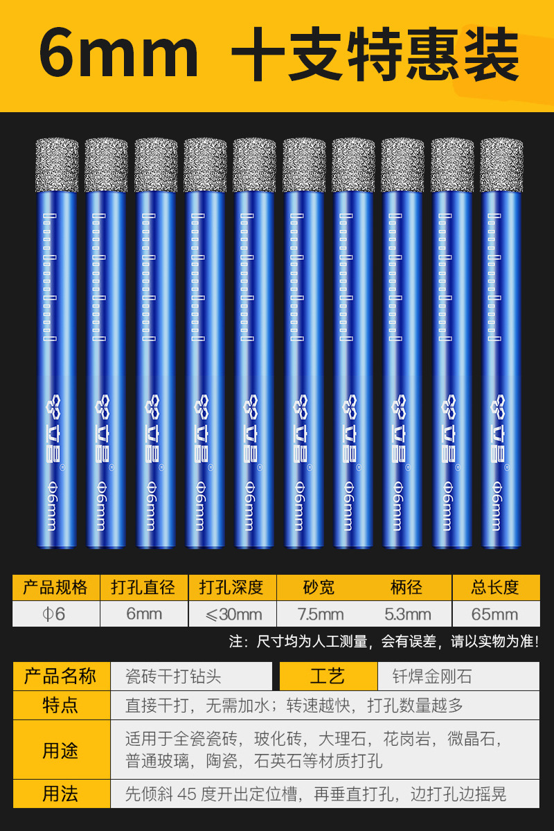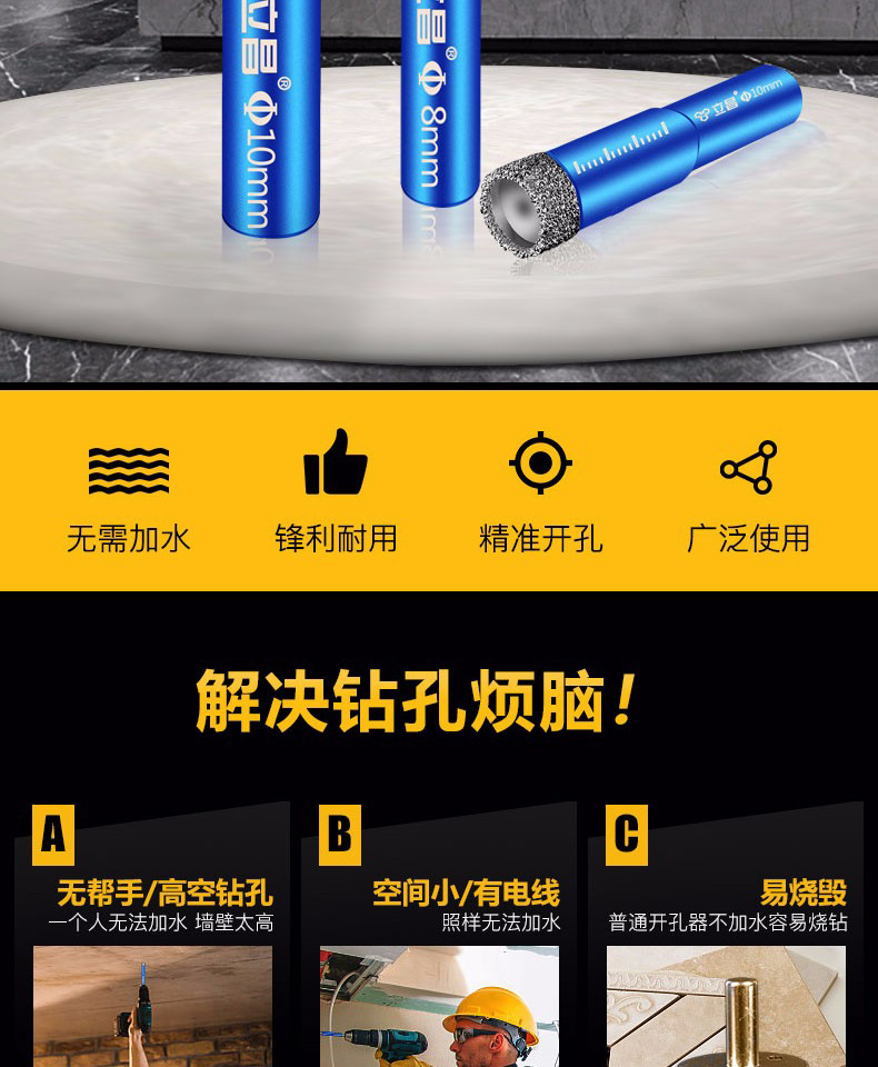 타일 드릴 드릴 드라이 드릴 아티팩트 대리석 Vitrified 타일 모든 세라믹 타일 유리 구멍 오프닝 특수 드릴스토어 가기