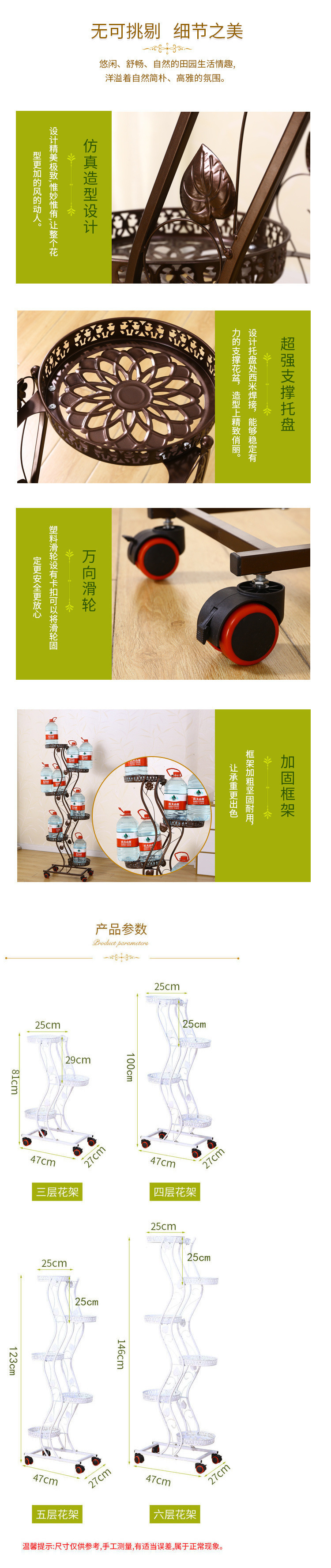 유럽 스타일 연철 꽃 랙 발코니 거실 다층 공간 절약 실내 바닥 서 녹색 장미 움직일 수있는 꽃 냄비 랙 바퀴