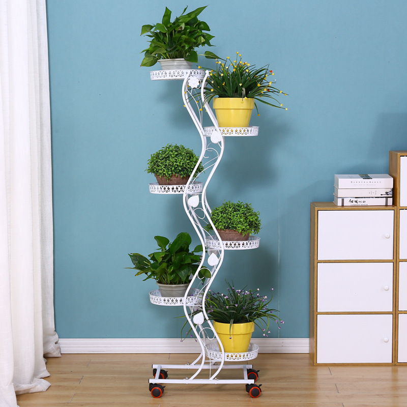 유럽 스타일 연철 꽃 랙 발코니 거실 다층 공간 절약 실내 바닥 서 녹색 장미 움직일 수있는 꽃 냄비 랙 바퀴스토어 가기