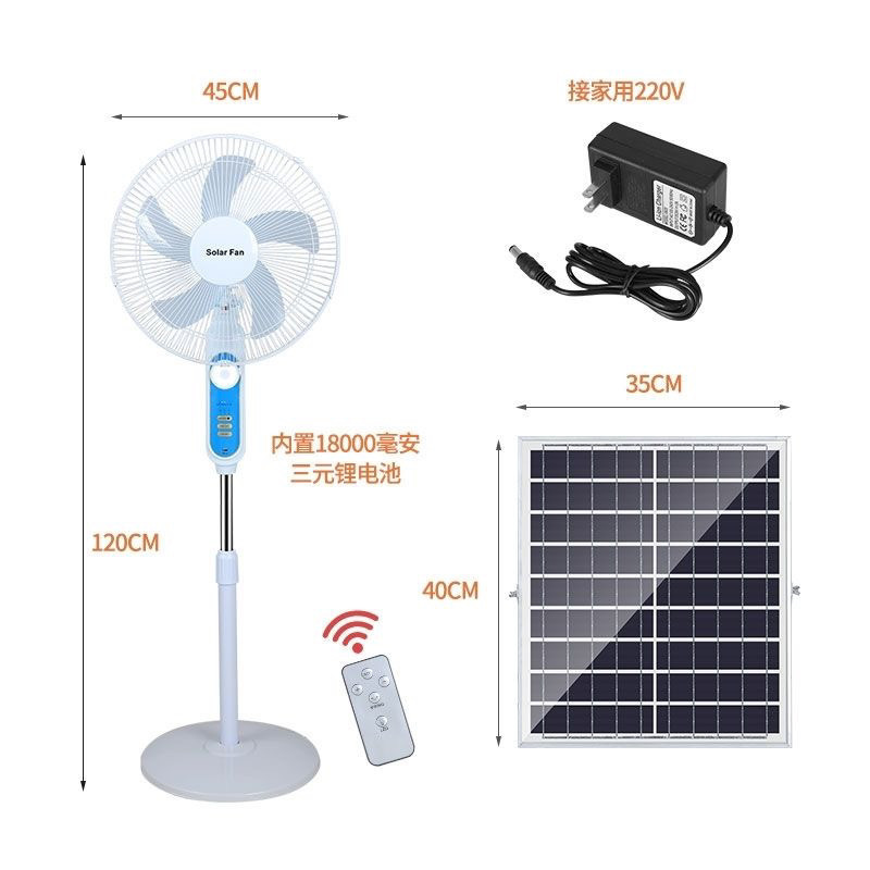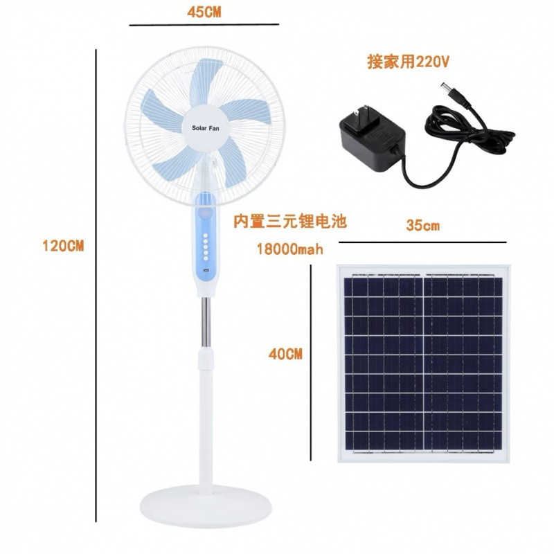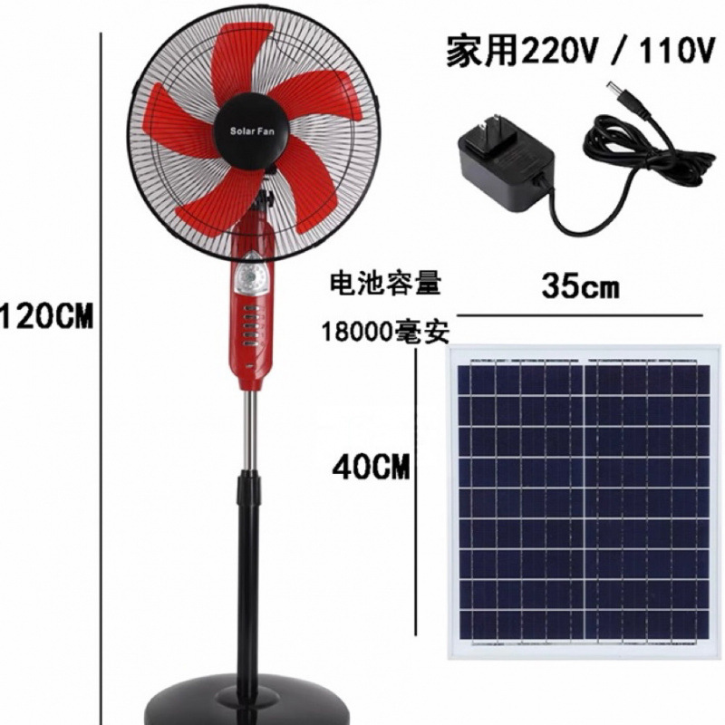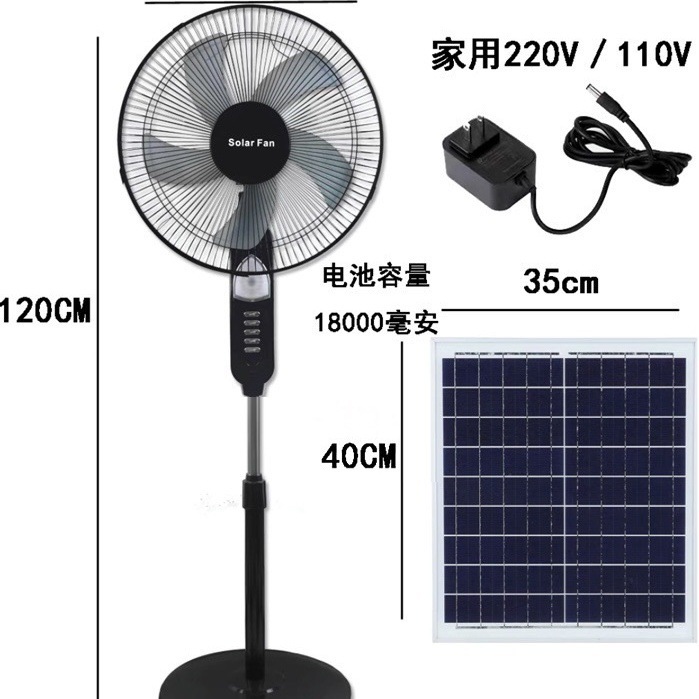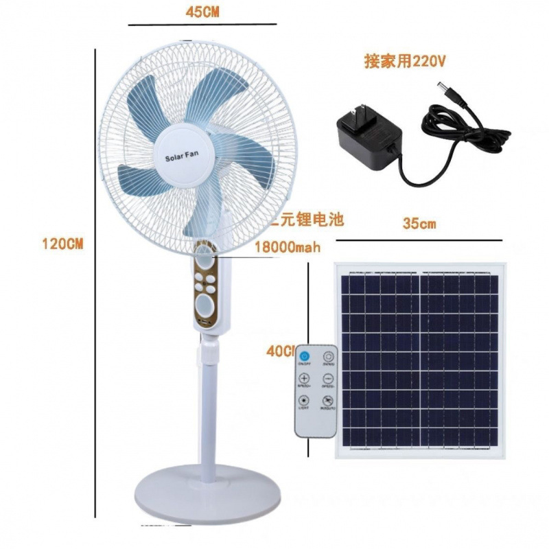 태양 충전 팬 큰 바람 16 인치 흔들리는 머리 홈 야외 스톨 저장 바닥 팬 이중 목적 플러그 해제