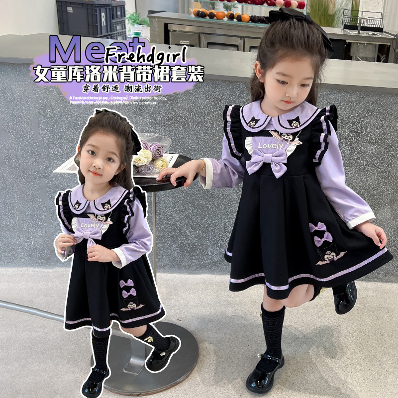 소녀 쿨로 미 세트 2025 봄과 가을 새로운 어린이 패셔너블 웨스턴 스타일 스트랜드 스커트 투피스 스커트