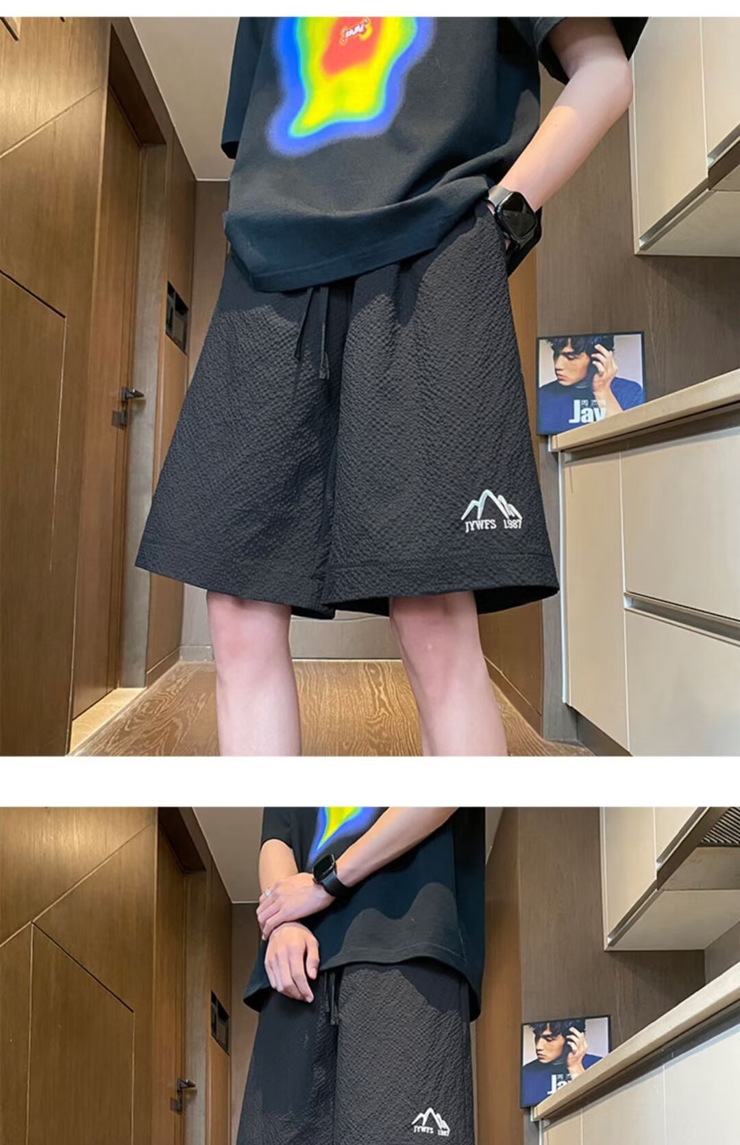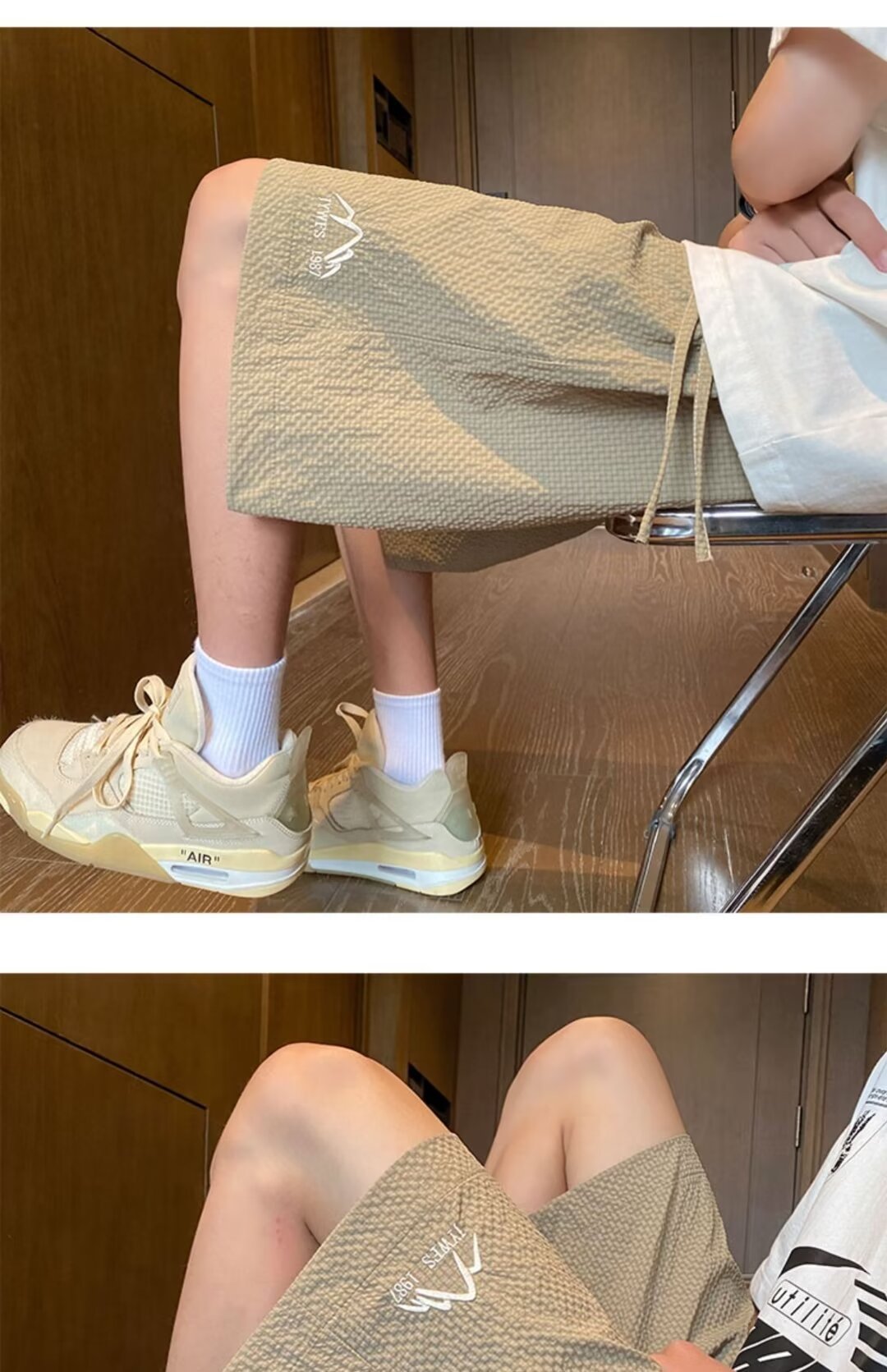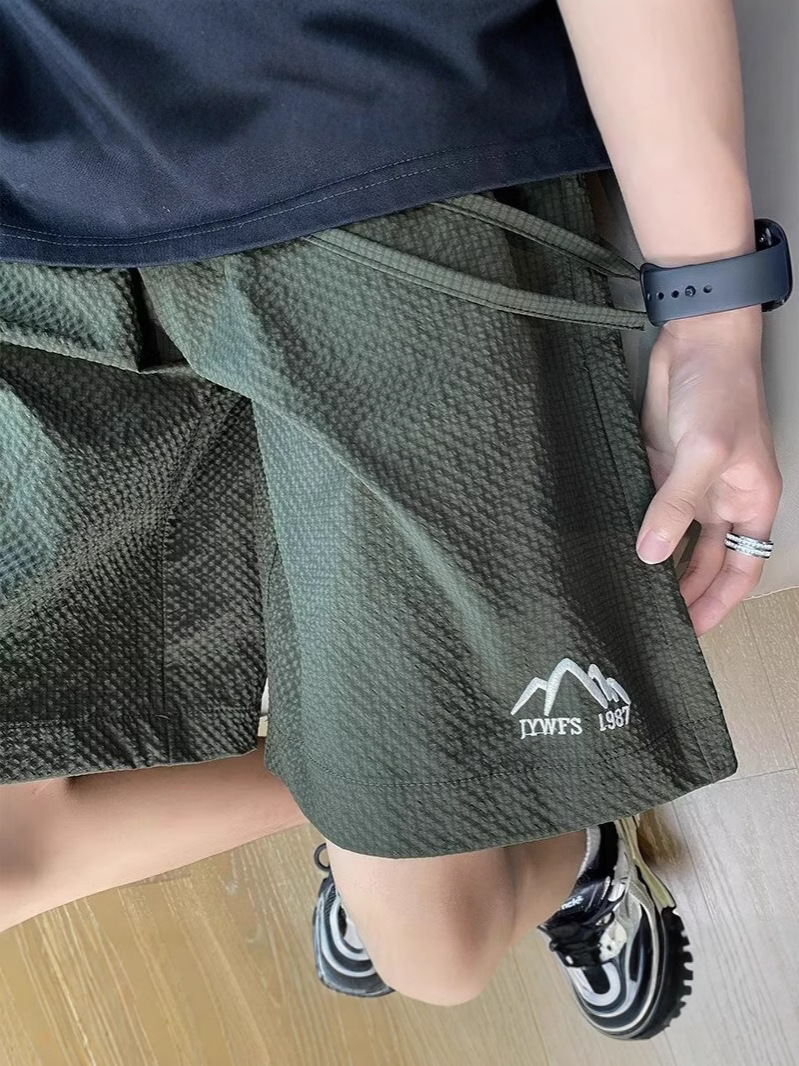 225 여름 새로운 도착 반바지 남자 아메리칸 스타일 산악 스타일 빠른 건조 느슨한 캐주얼 스포츠 바지 얇은 비치 바지