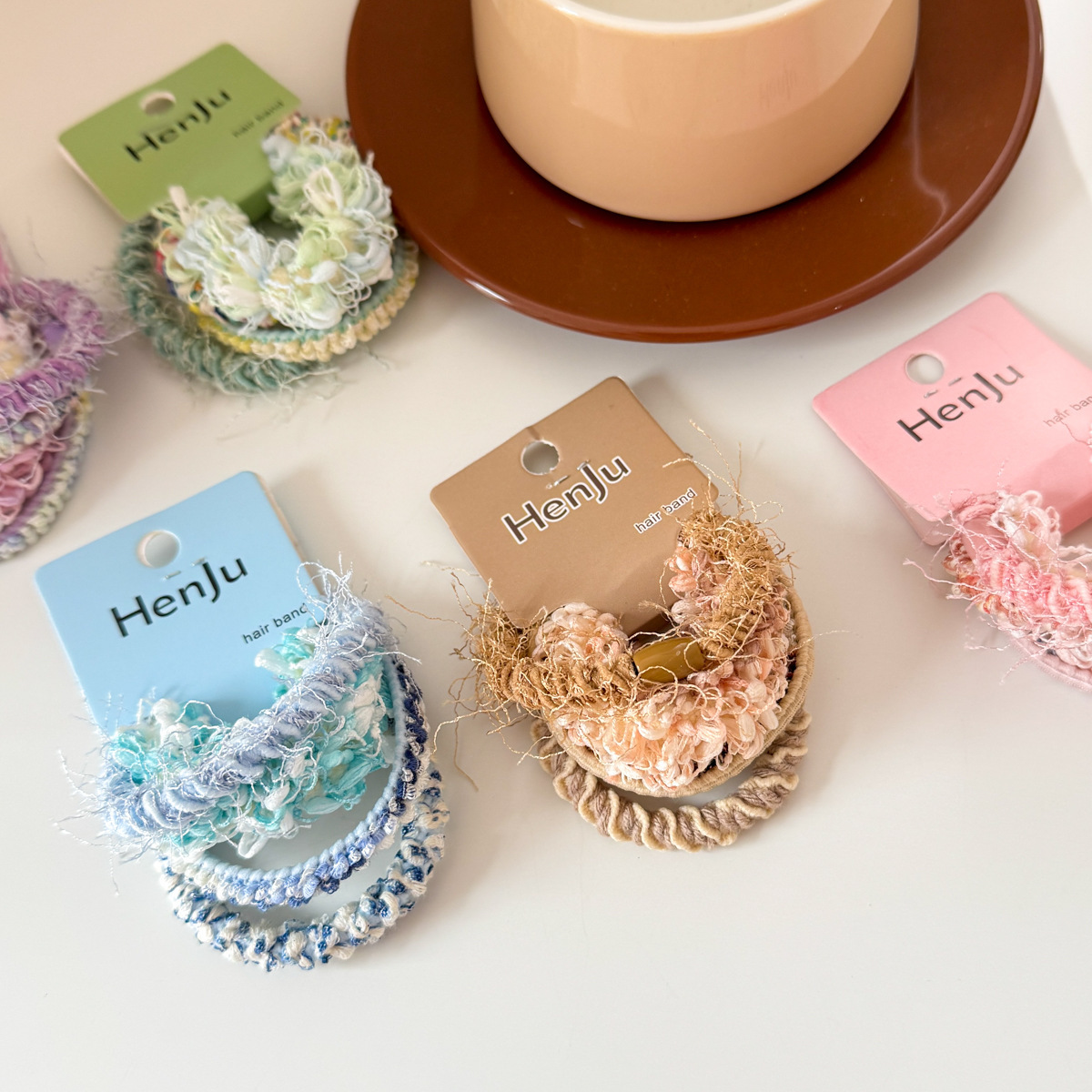 2025 새로운 니트 대마 로프 헤어 로프 여성용 하이 엔드 헤어 로프 헤어 고무 밴드 높은 탄성 내구성 헤어 링 세트