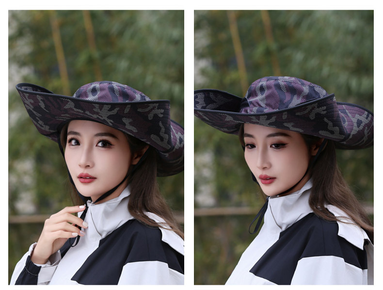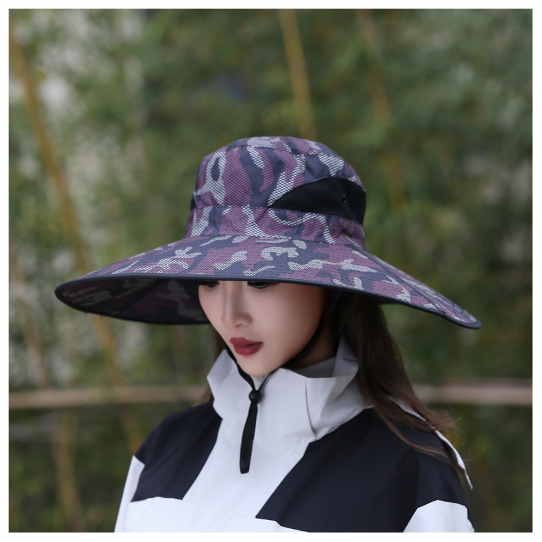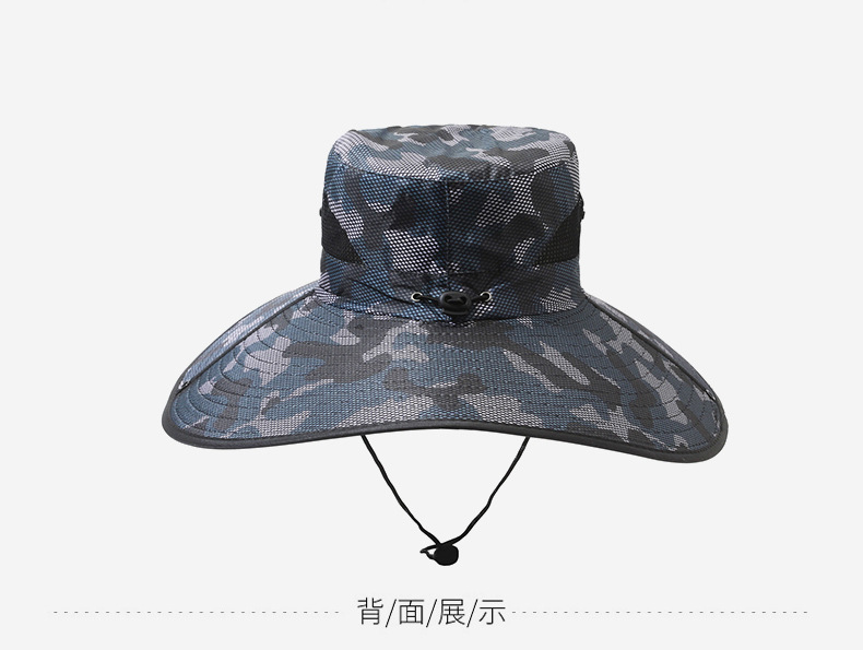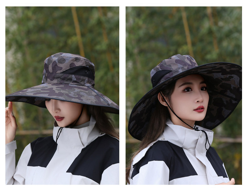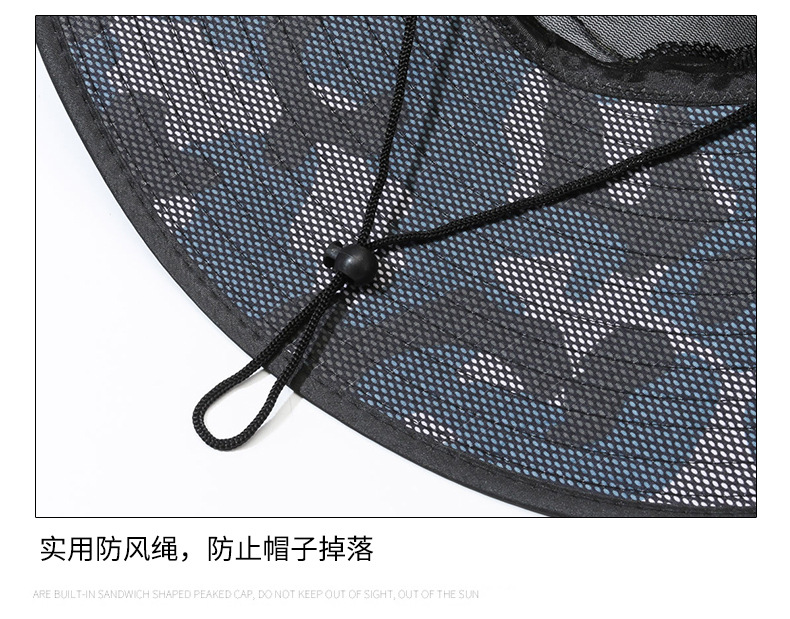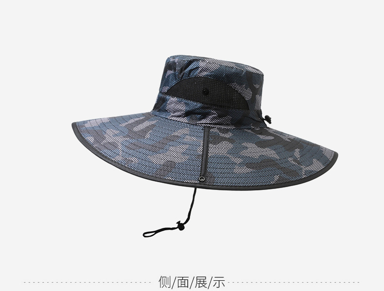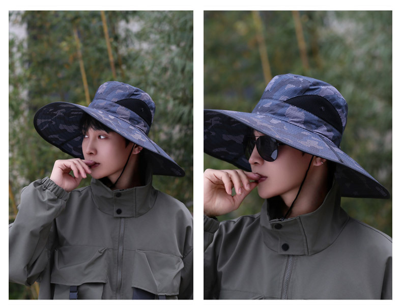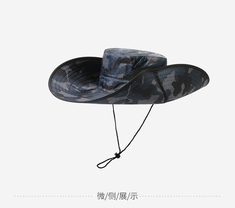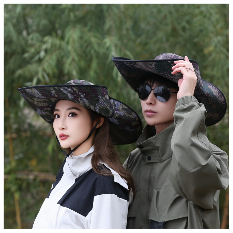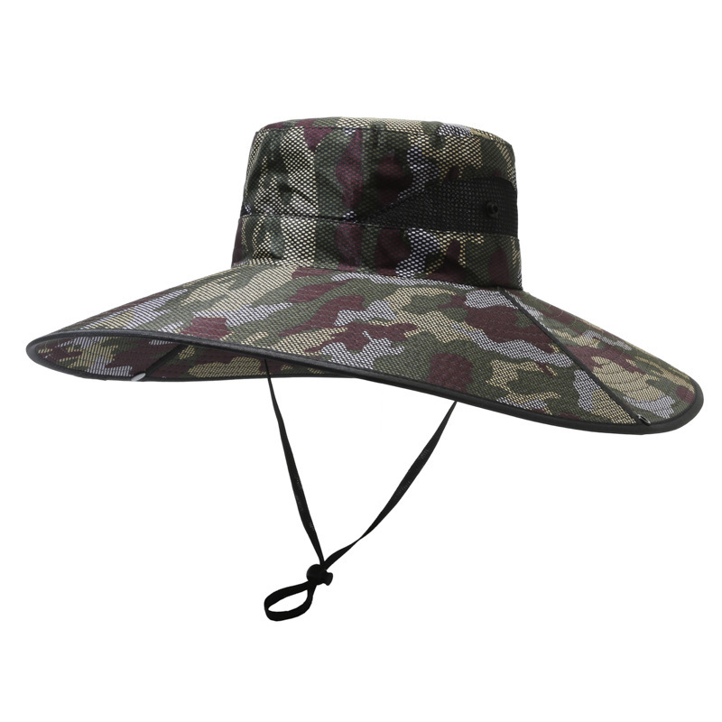 큰 챙이 썬 모자 15cm 그리드 위장 태양 모자 스냅 버튼 큰 챙이 카우보이 모자 야외 하이킹 모자 낚시 모자