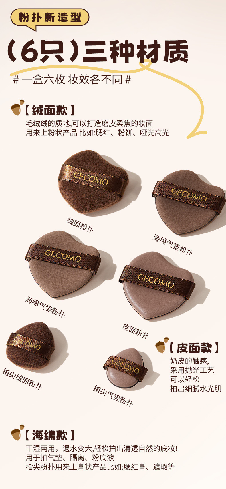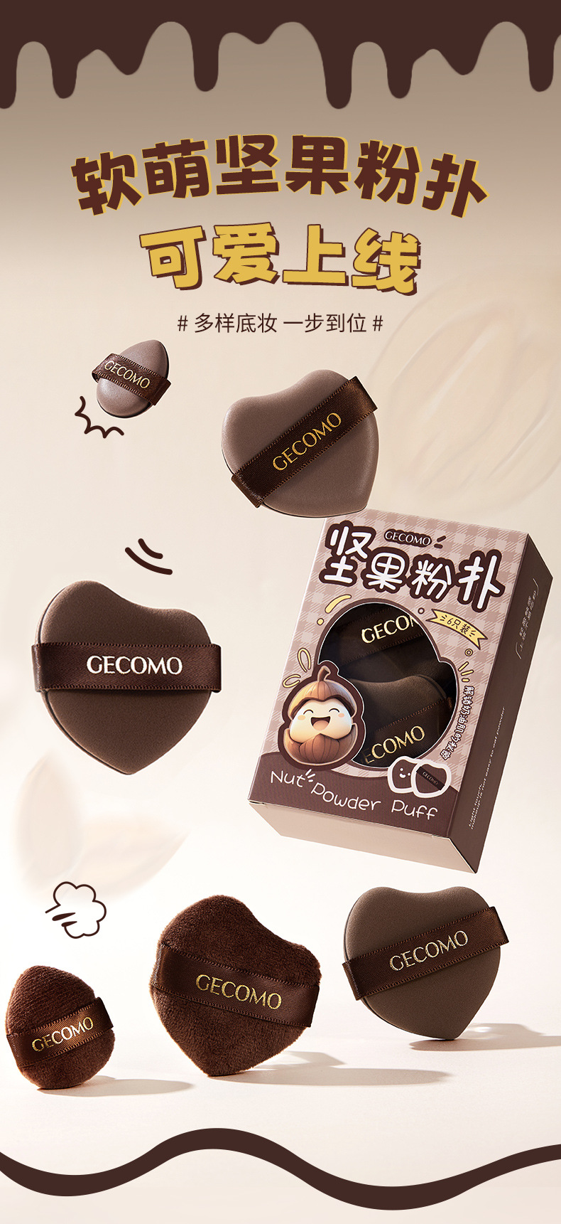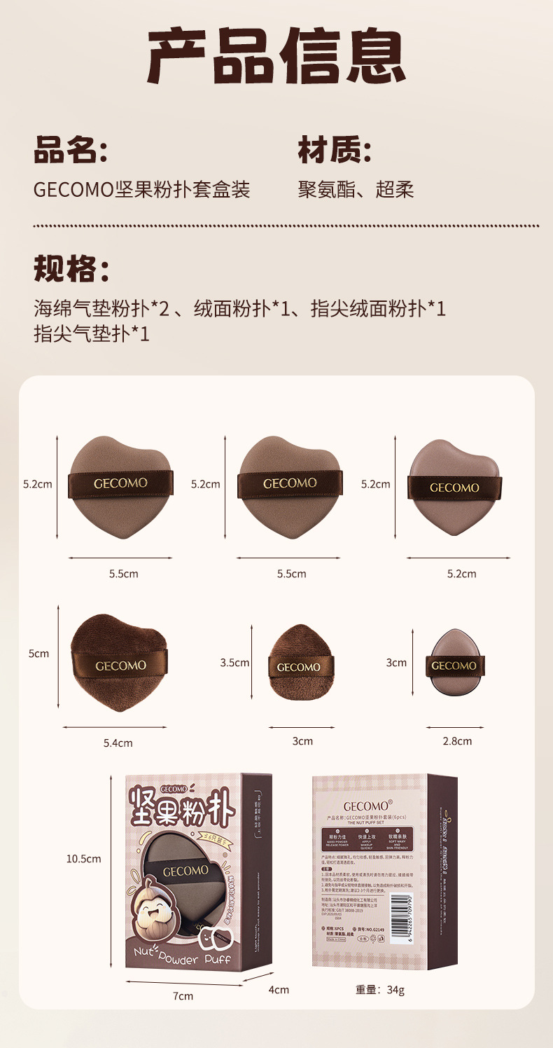 GECOMO 너트 파우더 퍼프 세트 건조하고 젖은 가죽 파우더 퍼프 파우더 없음 파우더 Q 탄성 에어 쿠션 핑거 마시멜로