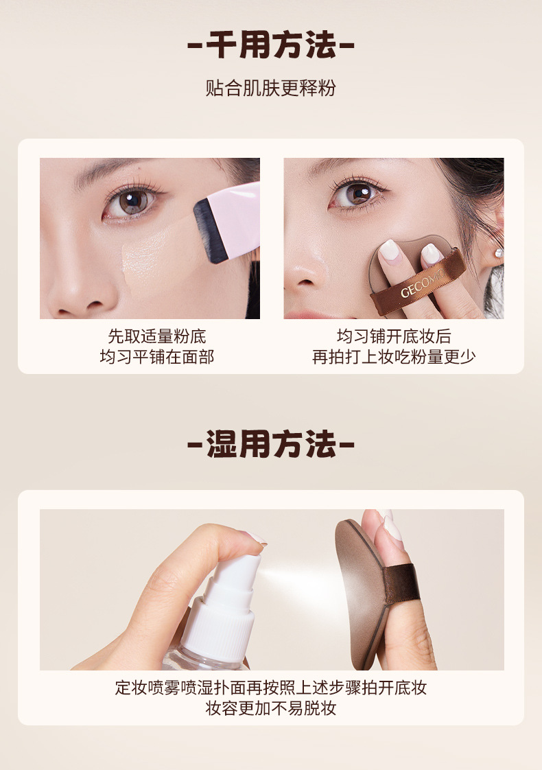 GECOMO 너트 파우더 퍼프 세트 건조하고 젖은 가죽 파우더 퍼프 파우더 없음 파우더 Q 탄성 에어 쿠션 핑거 마시멜로스토어 가기
