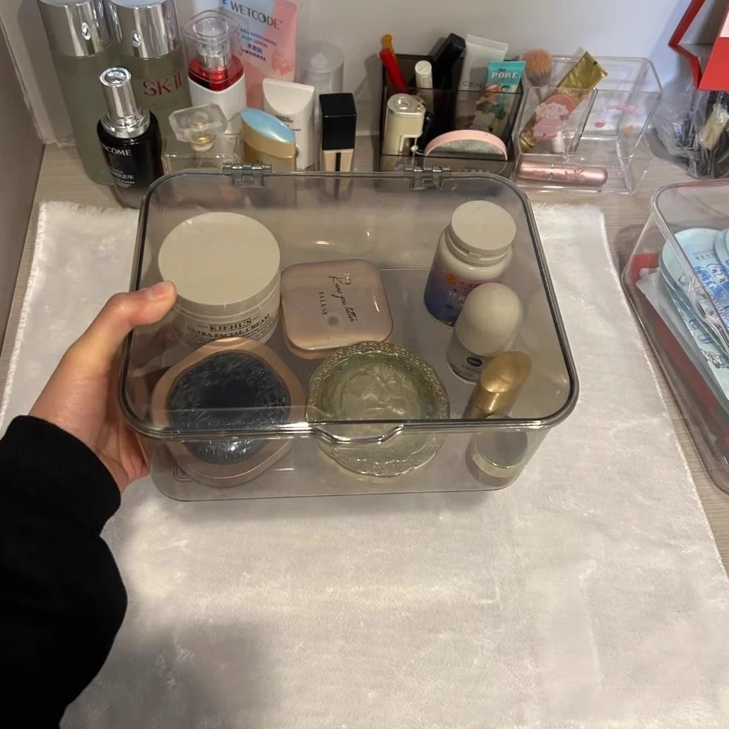 플립 형 데스크톱 저장 상자 투명한 아크릴 방진 적합 상자 침실 기숙사 사무실 식료품 바구니 뚜껑