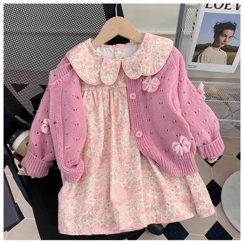 [94% 호평] 여자 카디건 스웨터 봄 2025 새 외국식 아기 어린이 공주 치마 세트
