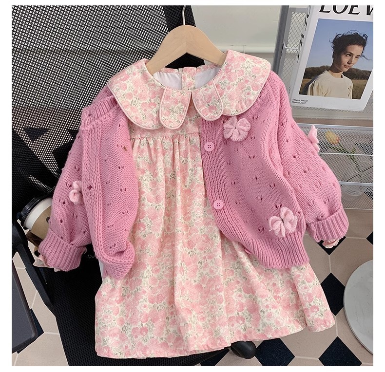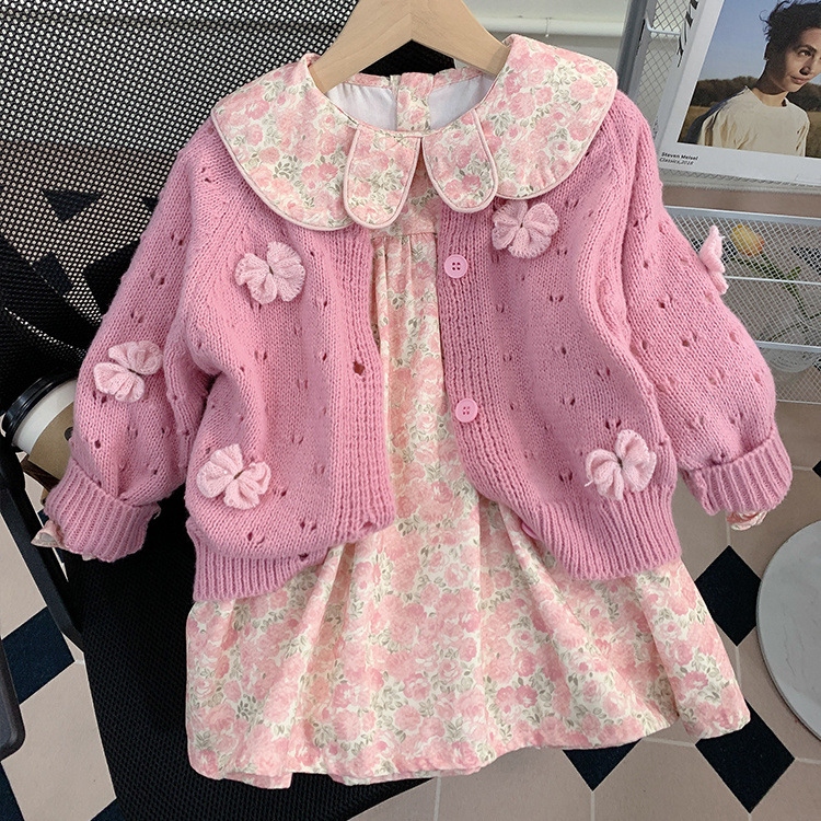 [94% 호평] 여자 카디건 스웨터 봄 2025 새 외국식 아기 어린이 공주 치마 세트스토어 가기