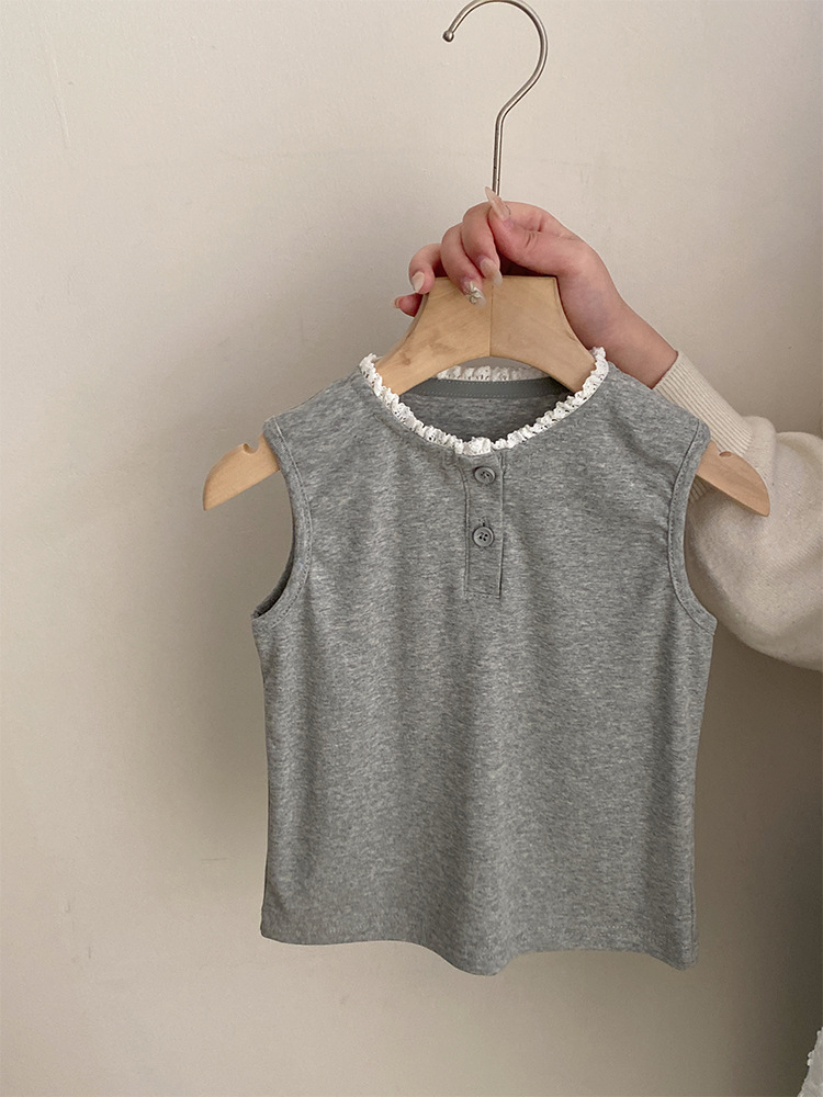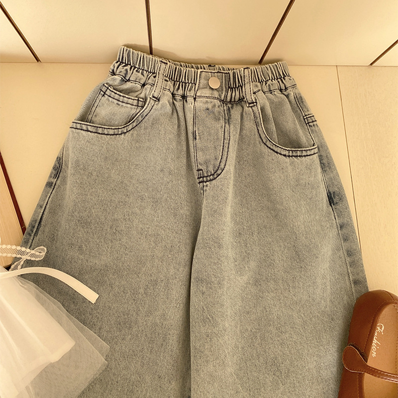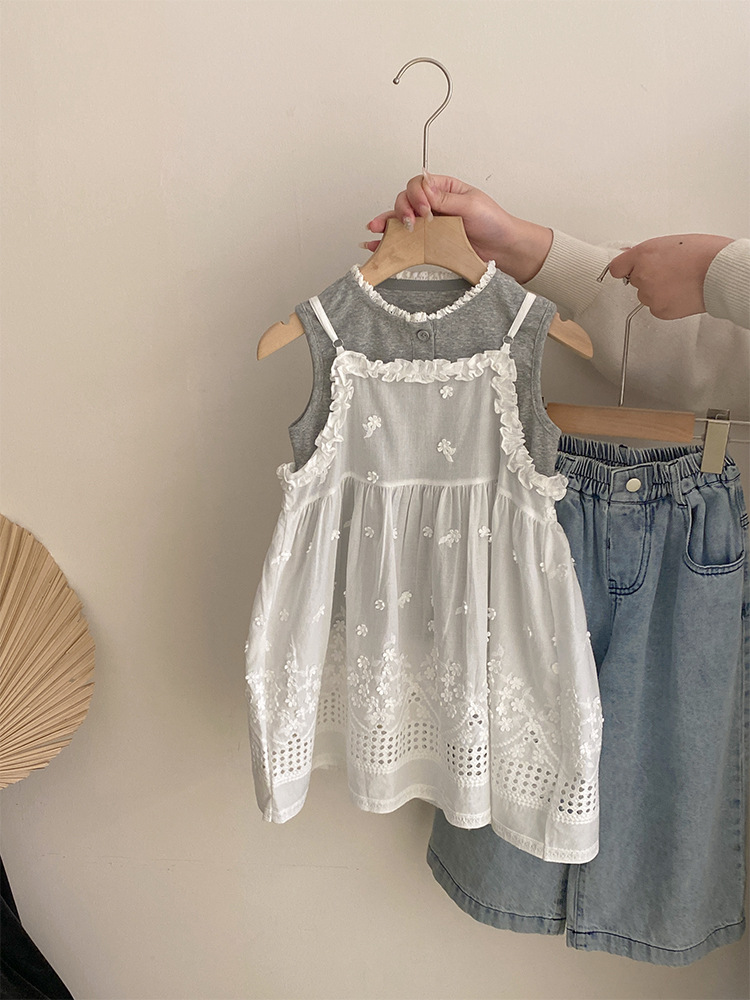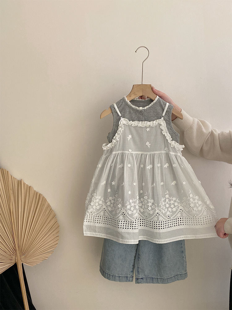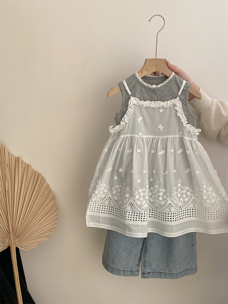 여아 2025 년 여름 새 한국식 레이스 조끼 어린이 자수 레이스 슬링 원피스 느슨한 청바지스토어 가기