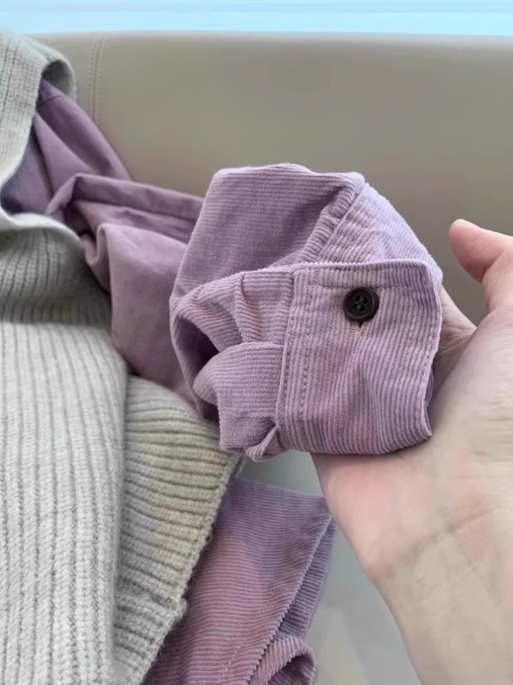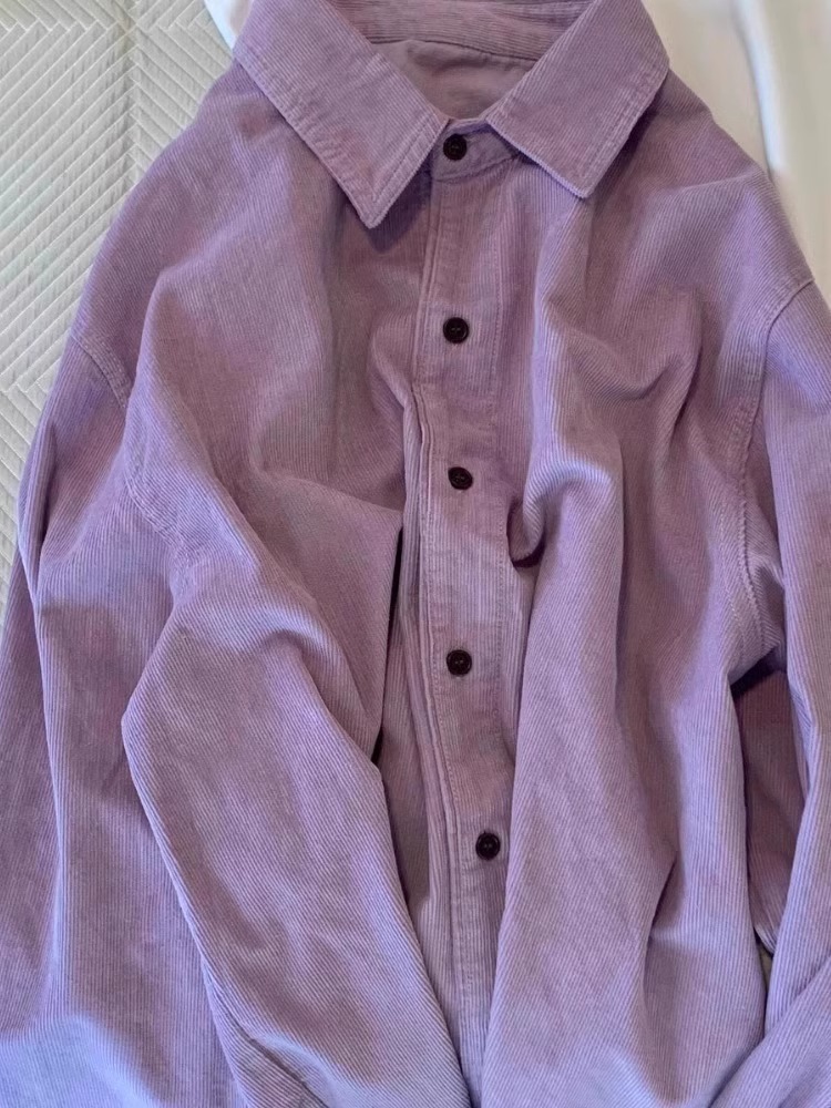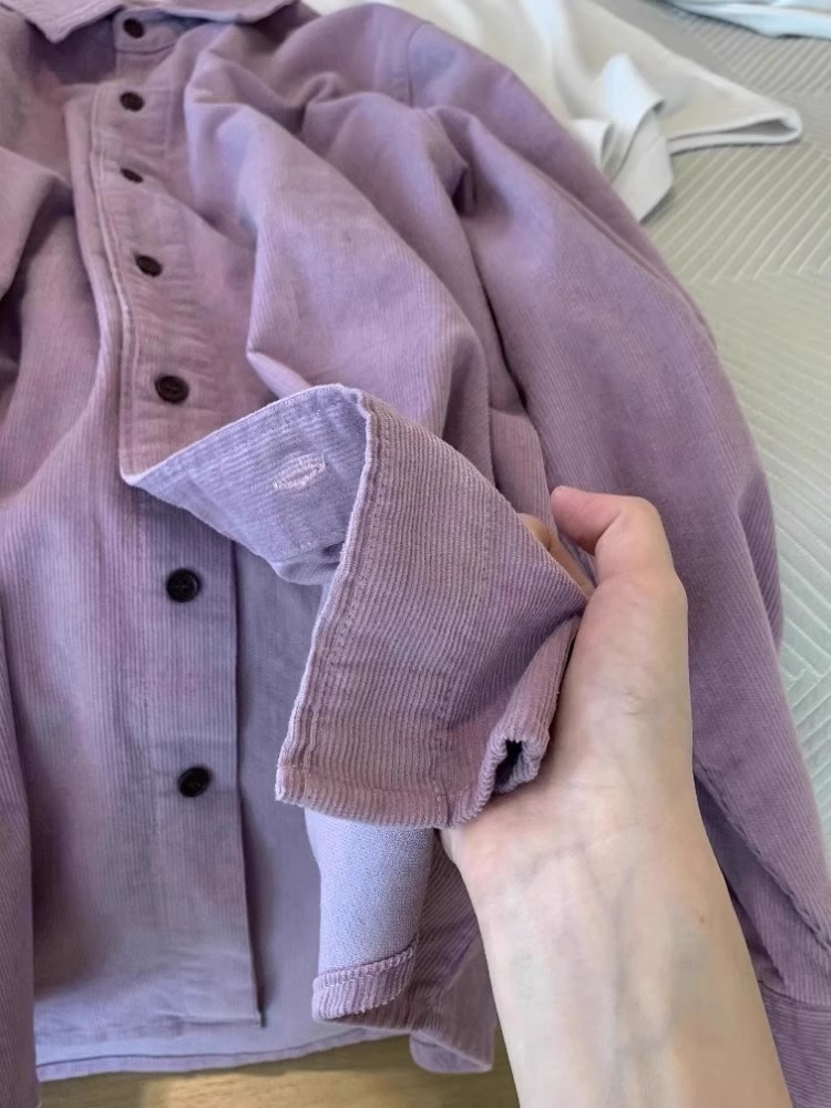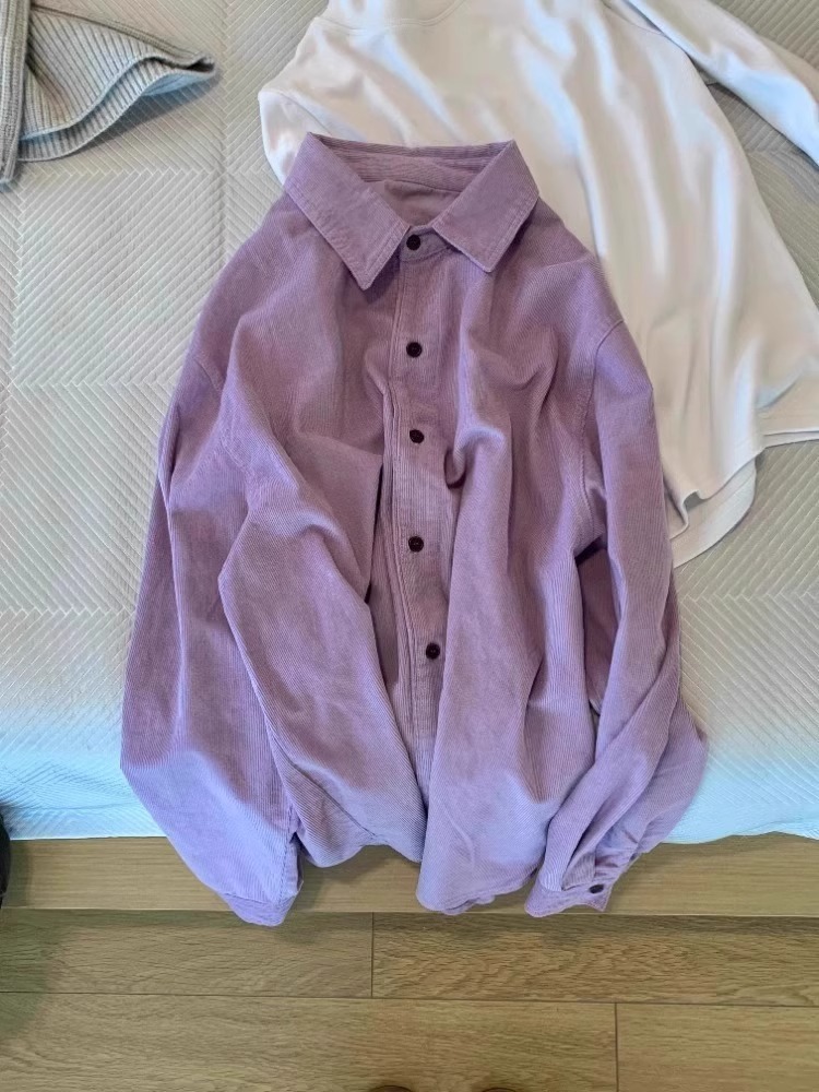 보라색 긴 소매 어깨 Corduroy 셔츠 여성의 봄과 가을 스택 셔츠 재킷 디자인 센스 틈새 세련된 탑스토어 가기
