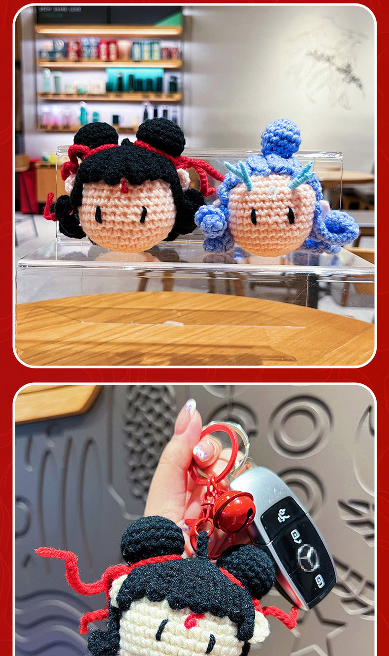 크리 에이 티브 만화 울 커플 가방 펜던트 작은 선물 도매 주위에 키 체인 귀여운 애니메이션 뜨개질스토어 가기