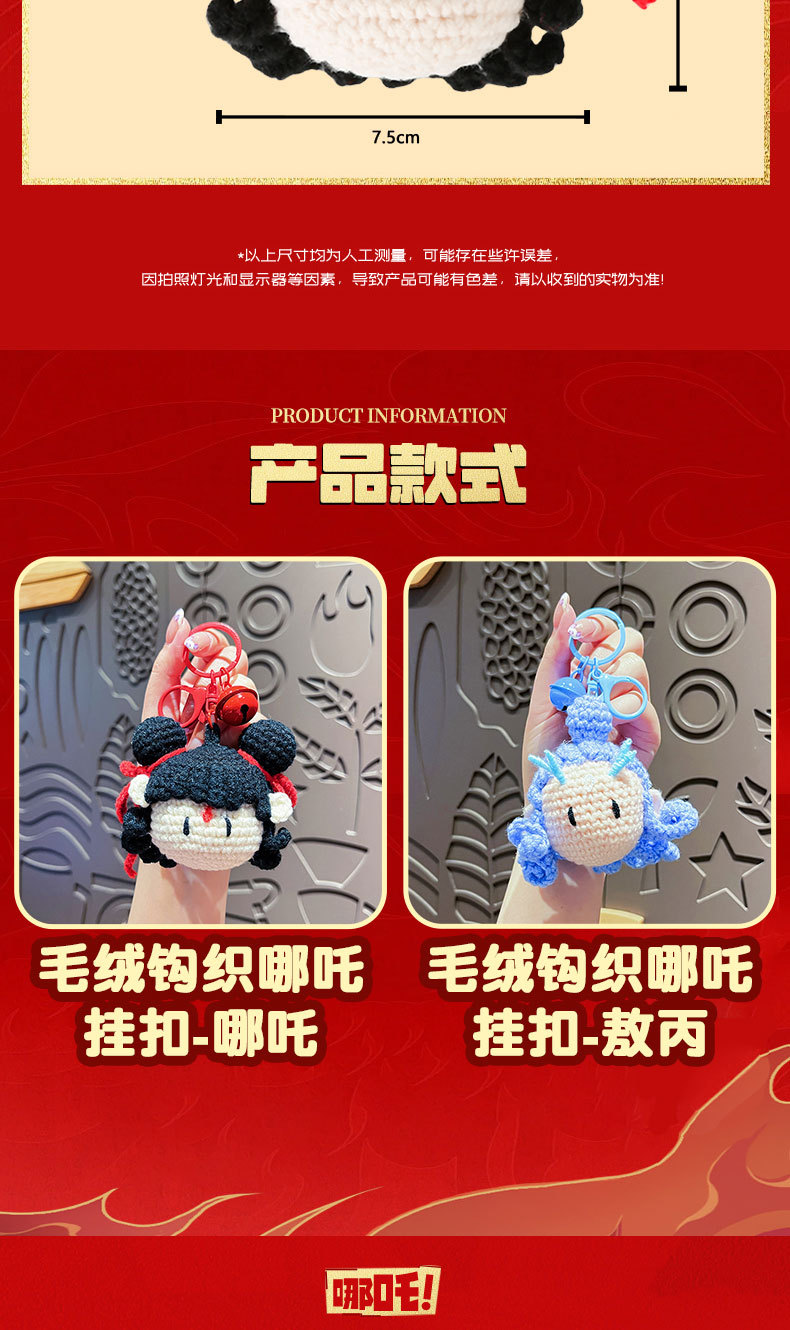 • 봉제 인형 크로셰 Nezha 버클-Ao Bing