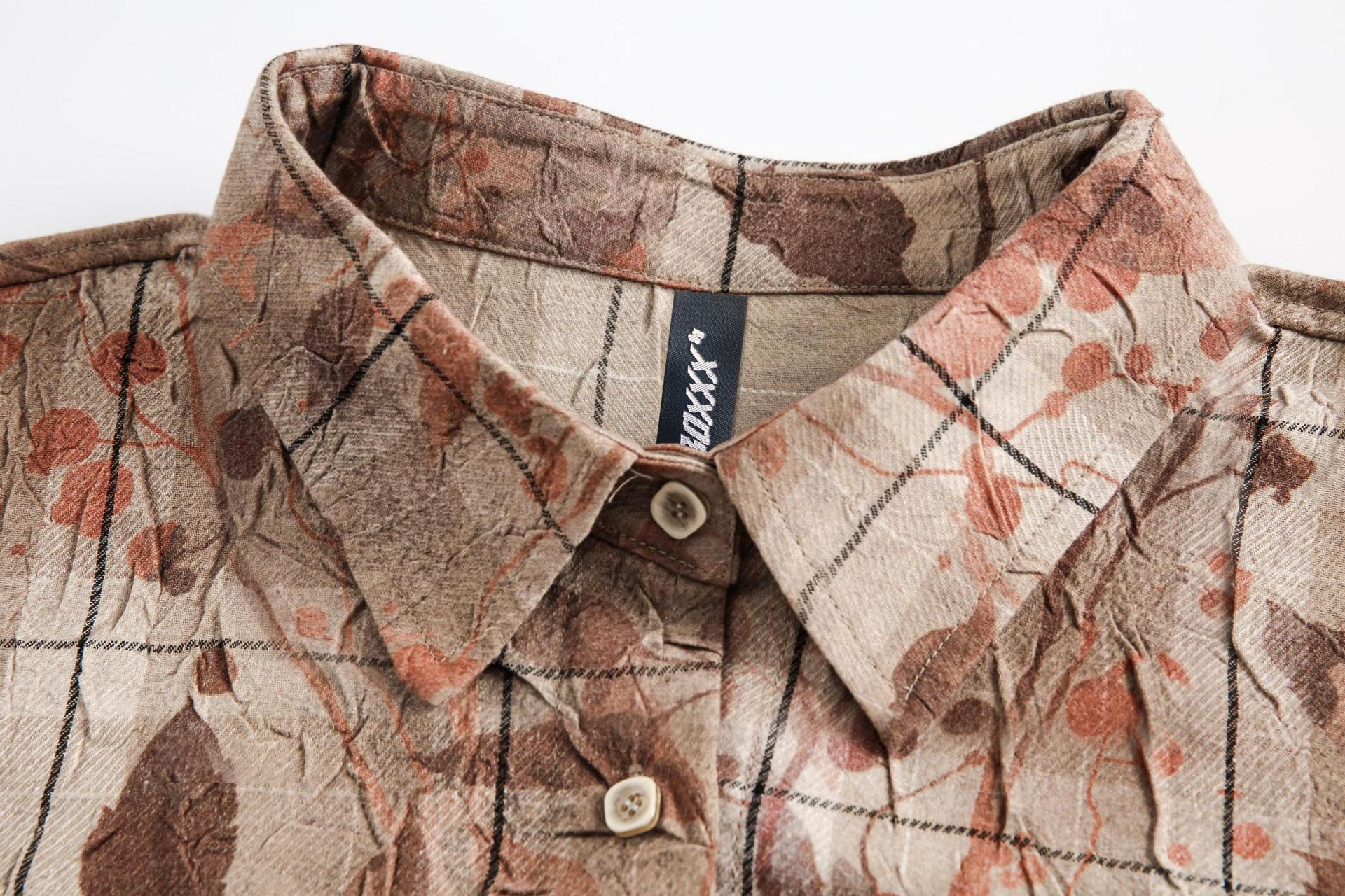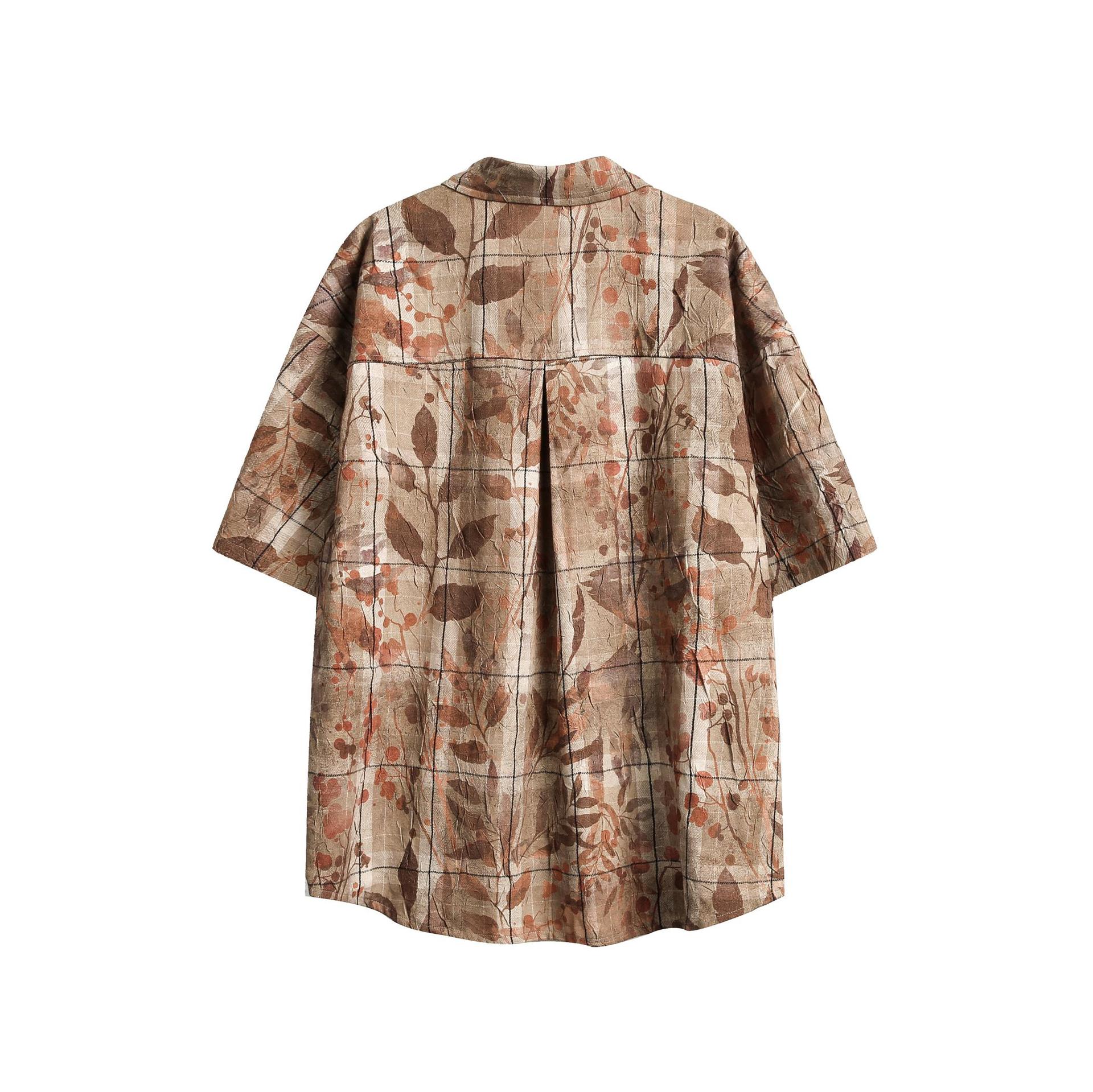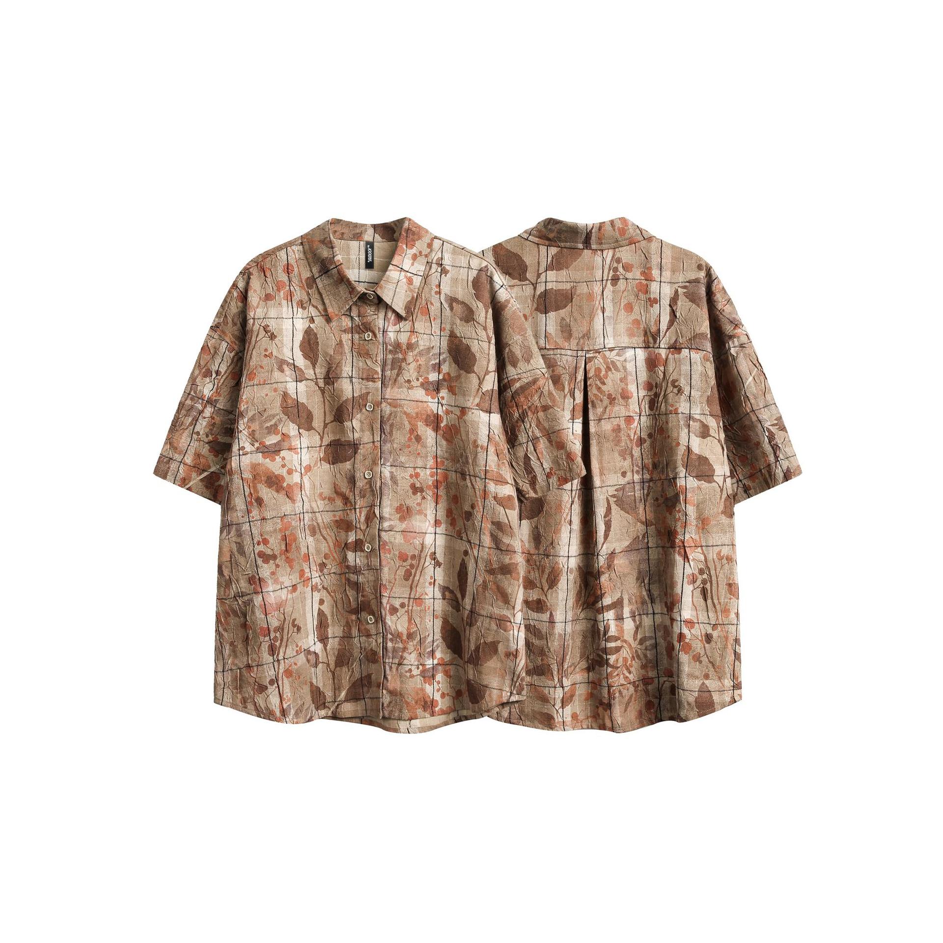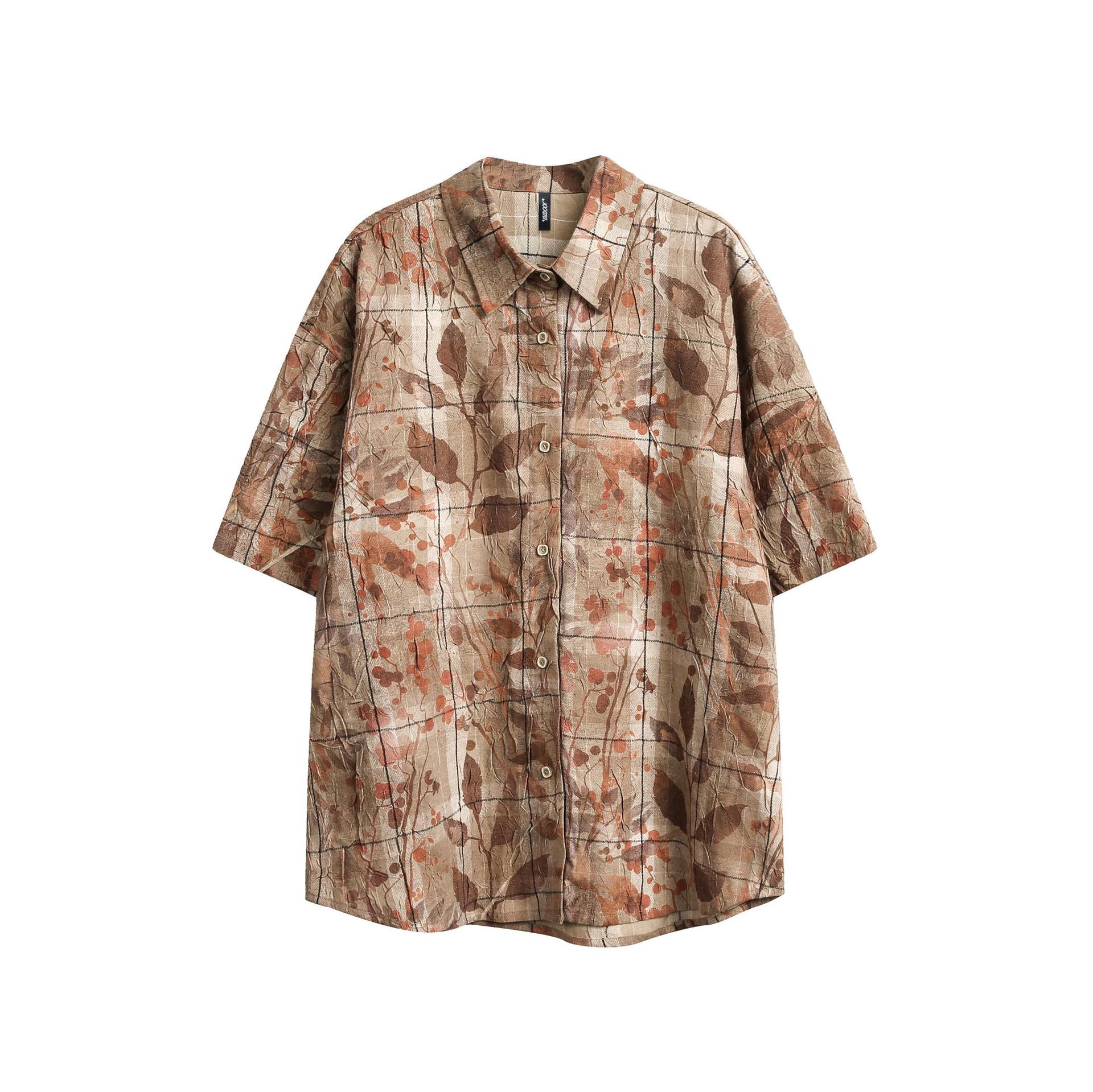 일본 스타일 레트로 트렌디 브랜드 슬리밍 독특한 메이플 리프 프린트 셔츠 남성과 여성의 느슨한 틈새 디자인 커플의 쿠바 셔츠스토어 가기