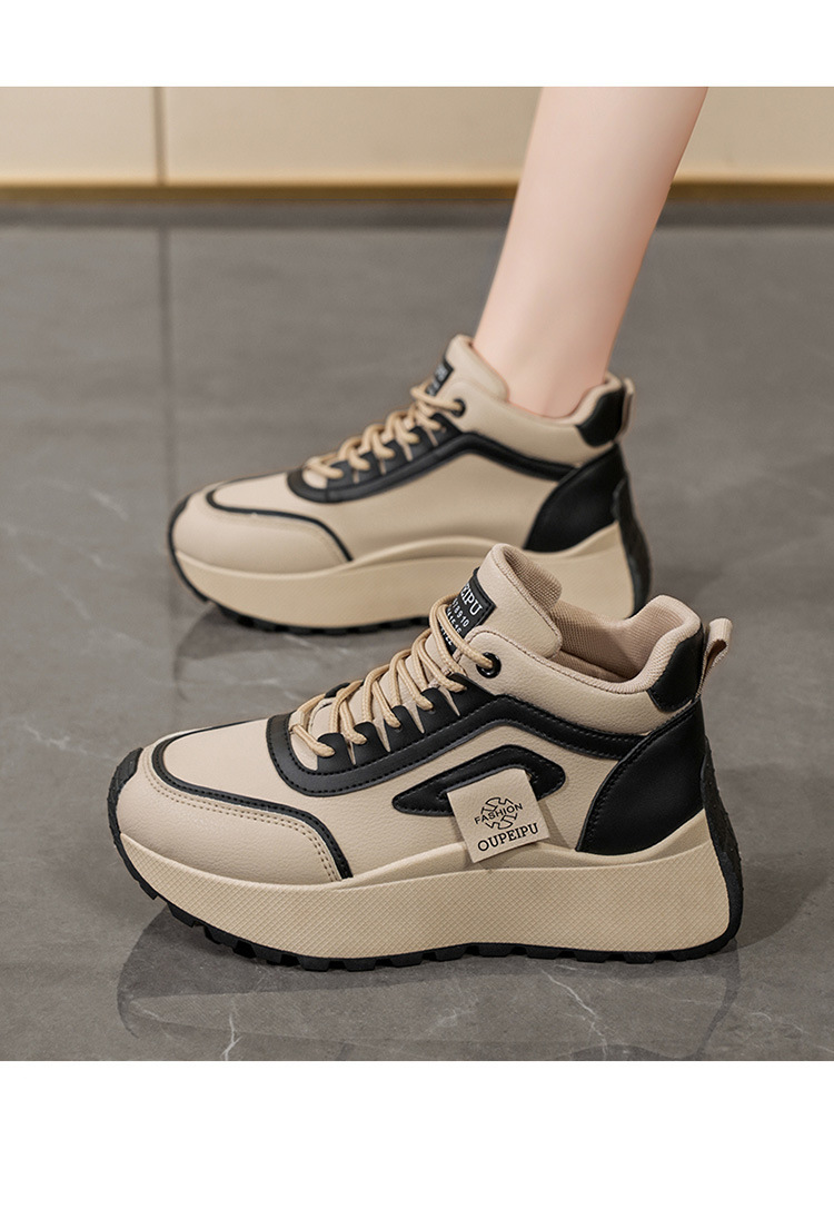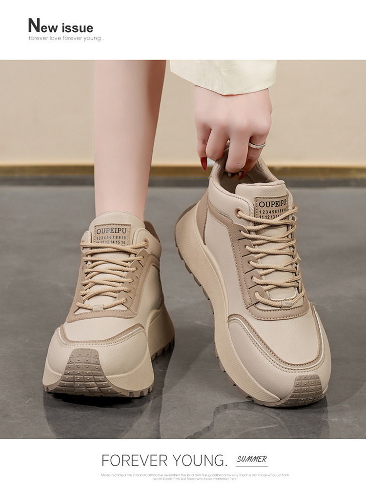 2025 봄 여성 신발 하이 탑 통기성 운동화 여자 한국식 올매치 두꺼운 밑창 증가 캐주얼 트렌디 토르 신발스토어 가기