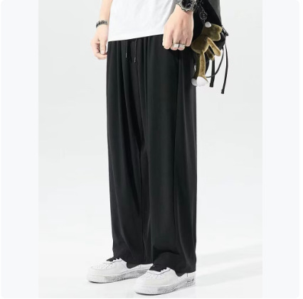 330kg 대외 무역 도매 슈퍼 플러스 사이즈 단색 높은 탄성 캐주얼 바지 느슨한 여름 얇은 얼음 실크 스포츠 바지 남성