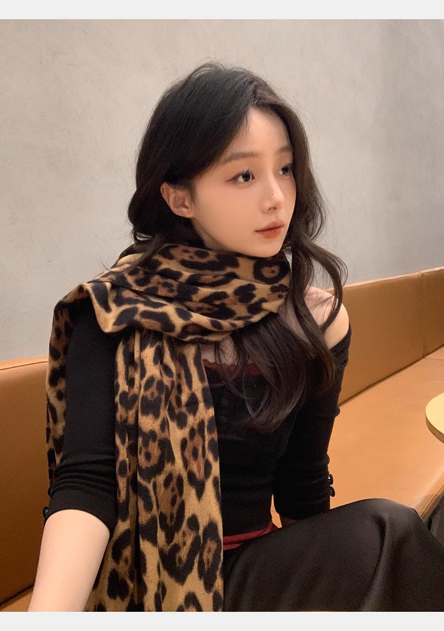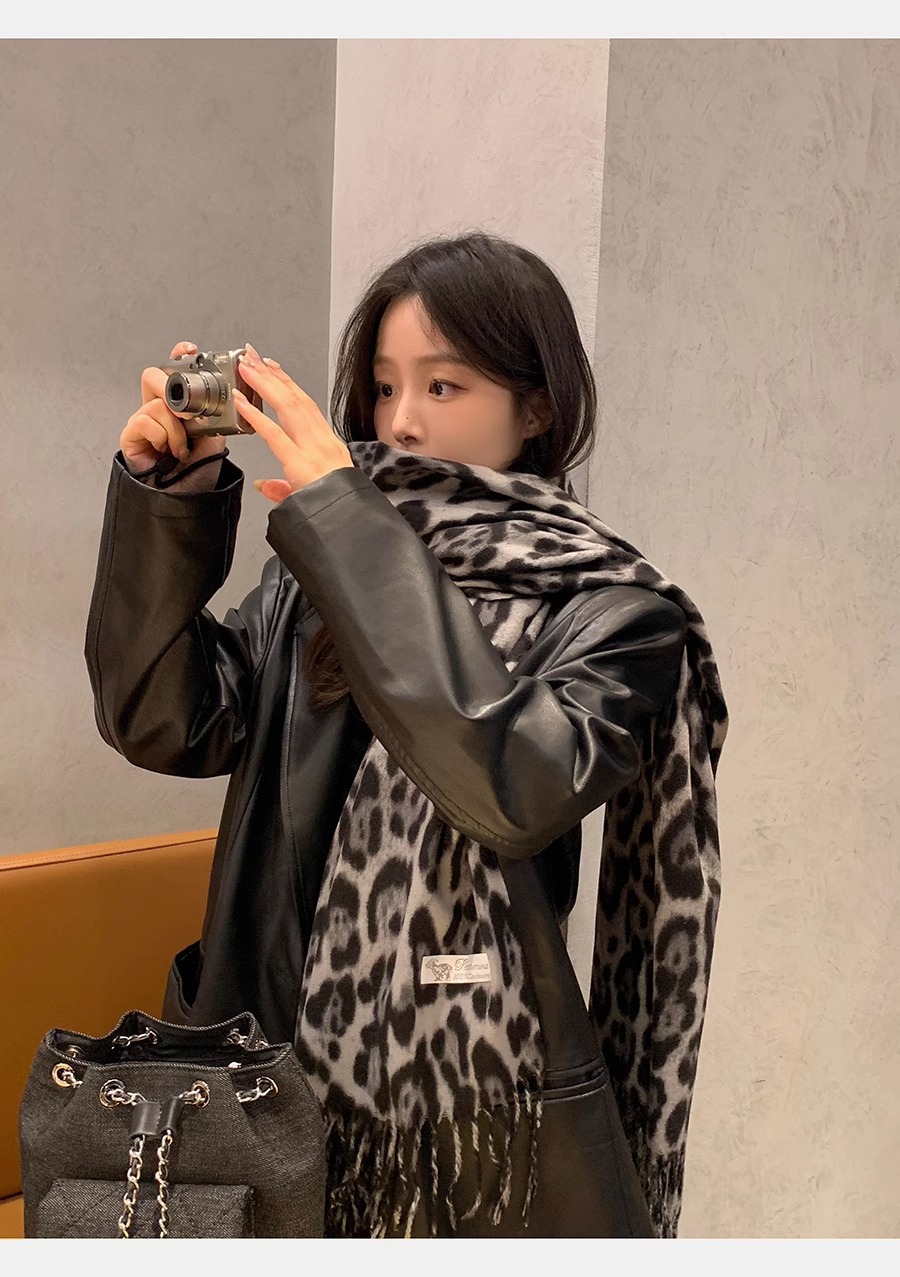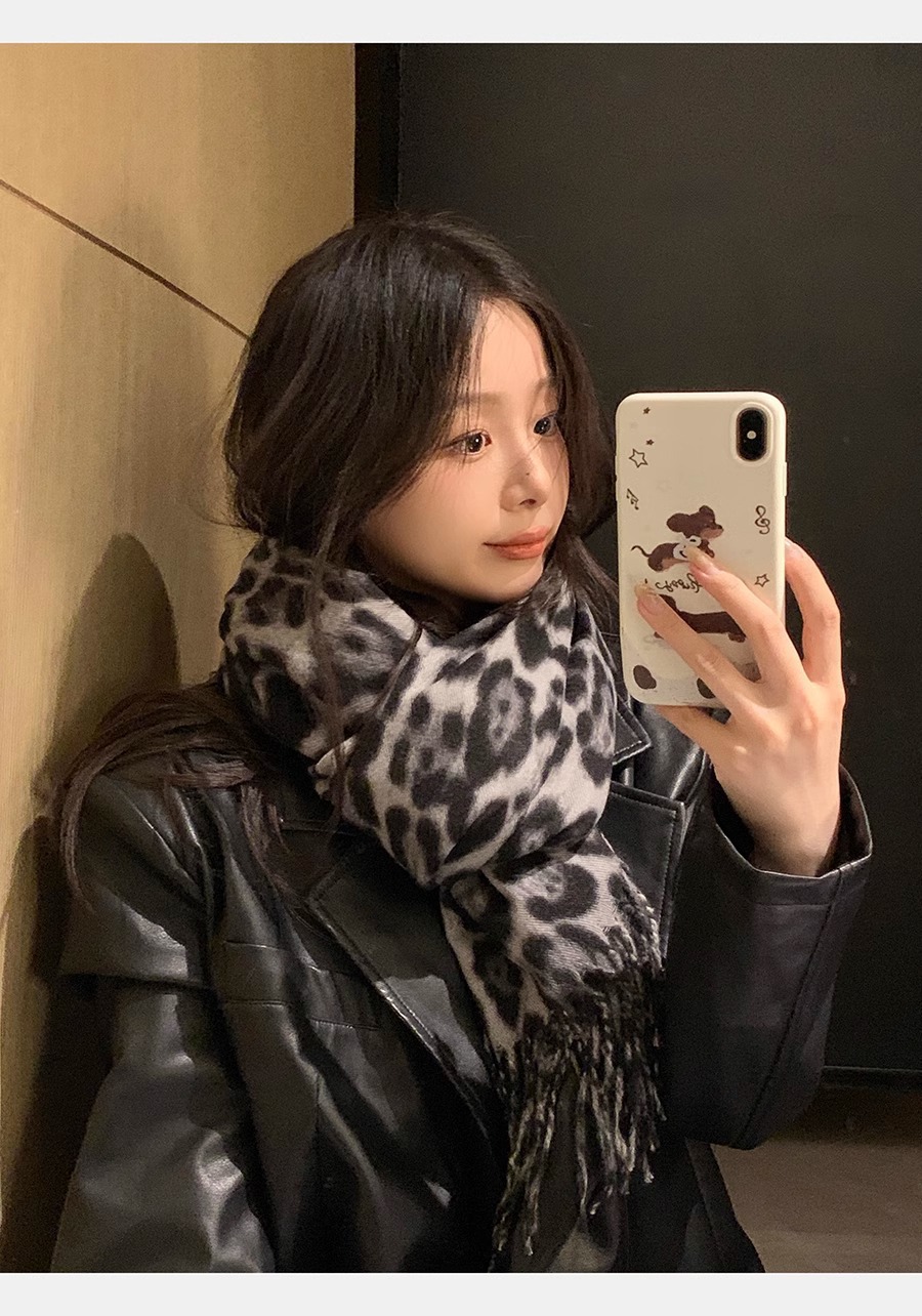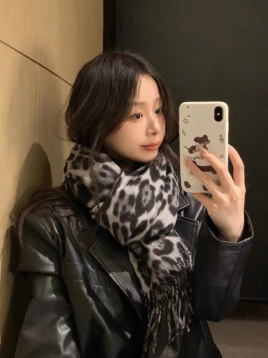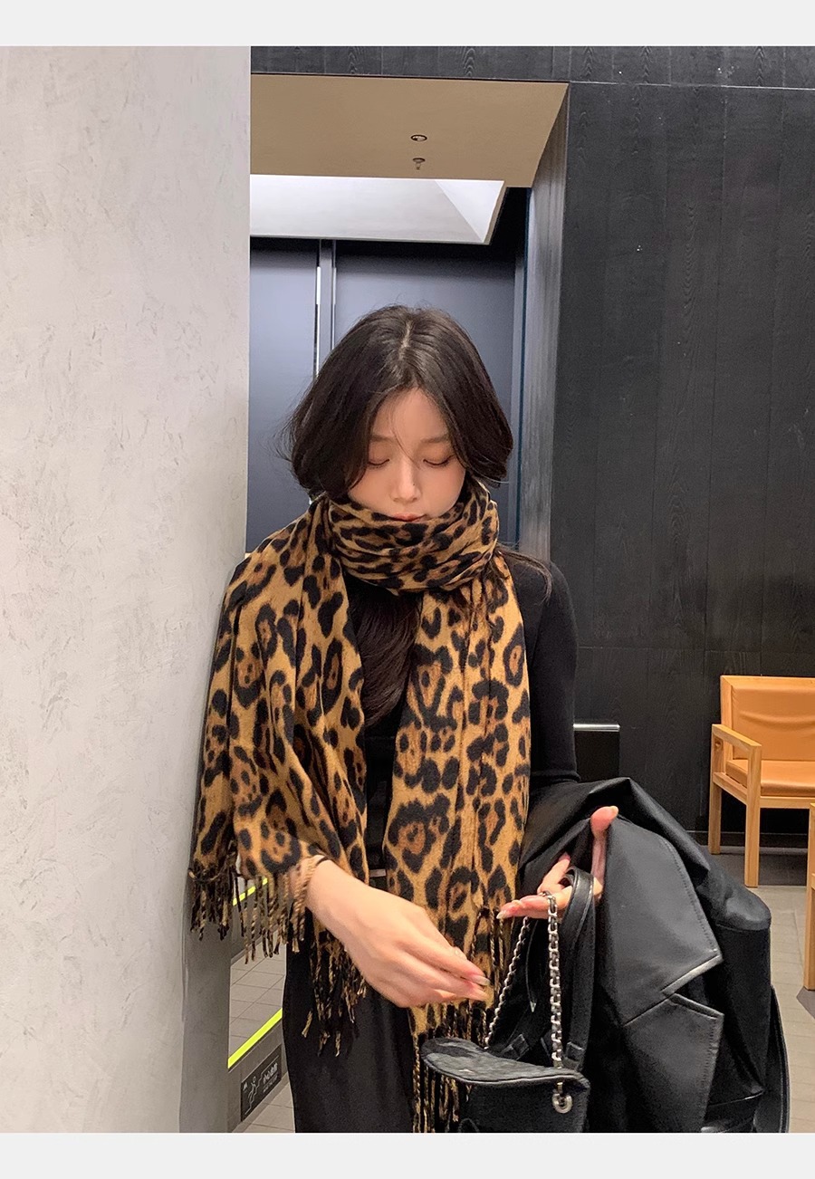 ZARA 빈티지 레오파드 무늬 모방 캐시미어 술 스카프 여성 겨울 2025 새로운 스타일 스파이스 걸스 목도리 두꺼운 따뜻한 목스토어 가기