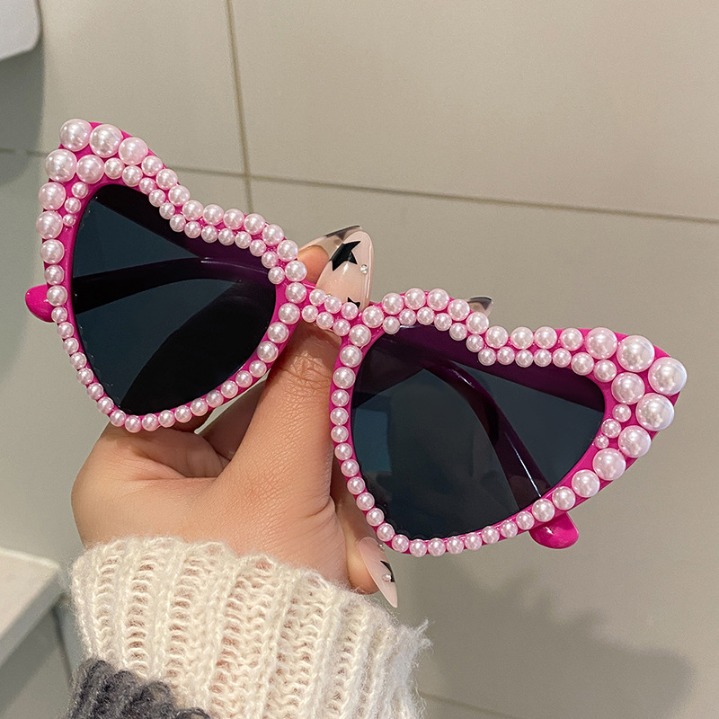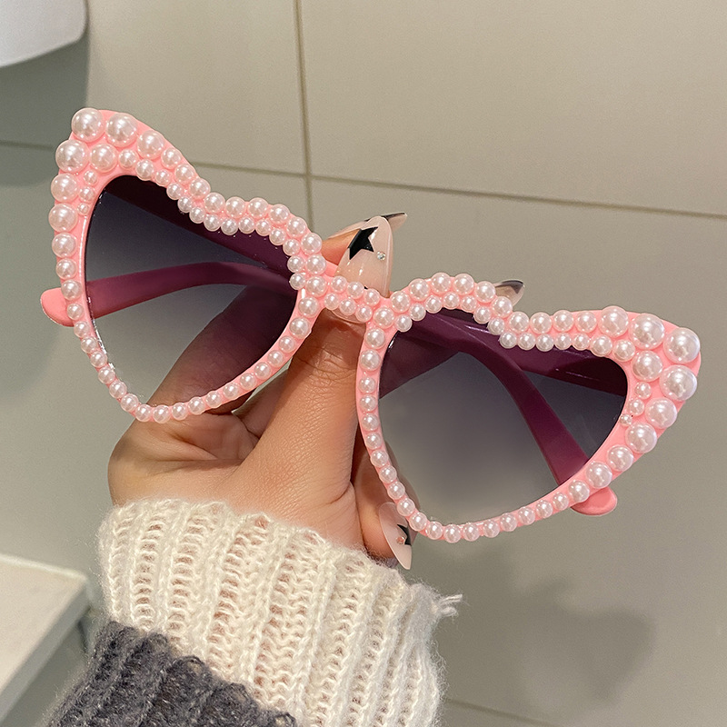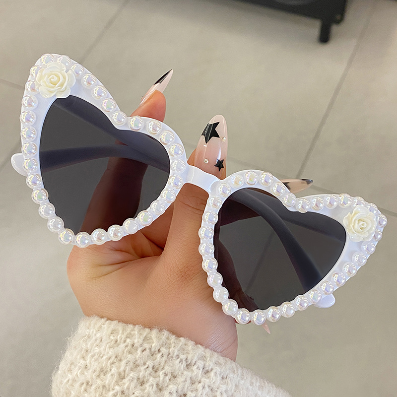 2025 새로운 하트 모양의 파티 안경 유럽과 미국의 패션 러브 선글라스 여성 하이 엔드 진주 선글라스 도매
