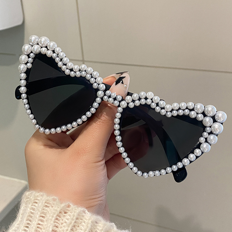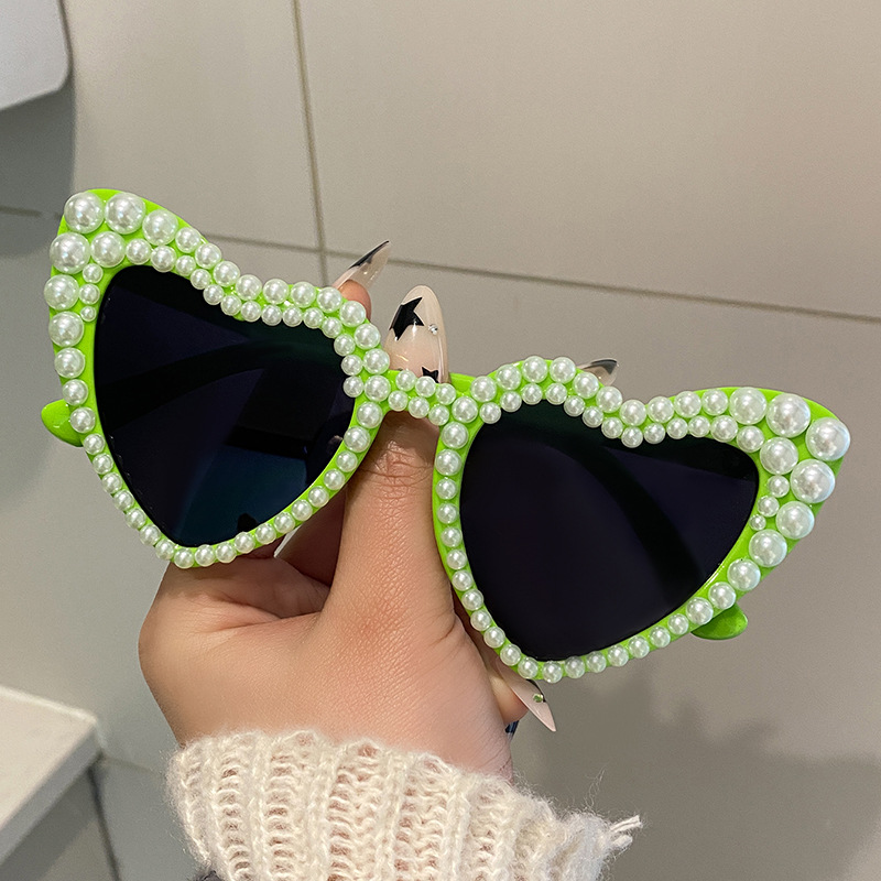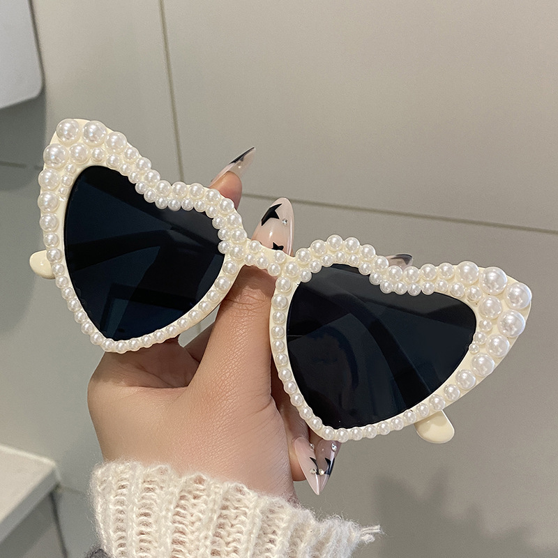 2025 새로운 하트 모양의 파티 안경 유럽과 미국의 패션 러브 선글라스 여성 하이 엔드 진주 선글라스 도매스토어 가기