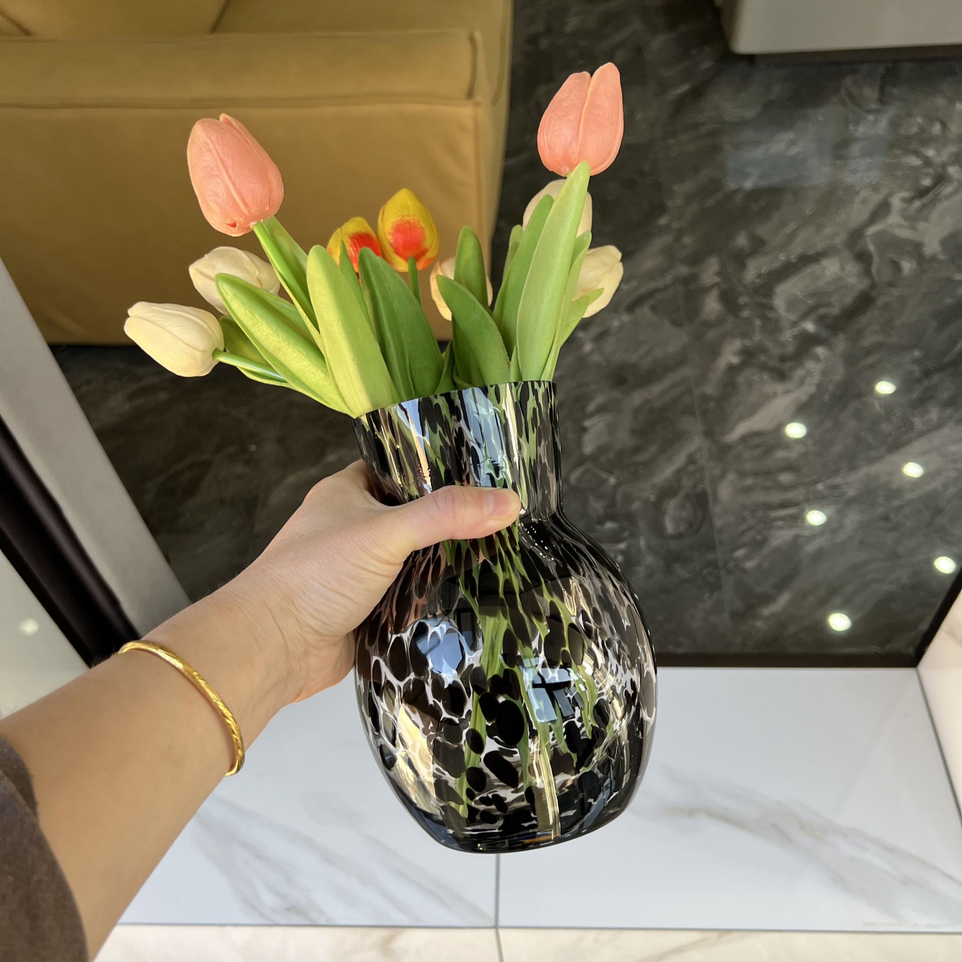 유리 꽃병 꽃꽂이 장식품 튤립 조화 고급 테이블 바 카운터 꽃병 꽃꽂이 예술 모던 심플
