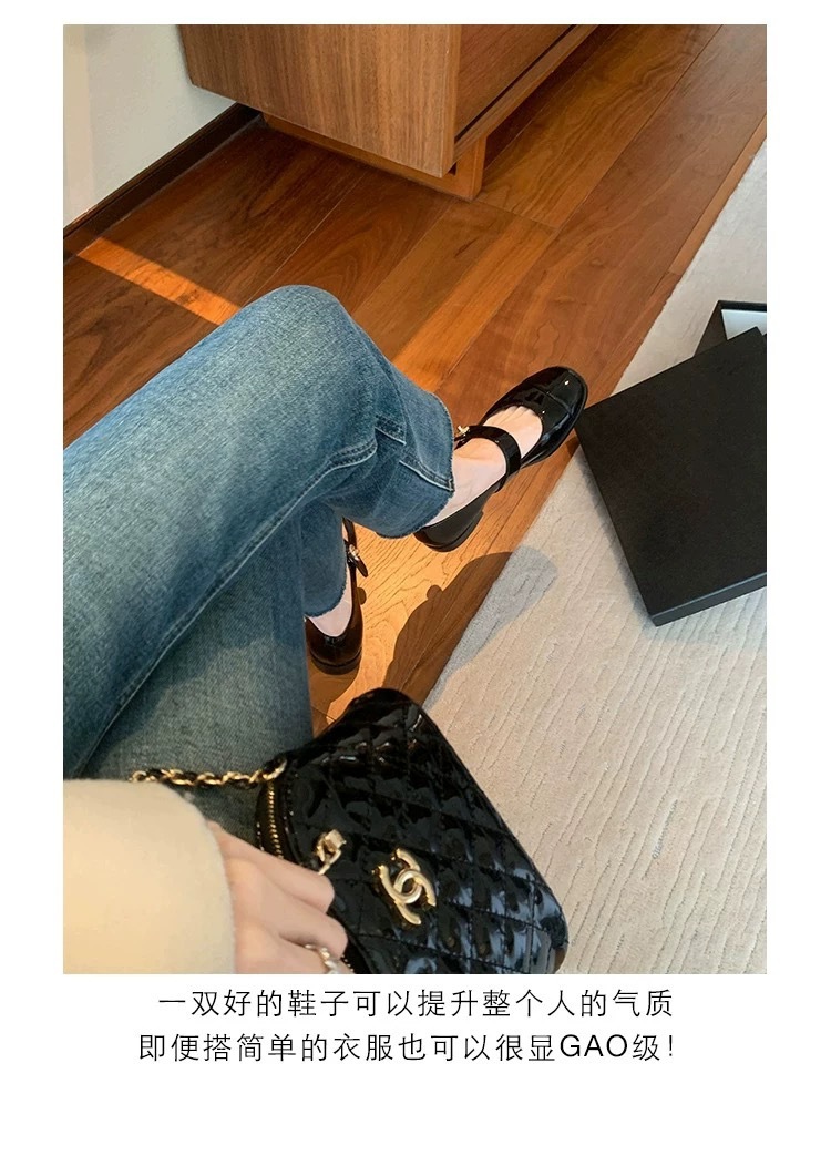샤오 샹 펑 메리 제인 신발 여성의 2024 봄 새로운 diy 버클 플랫 신발 두꺼운 뒤꿈치 Lefu 신발