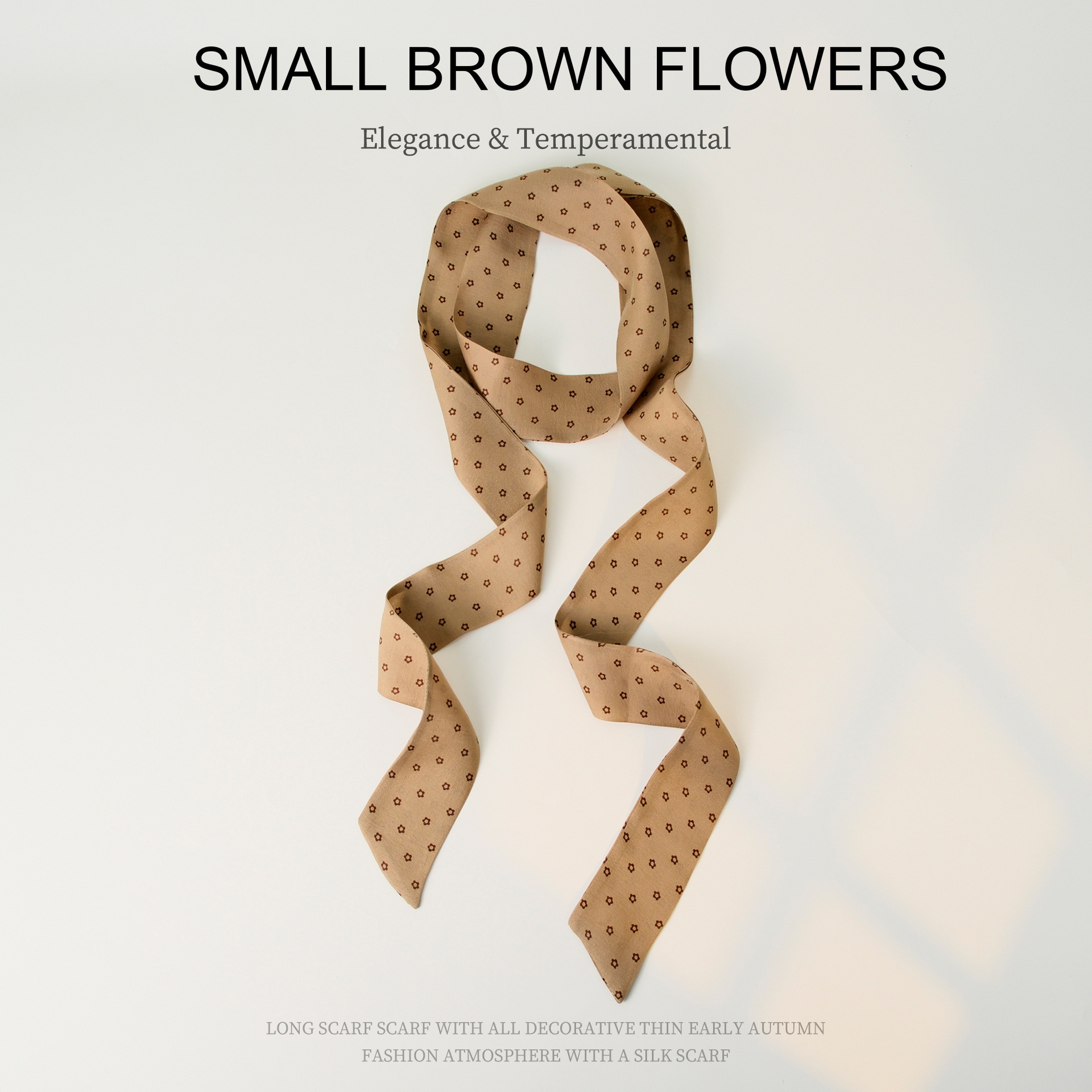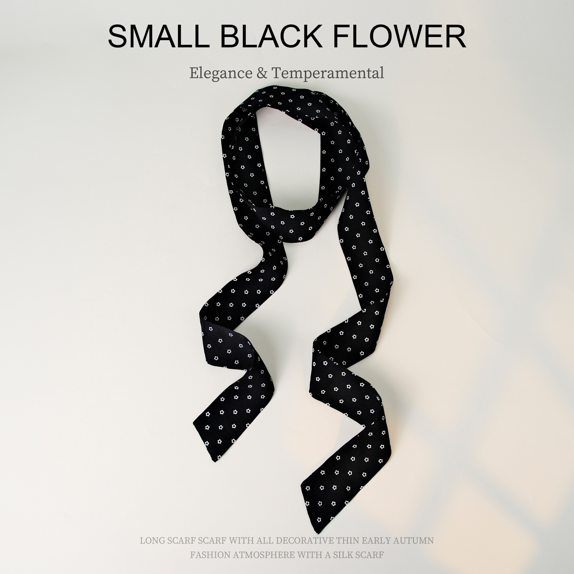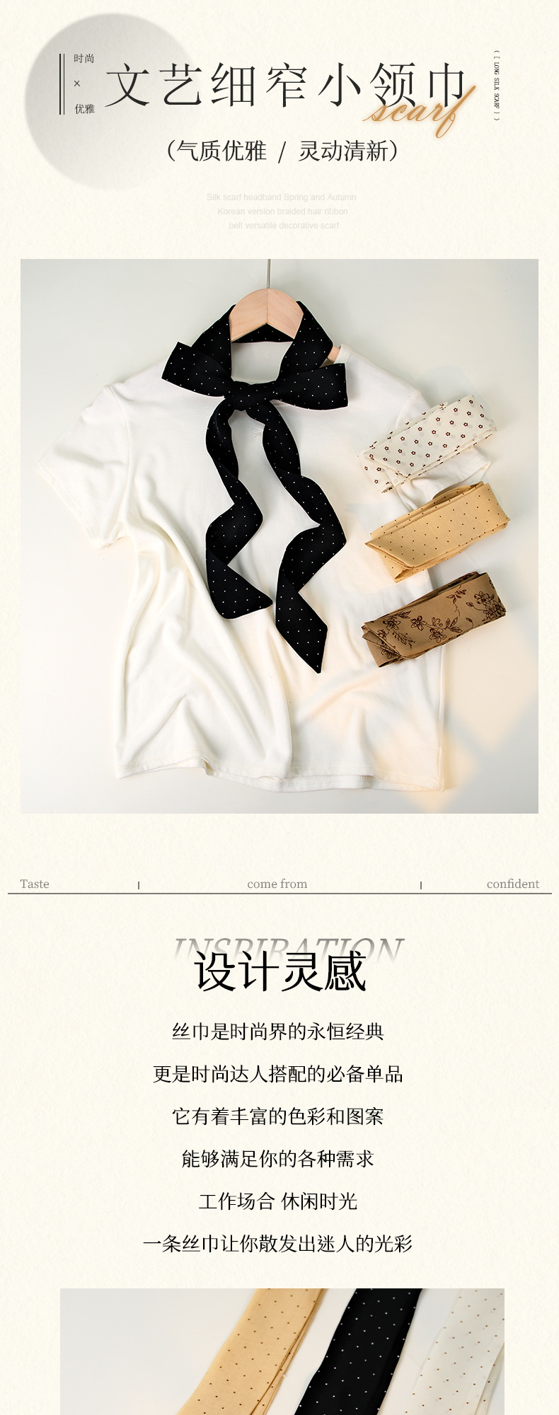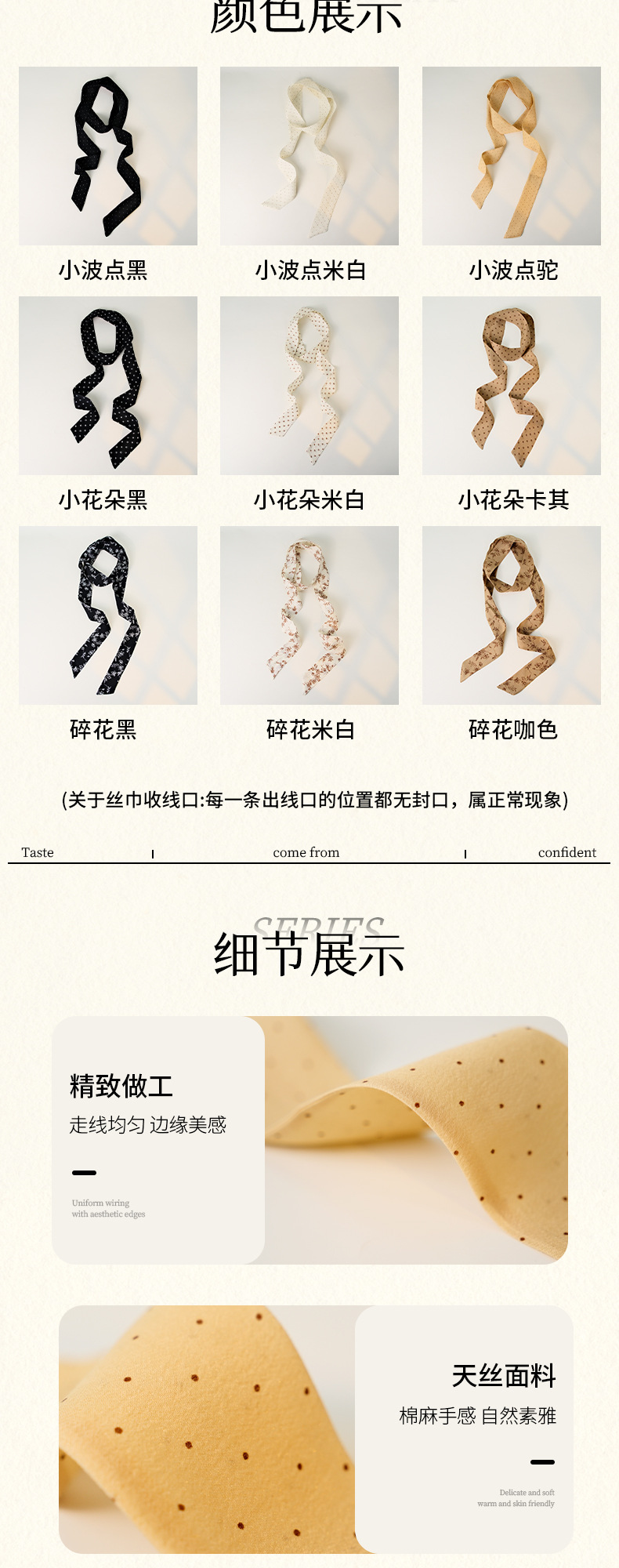 문학 스타일 200cm 실크 스카프 여성의 작은 웨이브 포인트 날씬한 좁은 고급 면화 및 리넨 질감 스카프 꽃 착용 벨트