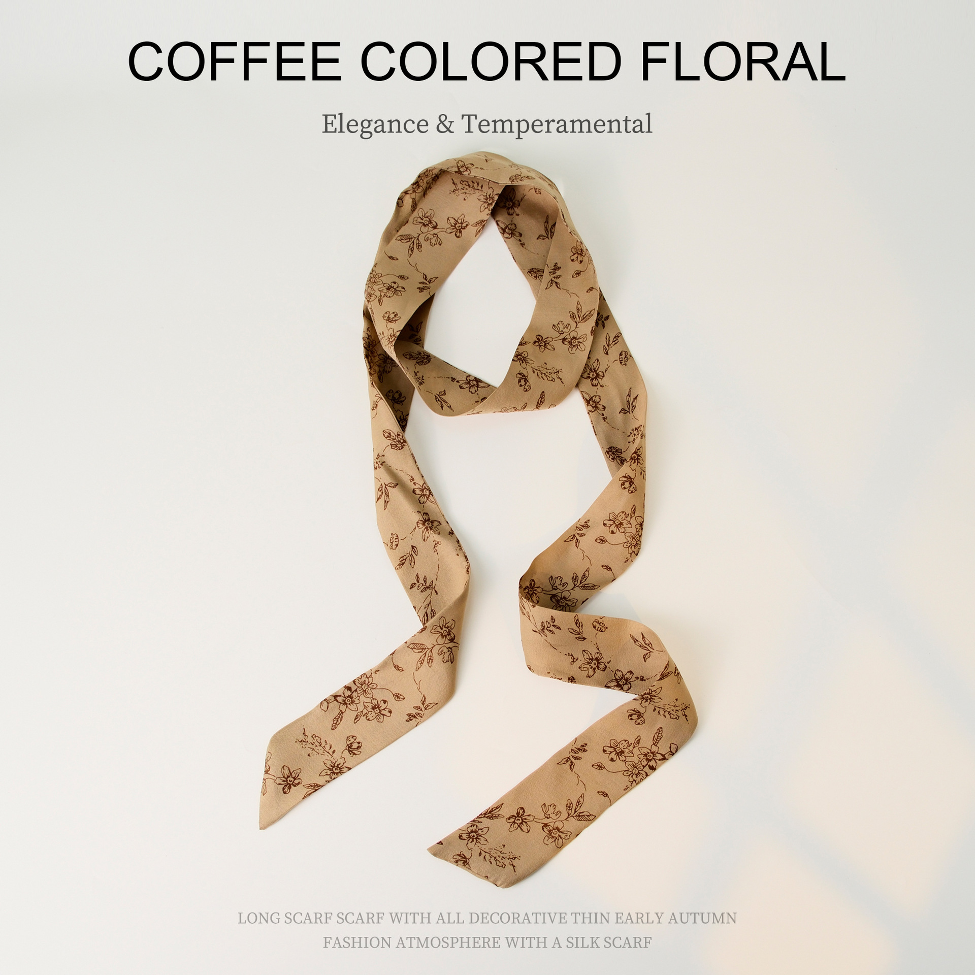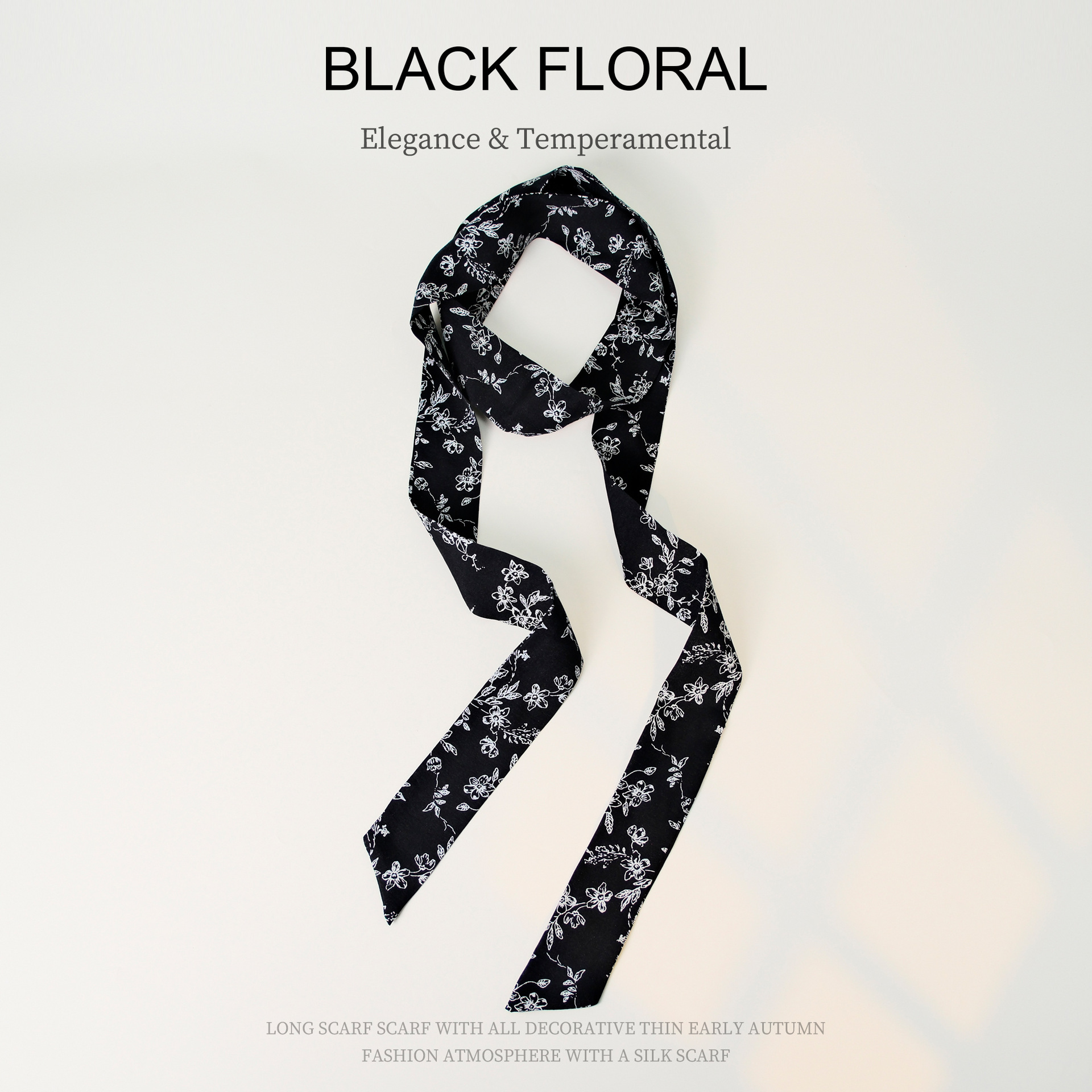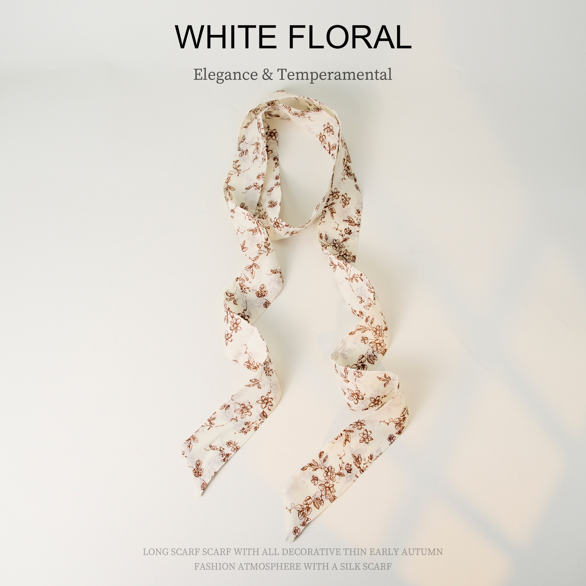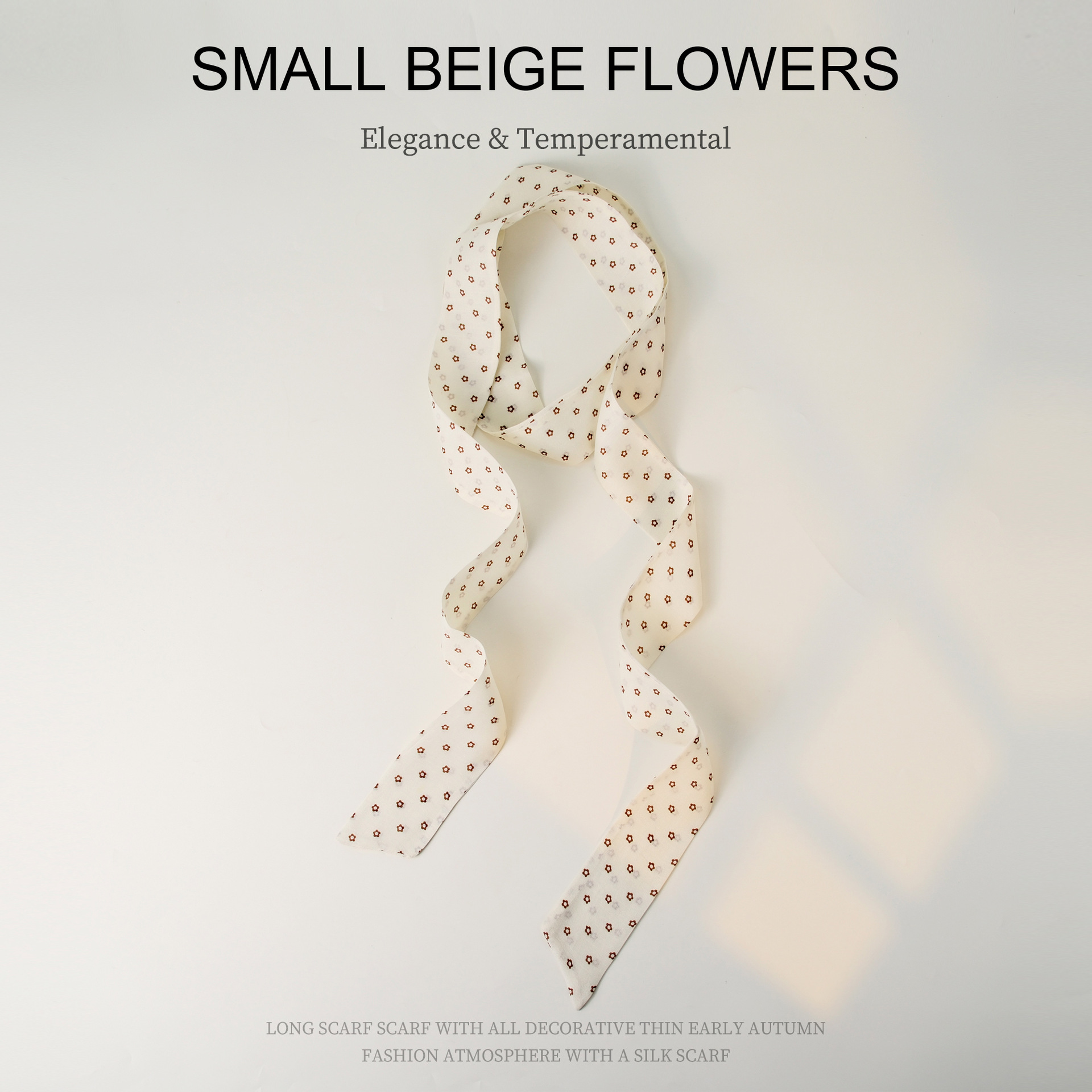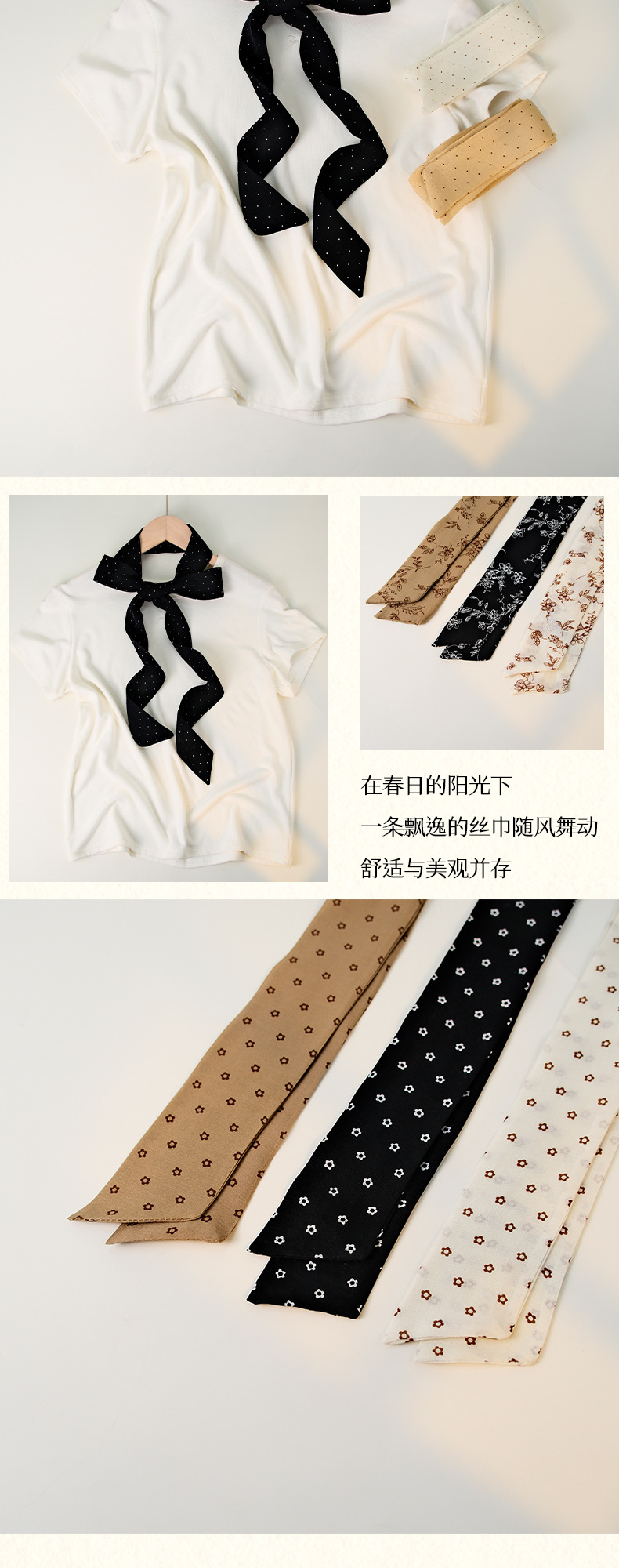 문학 스타일 200cm 실크 스카프 여성의 작은 웨이브 포인트 날씬한 좁은 고급 면화 및 리넨 질감 스카프 꽃 착용 벨트
