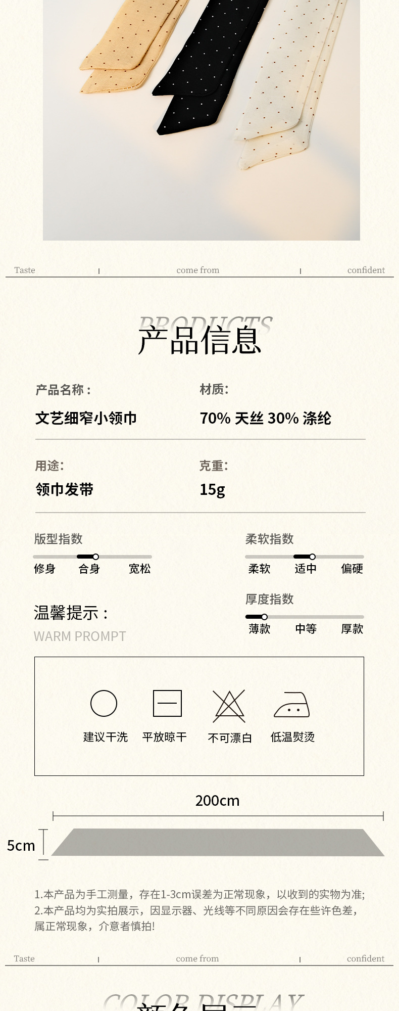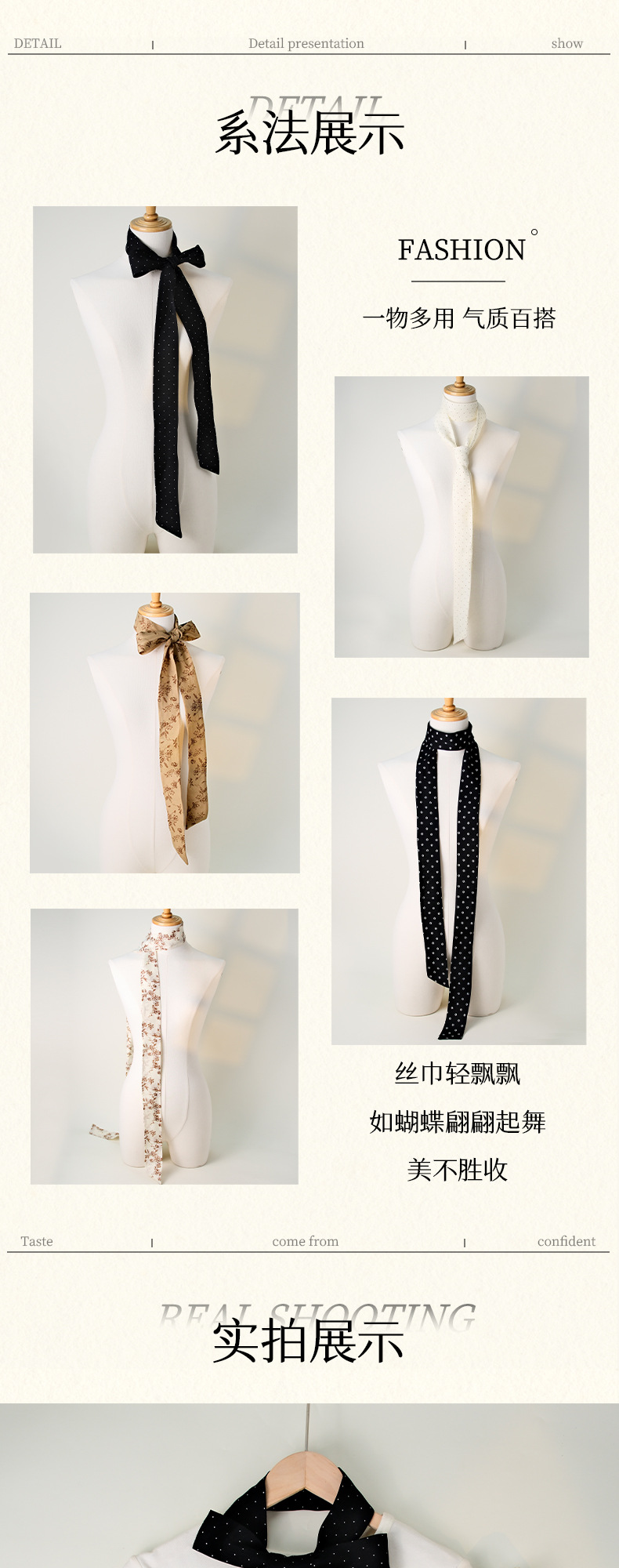 문학 스타일 200cm 실크 스카프 여성의 작은 웨이브 포인트 날씬한 좁은 고급 면화 및 리넨 질감 스카프 꽃 착용 벨트스토어 가기